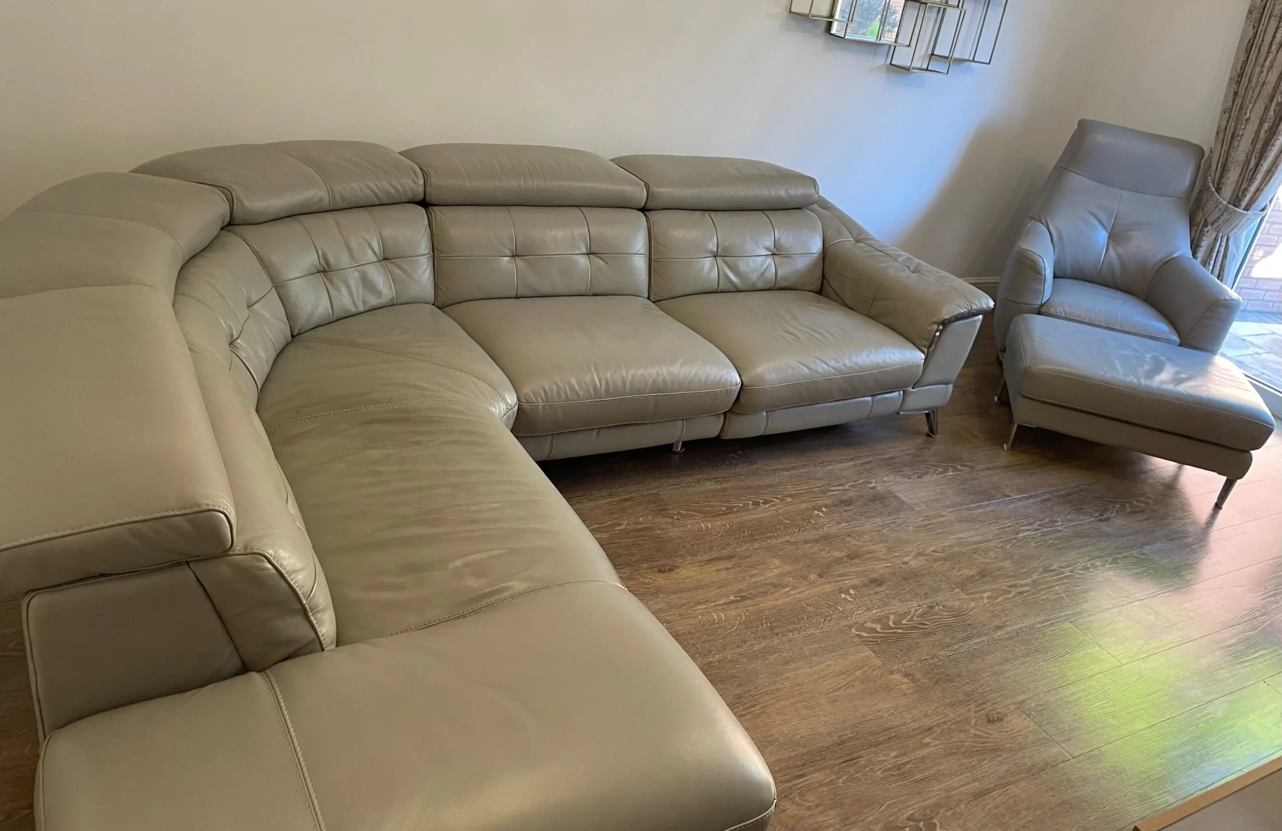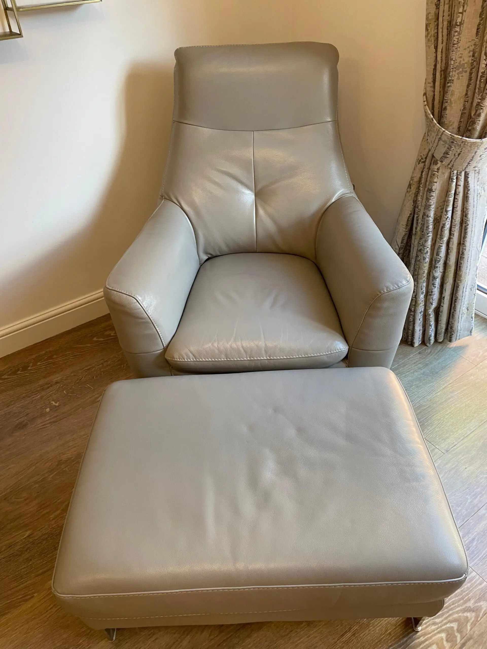 Sofology Leather Light Grey 4 Seater Sofa , Swivel Chair & Footstool