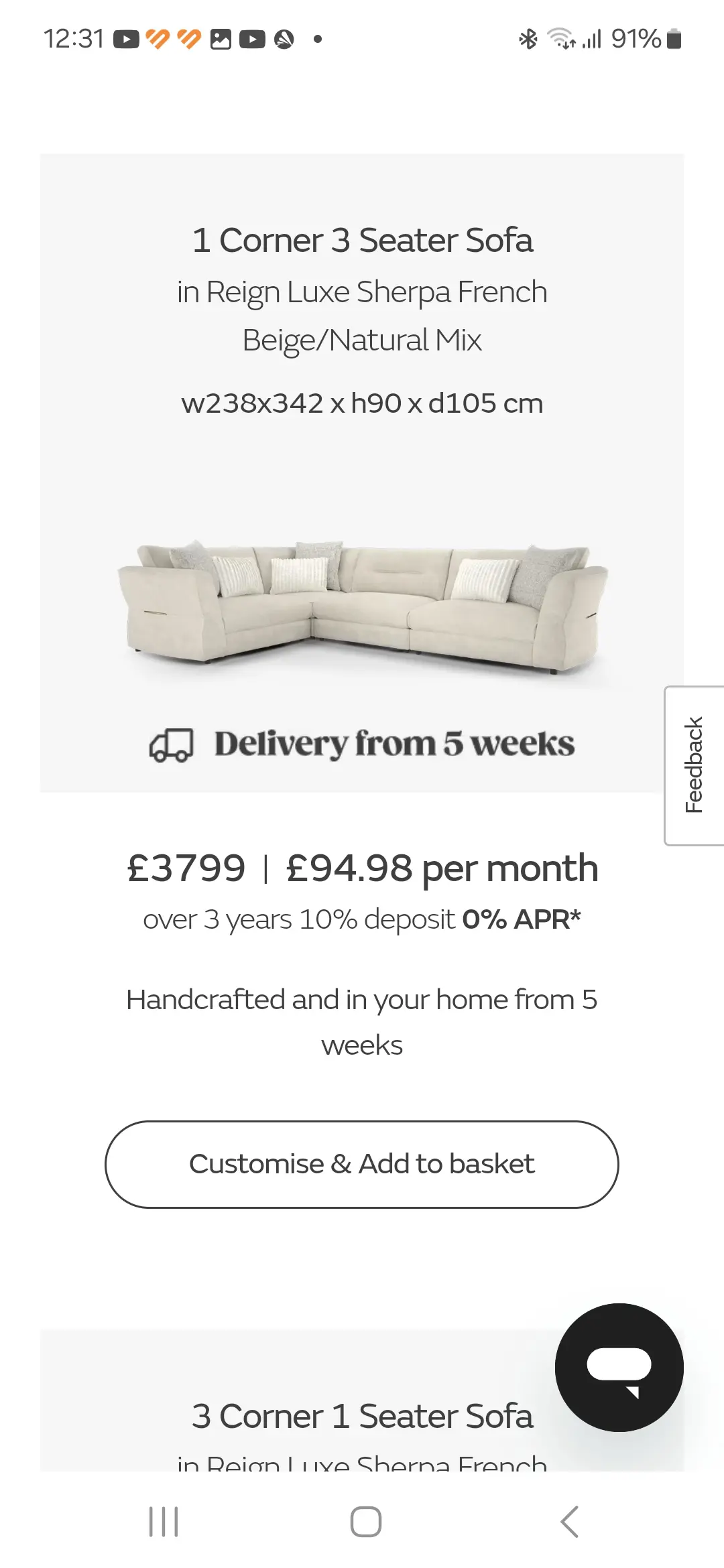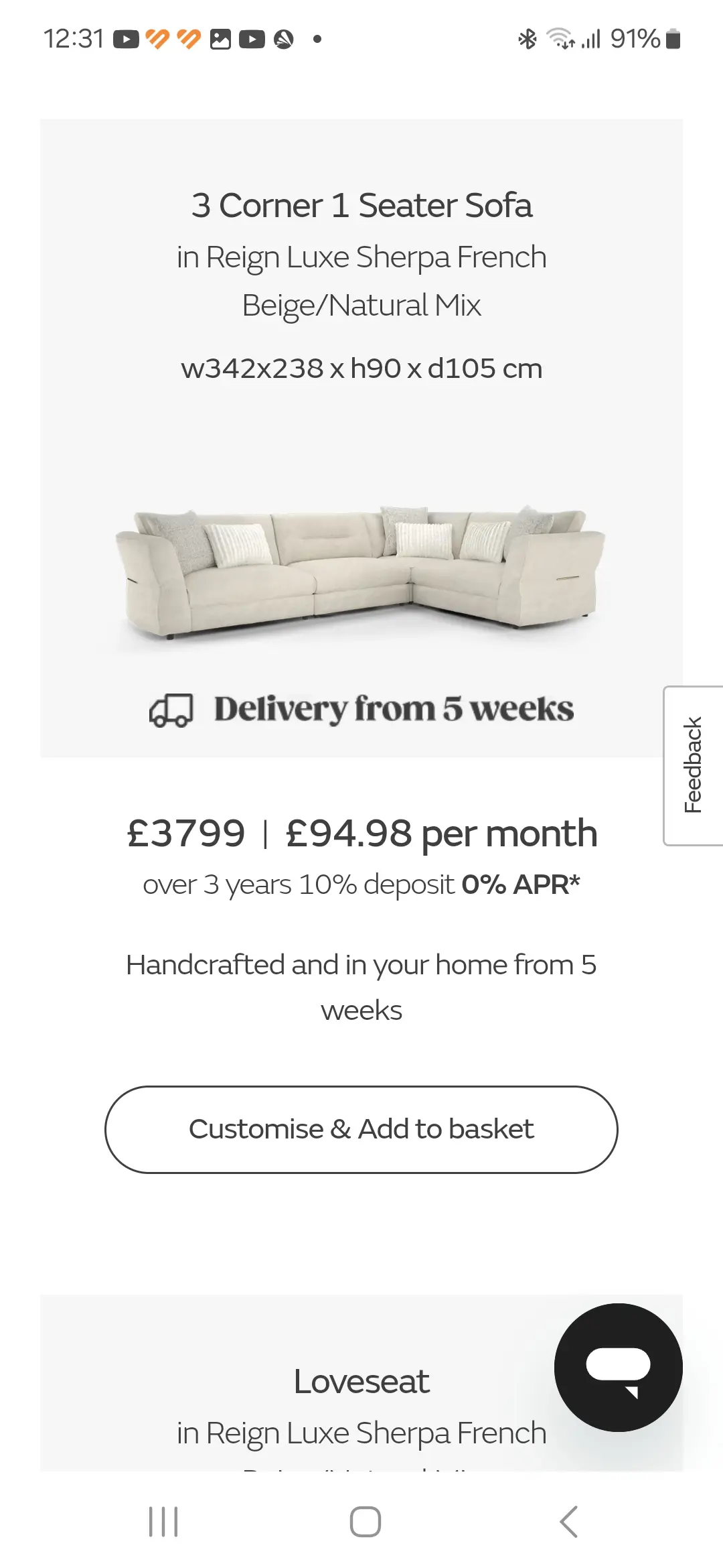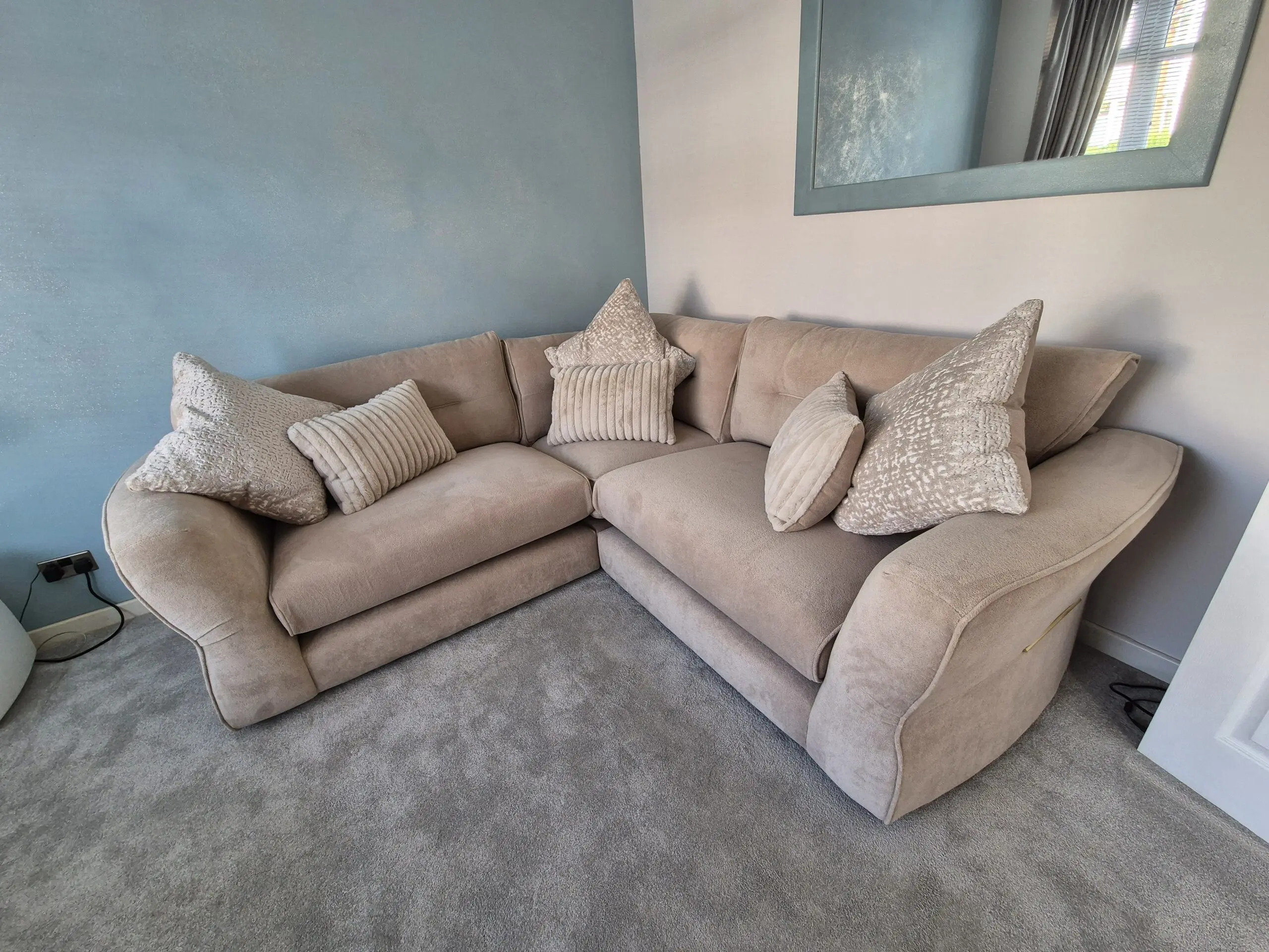 Selling this 2 week old Sofology Reign corner sofa in Luxe Sherpa French Beige/Natural fabric, which also comes with beautiful heavy matching cushions. The sofa was purchased for my new house, which, unfortunately, the sale has fallen through just before completion. As it was made to order, I had to accept delivery, but it does not fit in my current home. I have only unpacked the corner piece and the 2 ends. The additional sections are still packaged up.