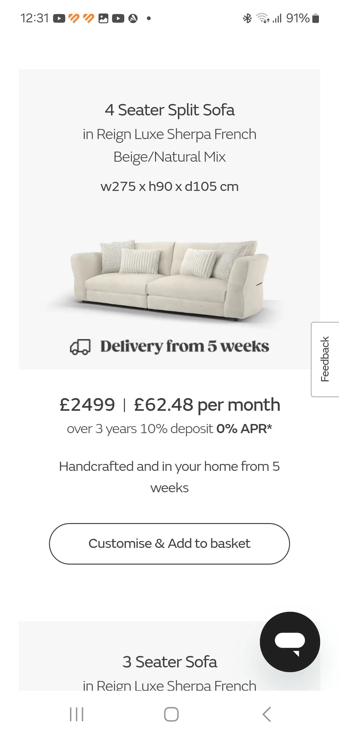 The sofa is absolutely gorgeous, but I cannot make it fit in my lounge. It’s either too short or too long.