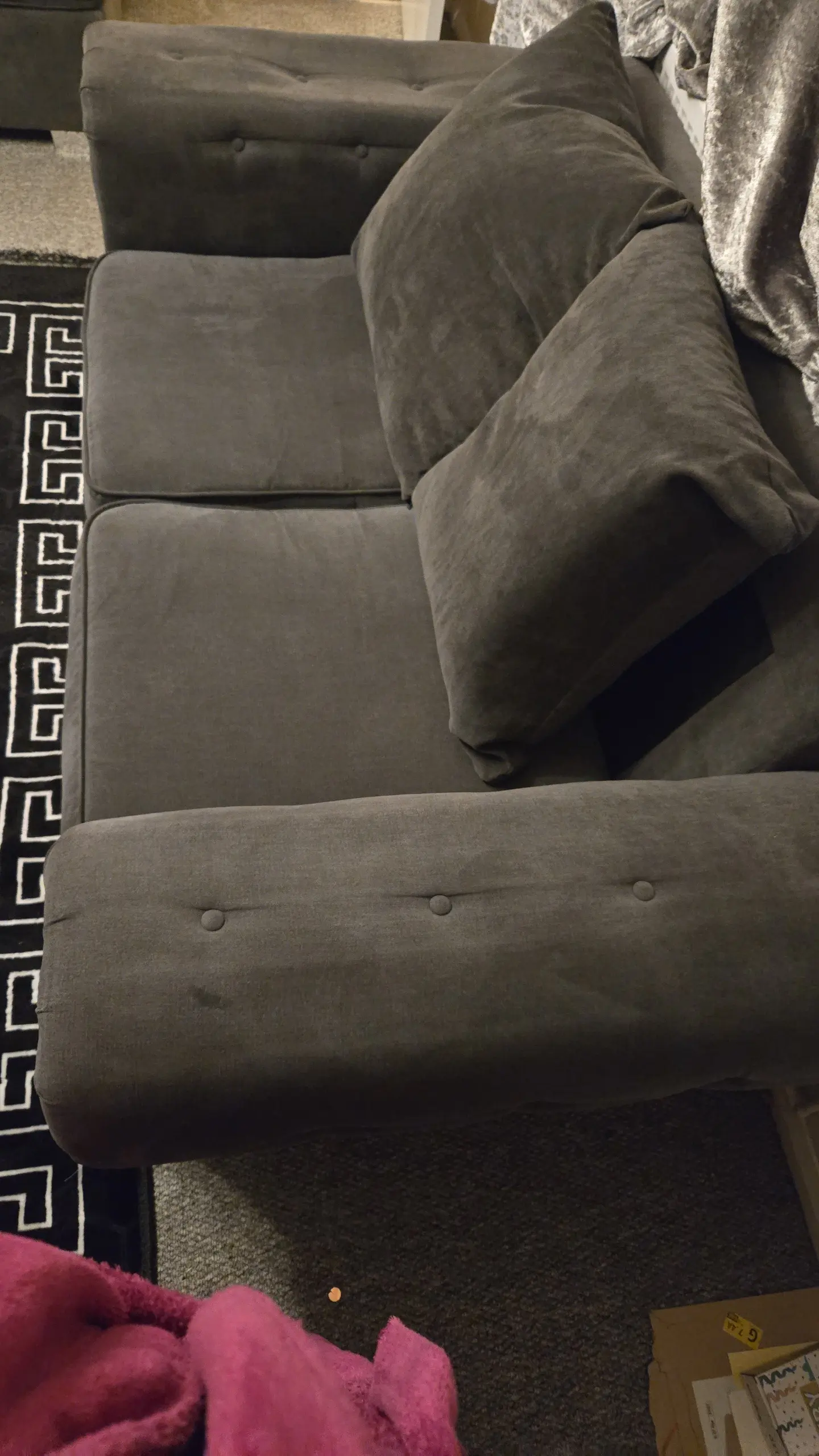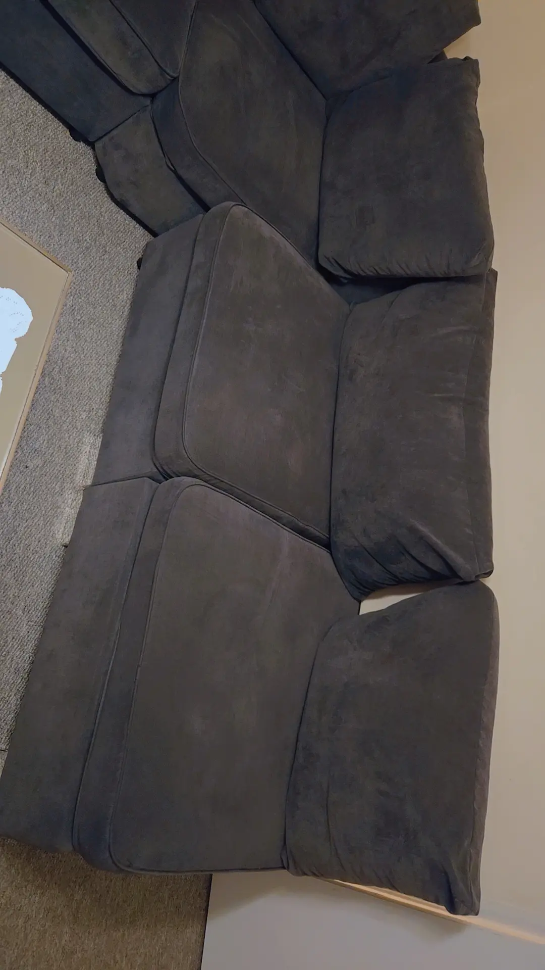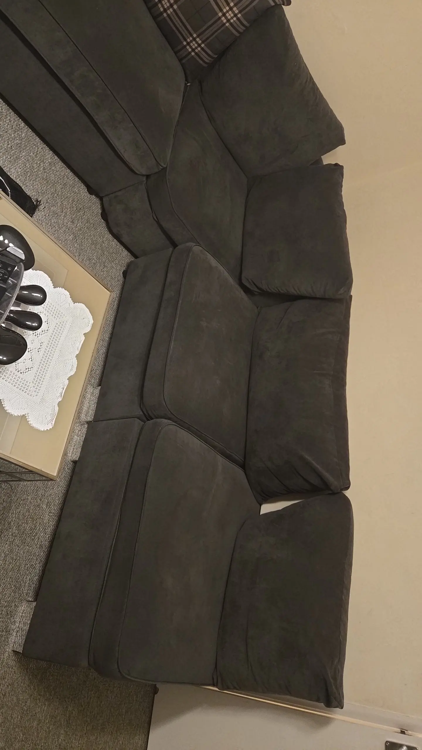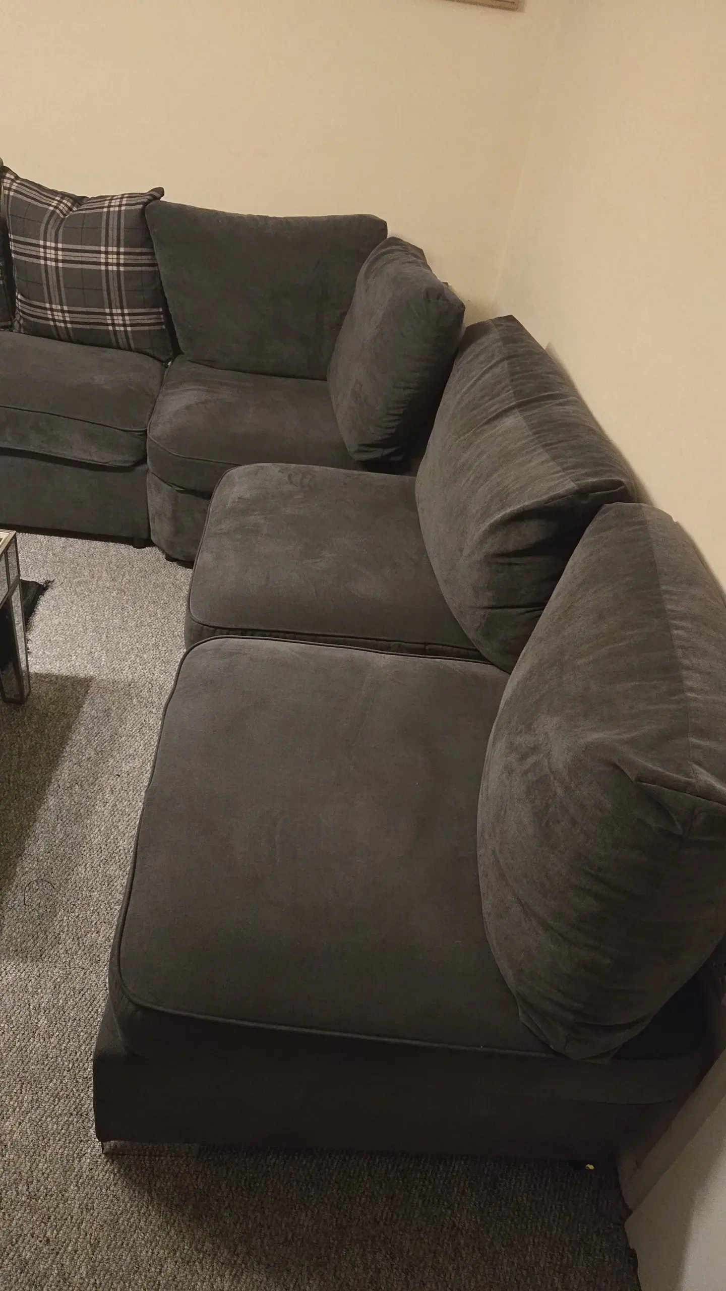 Stylish Grey Sectional (Corner and a 2in 1seater sofa), Stylish plaid accent pillows, Modern, versatile grey fabric.