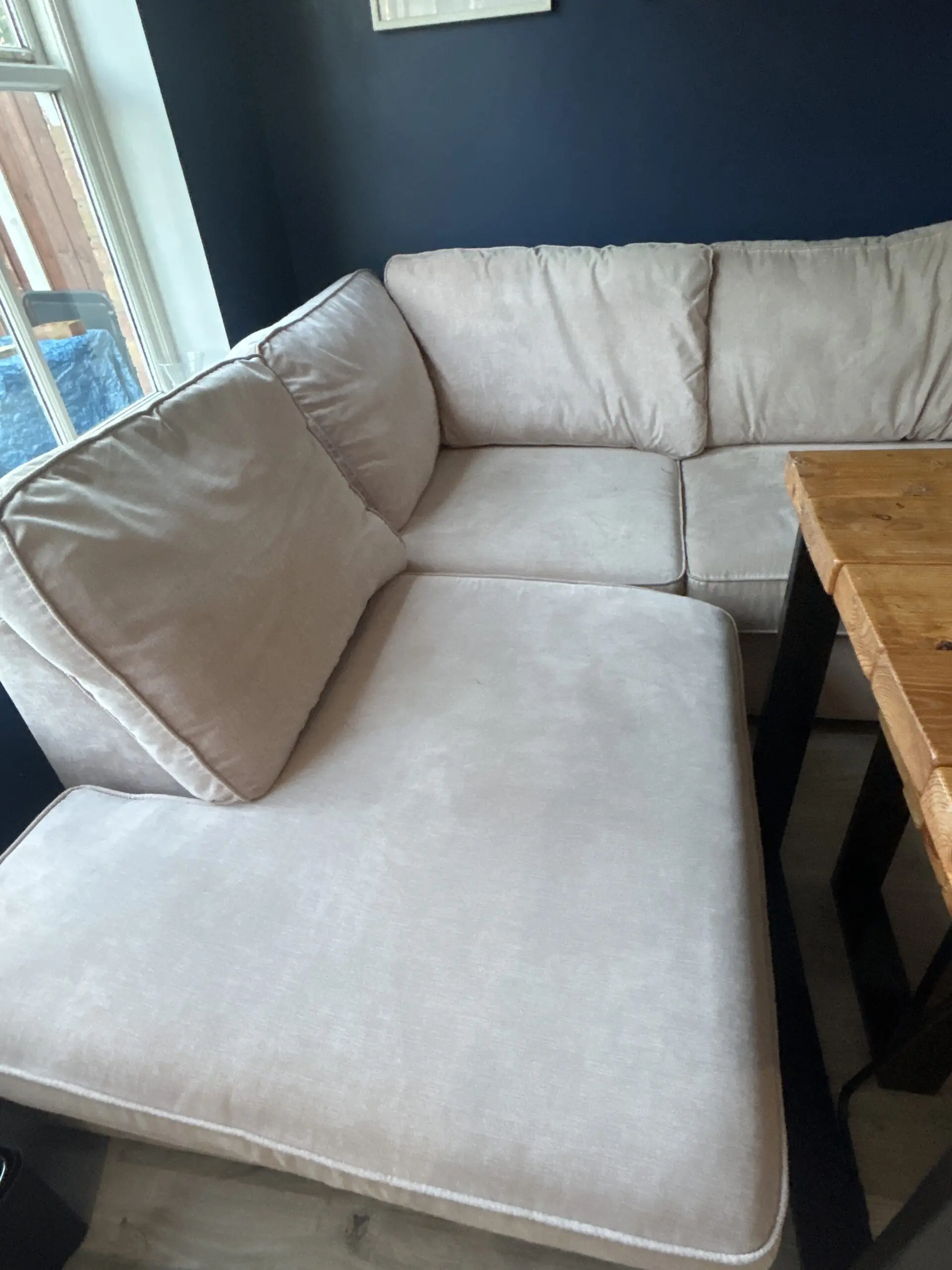 Very pale pink/mink corner sofa.