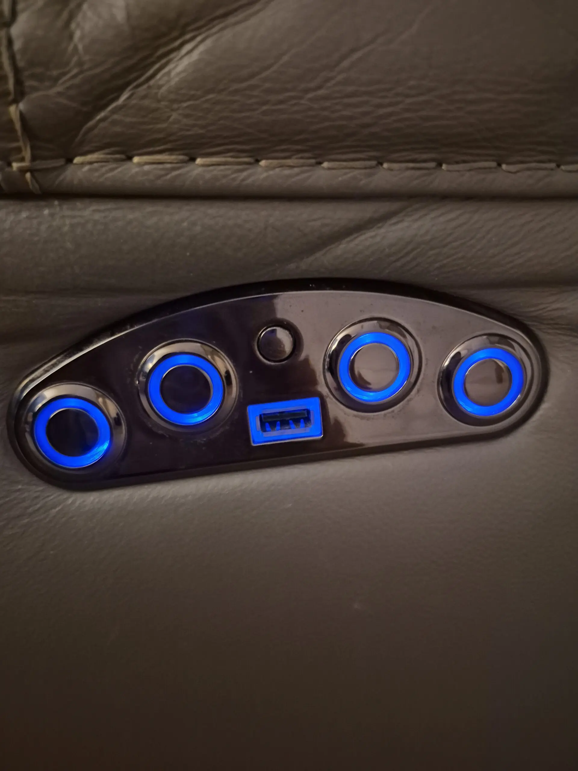 It’s incredibly roomy, with deep cushioning and generously padded power adjustable headrests. Sprung seats, arm cushions, lumbar support and foam with fibre top seat cushions pamper you, while the roomy chaise end allows you to stretch right out. If you prefer putting your feet up it’s possible at the touch of a button and, while you recline at your leisure, you can recharge your devices with the handy USB ports.