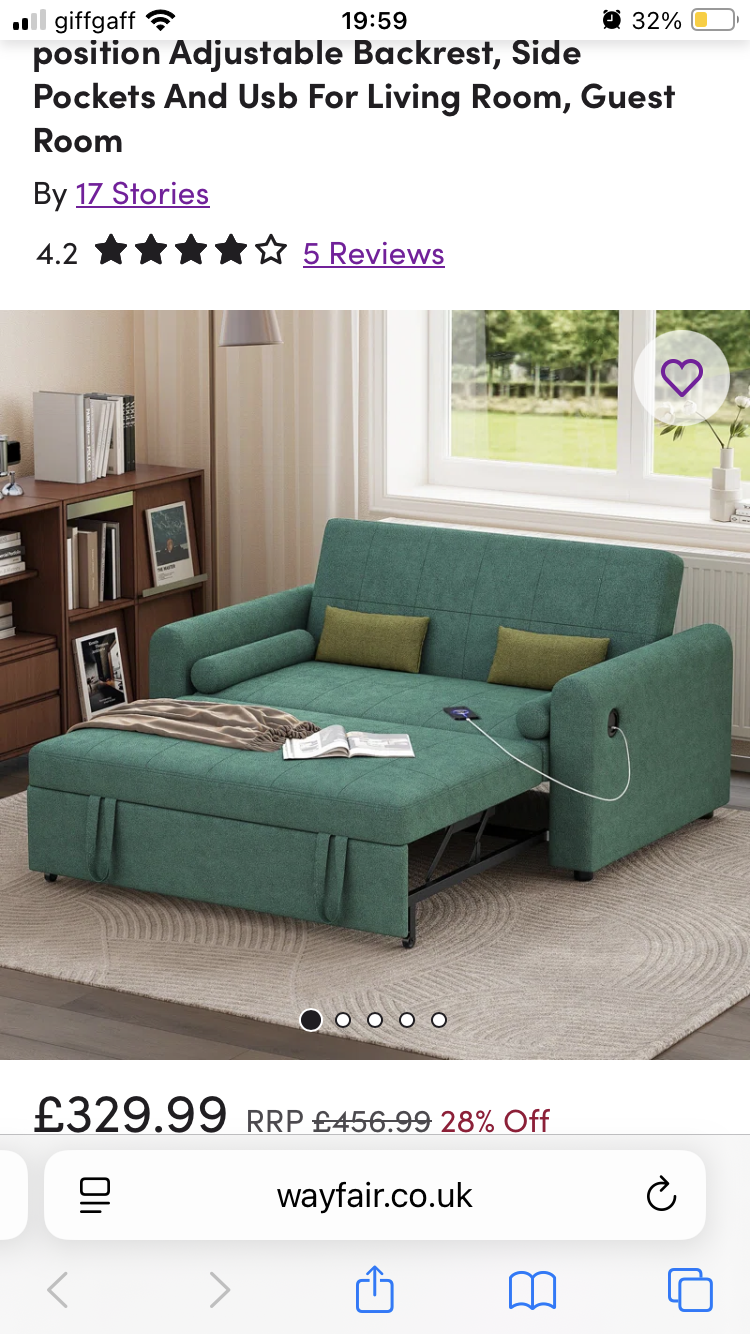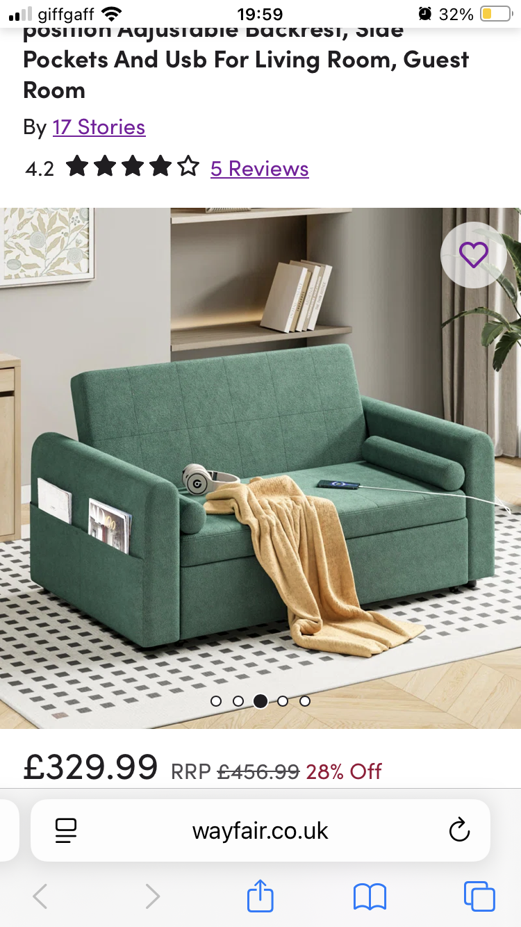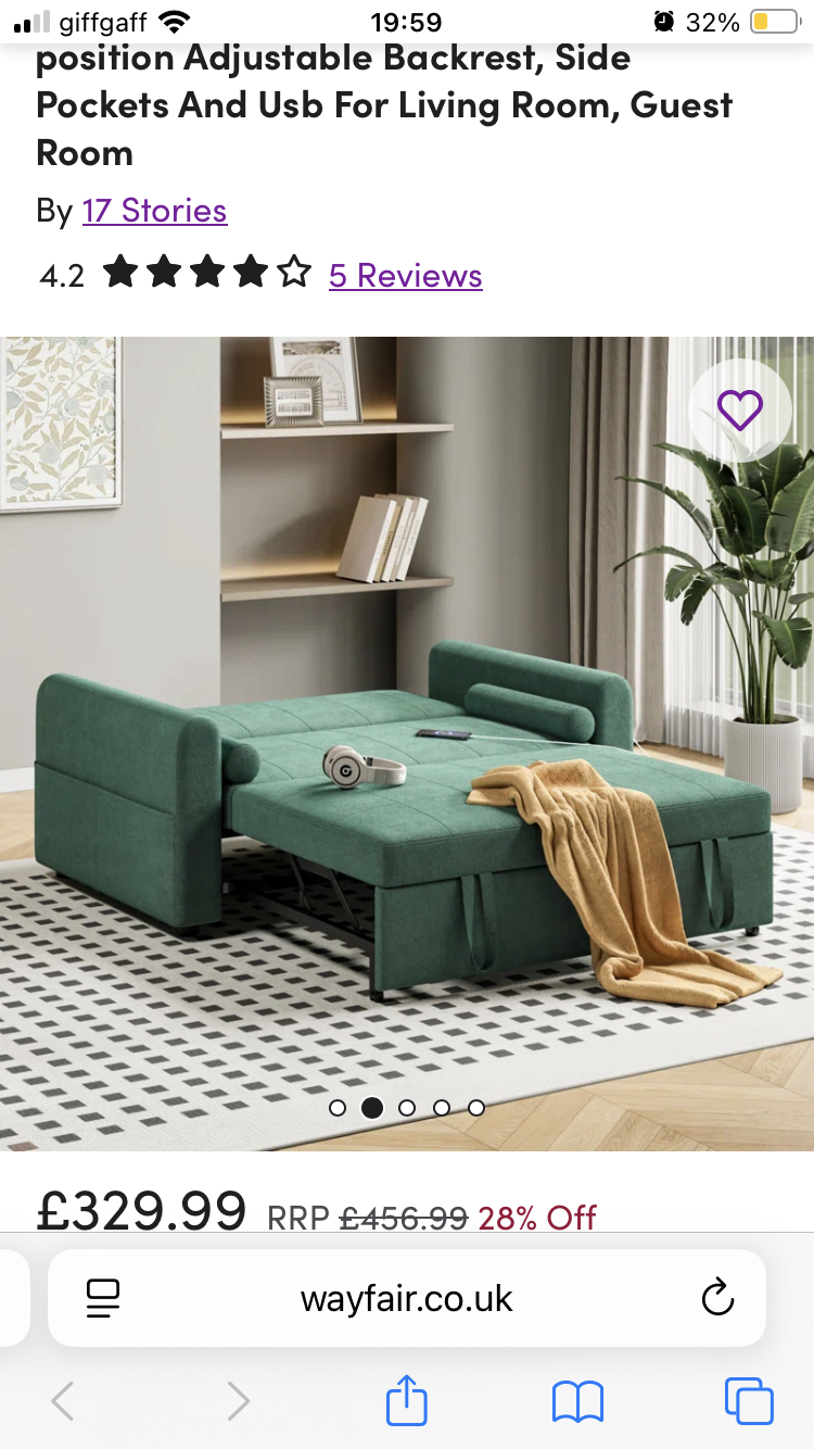 An unopened 2 seater sofa bed from Wayfair. This was sent as a replacement item but I have decided to keep the original.