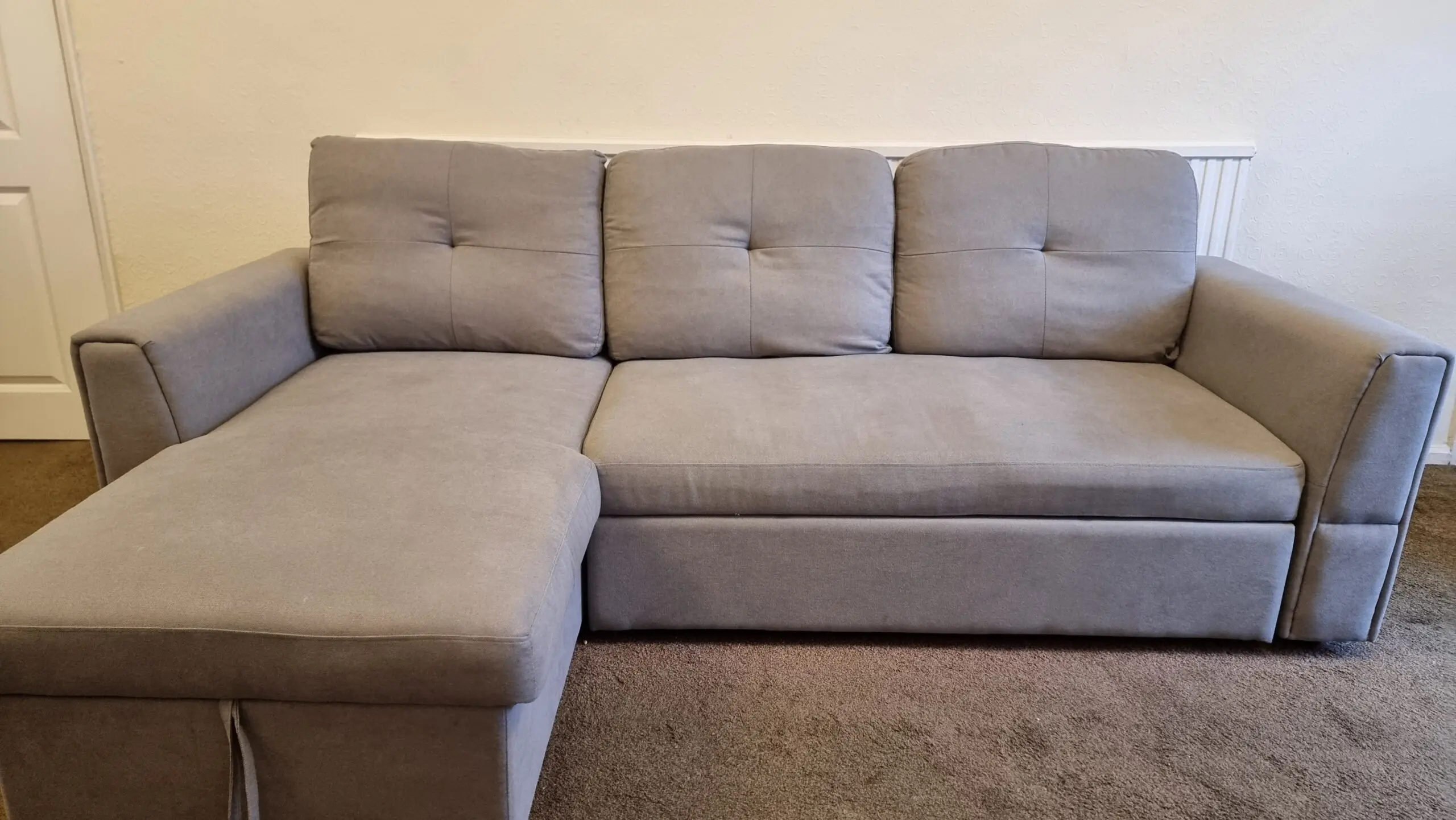 It easily converts into a bed, making it ideal for living rooms, spare rooms, or flats. A water-resistant protective cover is also included and can be seen in the photos.