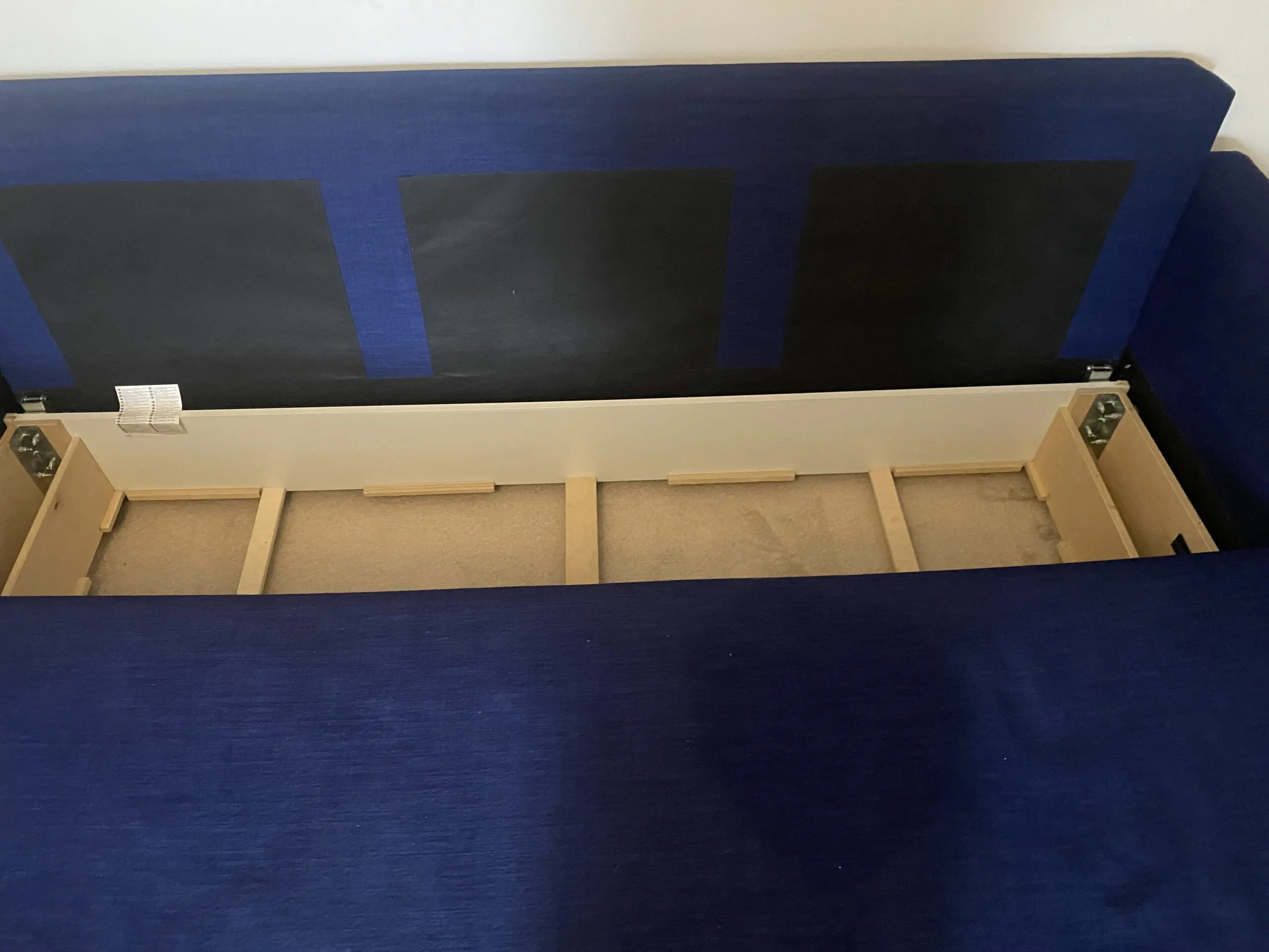 Storage space under base seat has space for boards if not wanting bedding to be on carpet floor.