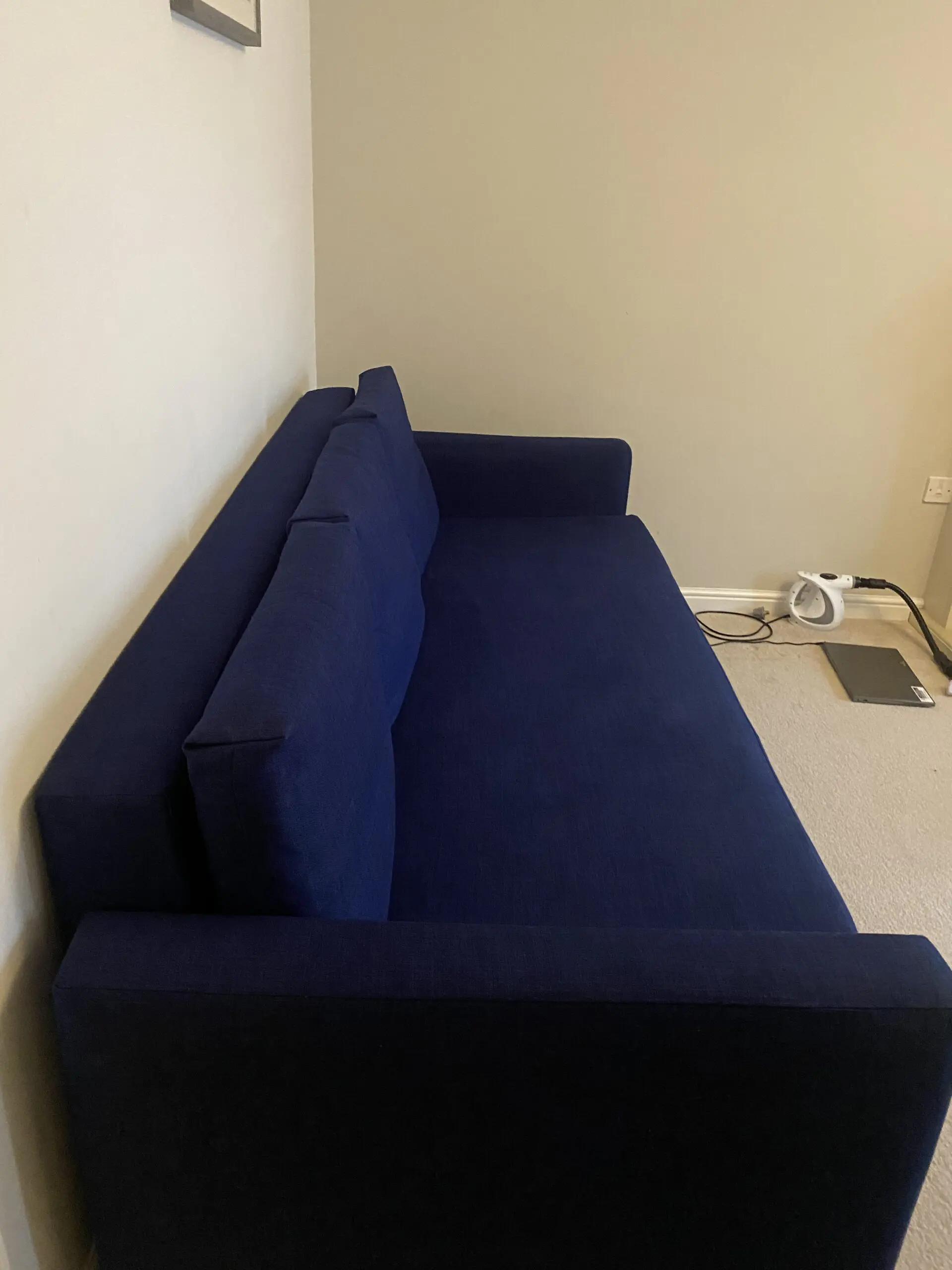 Good condition from pet free smoke free home sofa has been fully steam cleaned. 3 removable back Cushions have covers removable for washing.