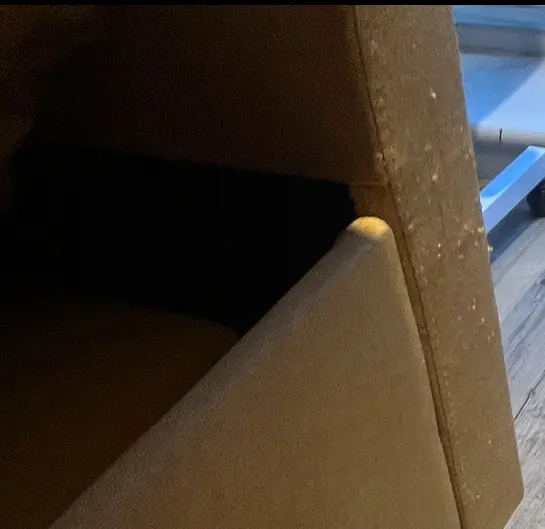Bought earlier this year from Amazon. In perfect condition, but one back leg has a few scratches (which can be seen from the picture). Super comfortable even just as a single sofa.