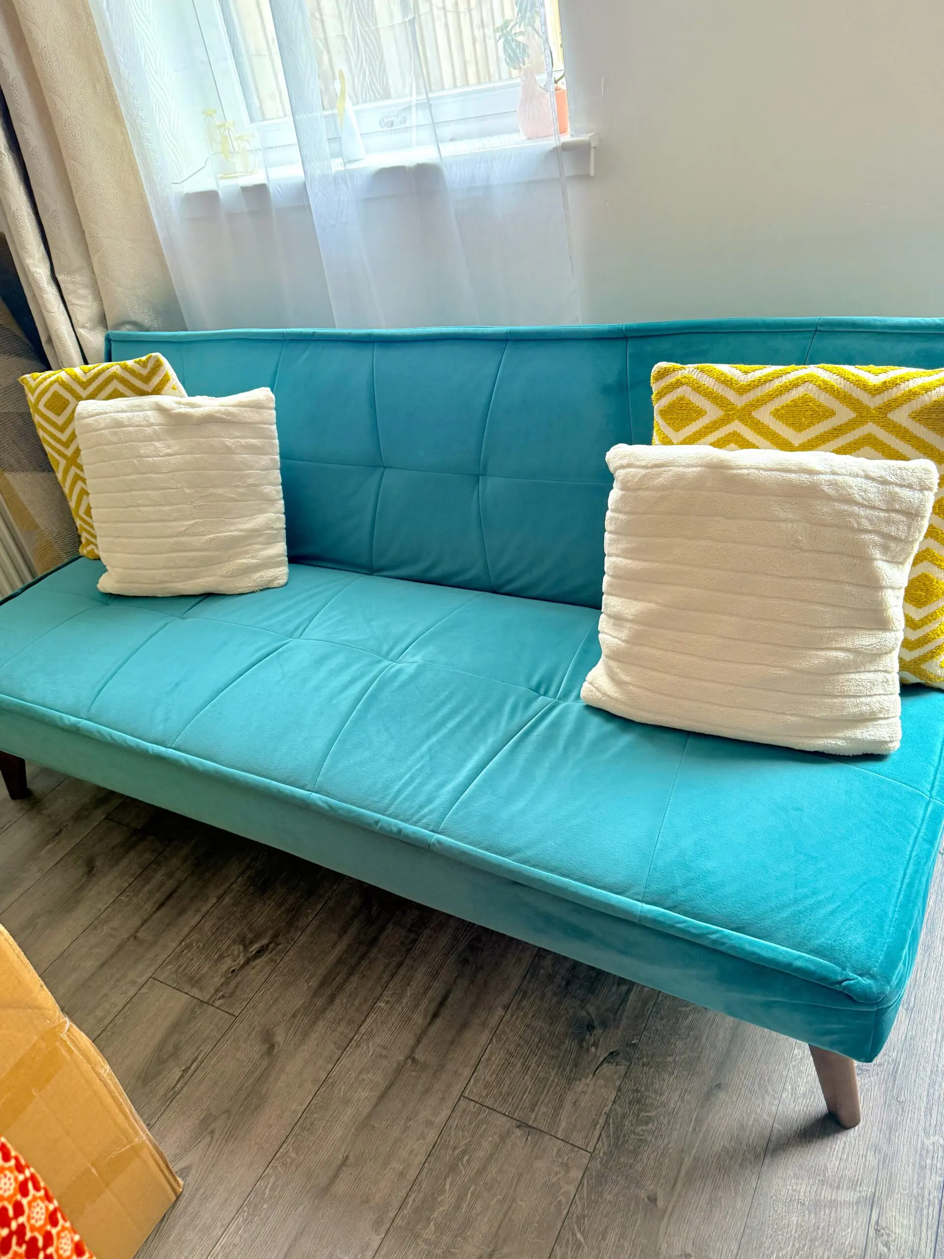 This lovely sofa bed gives a stunning Scandinavian loft living feel, adding Hygge vibes to your décor. Solid wooden legs offer both style and substance, a rare combination! Comfortable to sit on, the frame easily folds out and transforms into a bed fit for 2 people, and one that your guests will love sleeping on at that.
