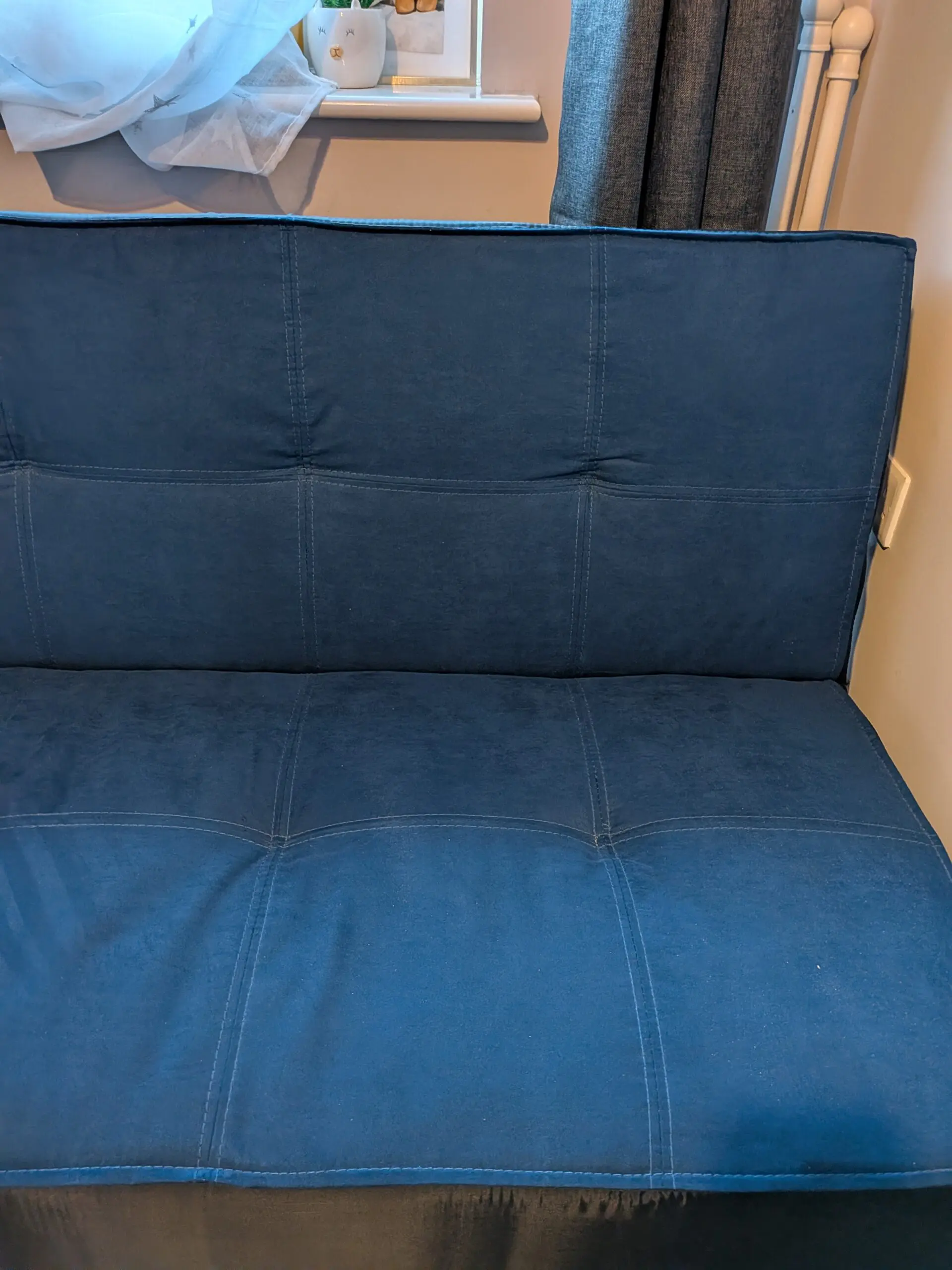 Beautiful blue velvet sofa bed in excellent condition. Barely used and has always been covered with a throw, so the fabric is in great shape.