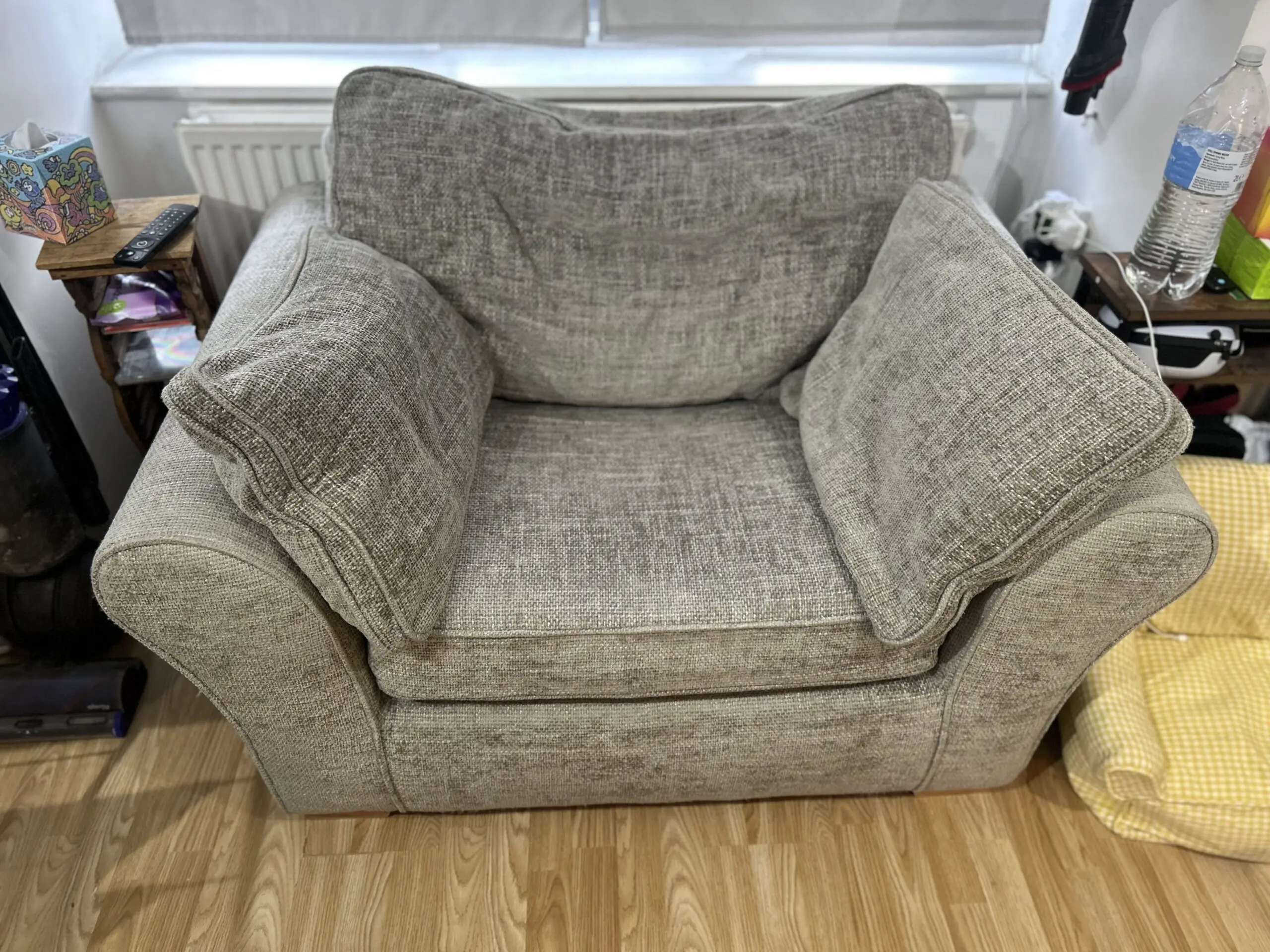 great opportunity to get a bargain! selling due to space issues, the challenger arm chair and sofa bed set is the perfect add for a cosy living room, the bed has been used only one times pretty much immaculate, bought 2 years ago still in very good condition.