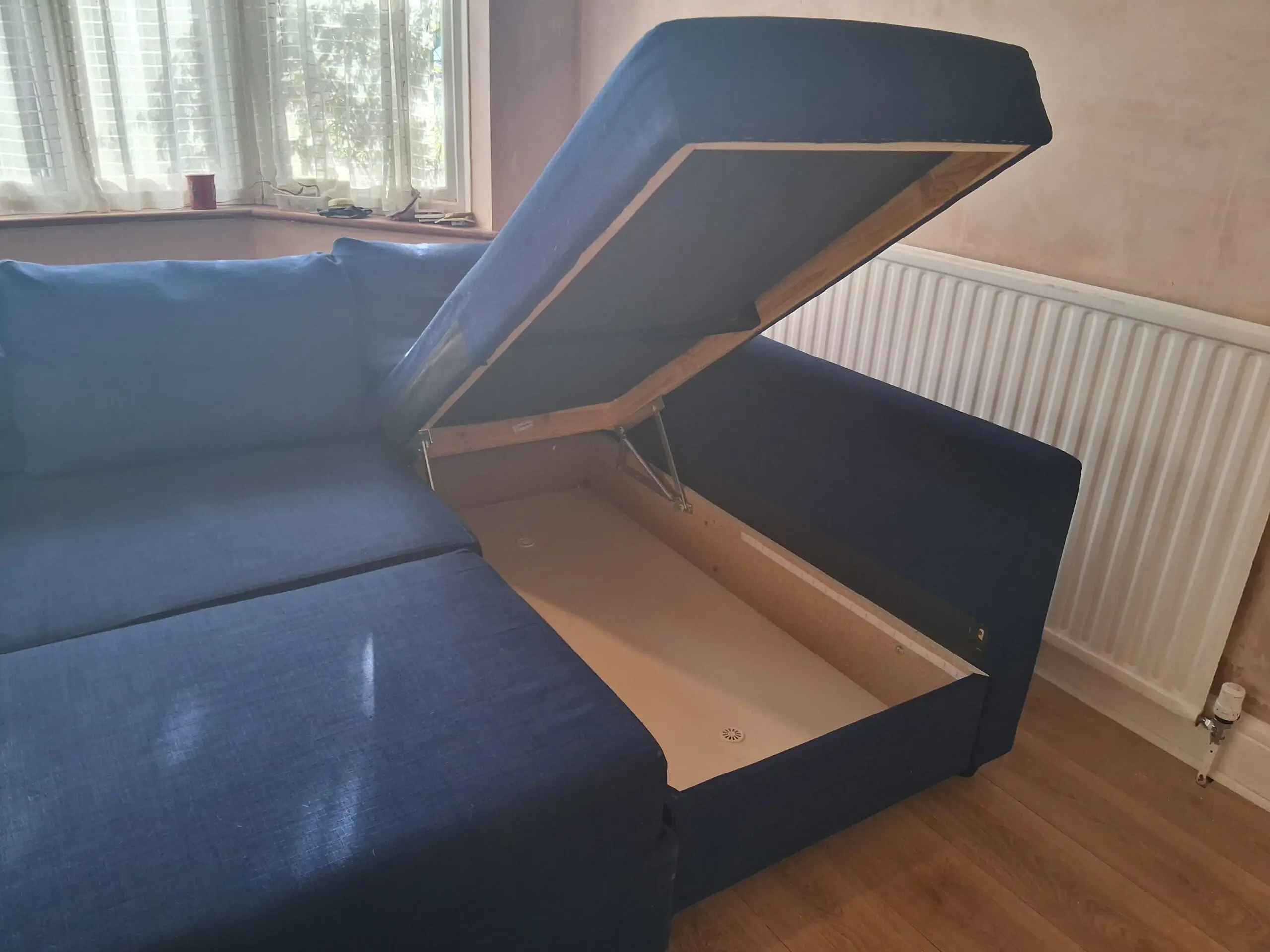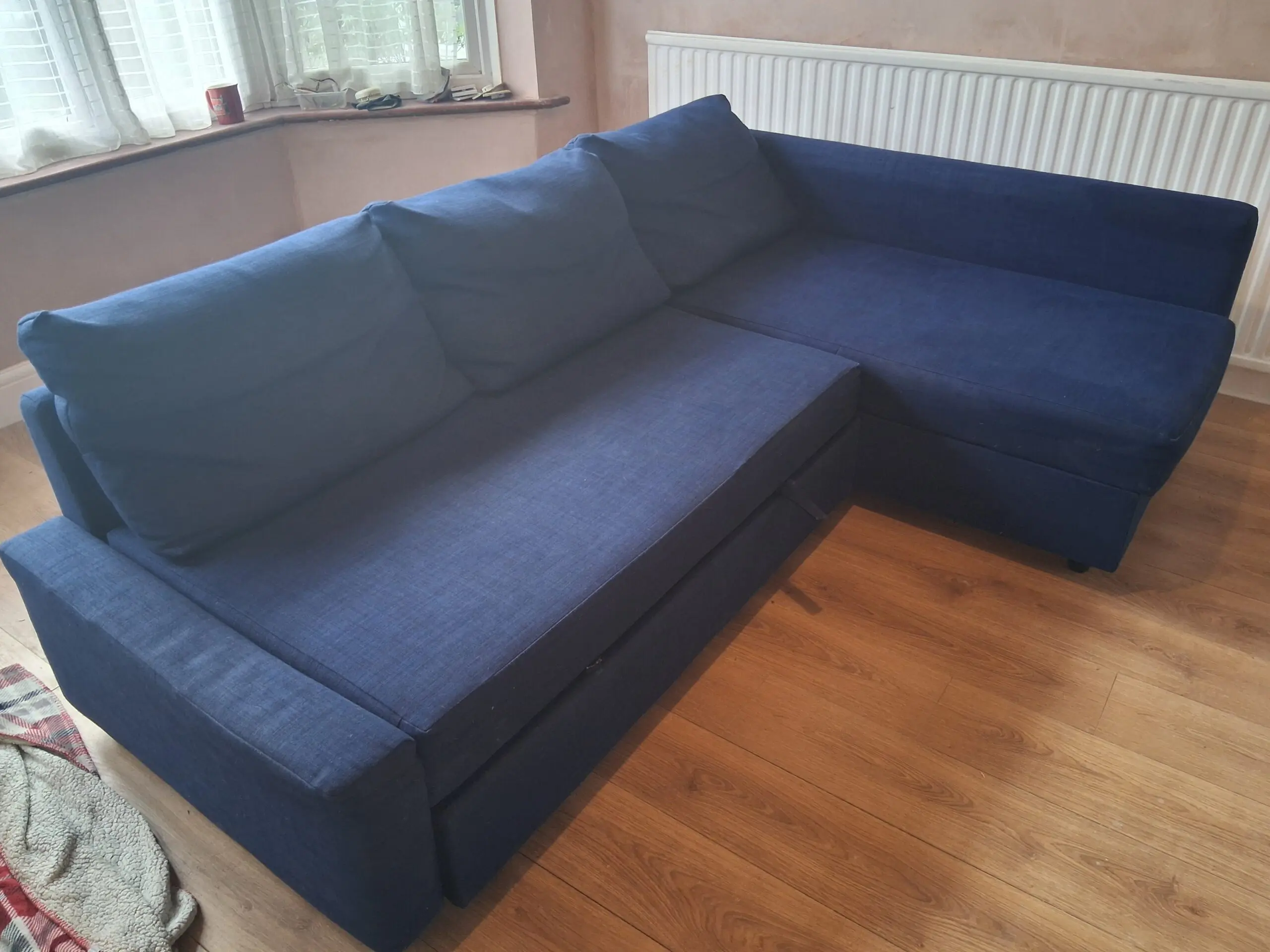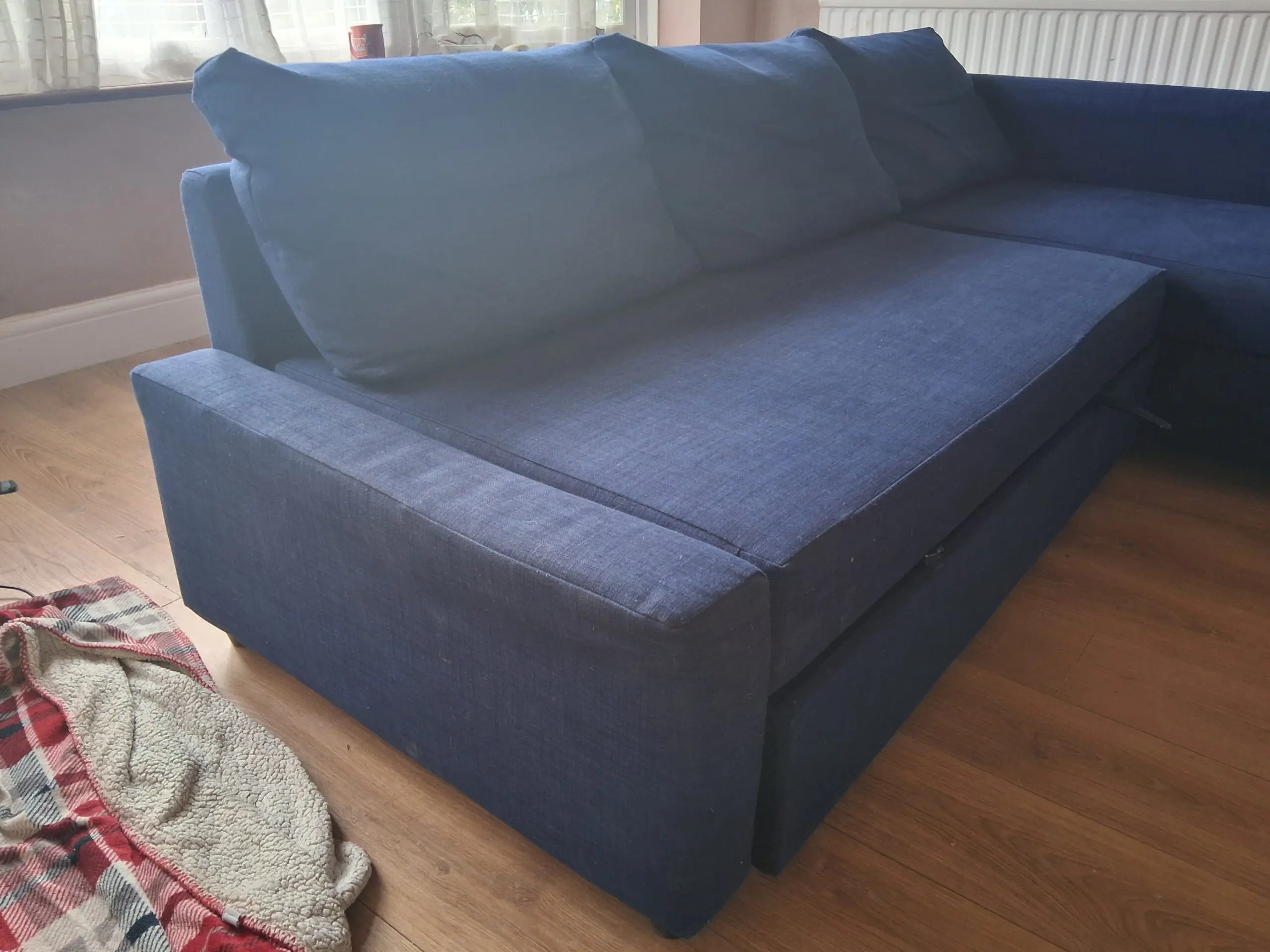 Sofa bed in good condition. Some signs of wear and tear around edges.