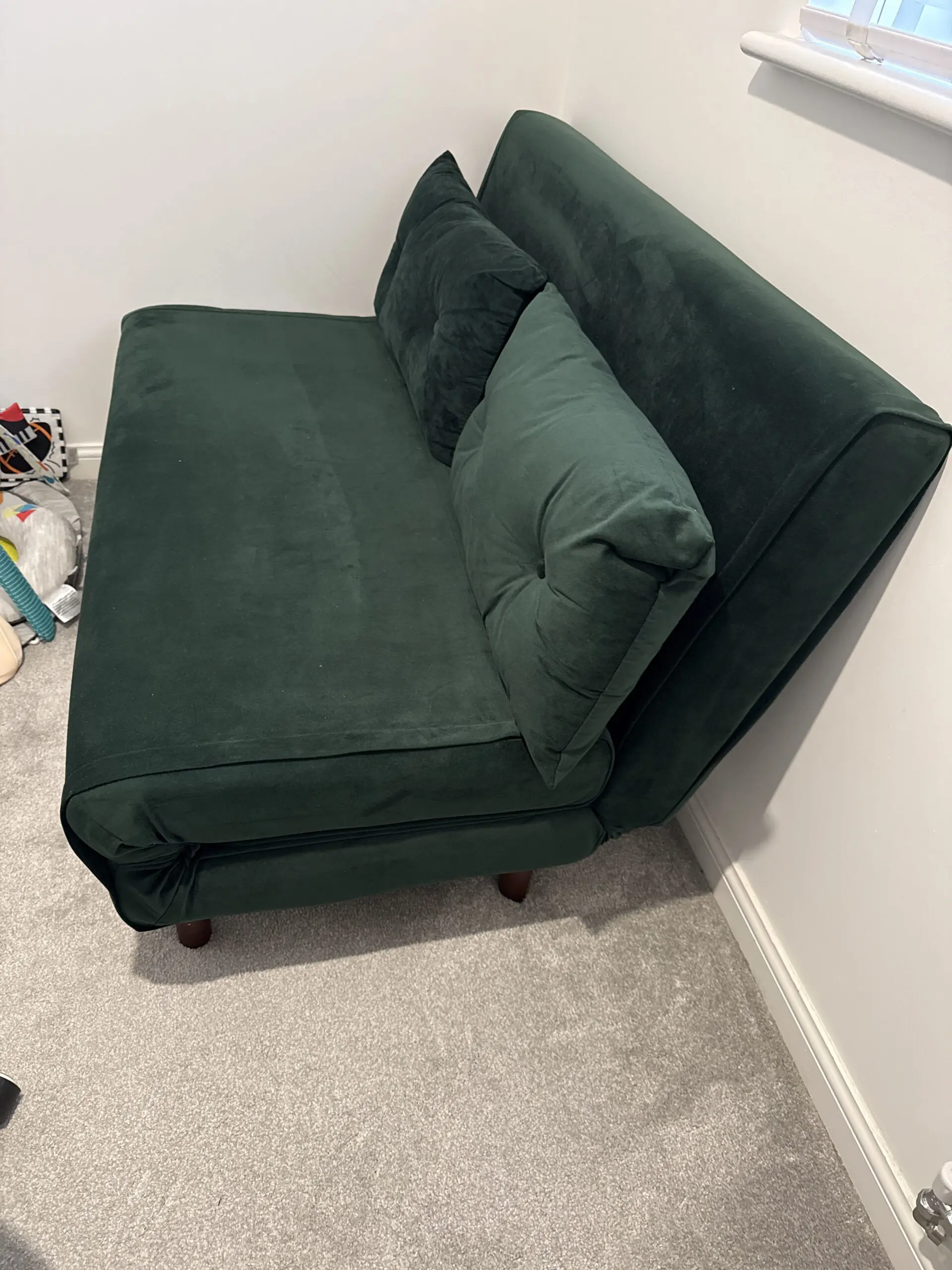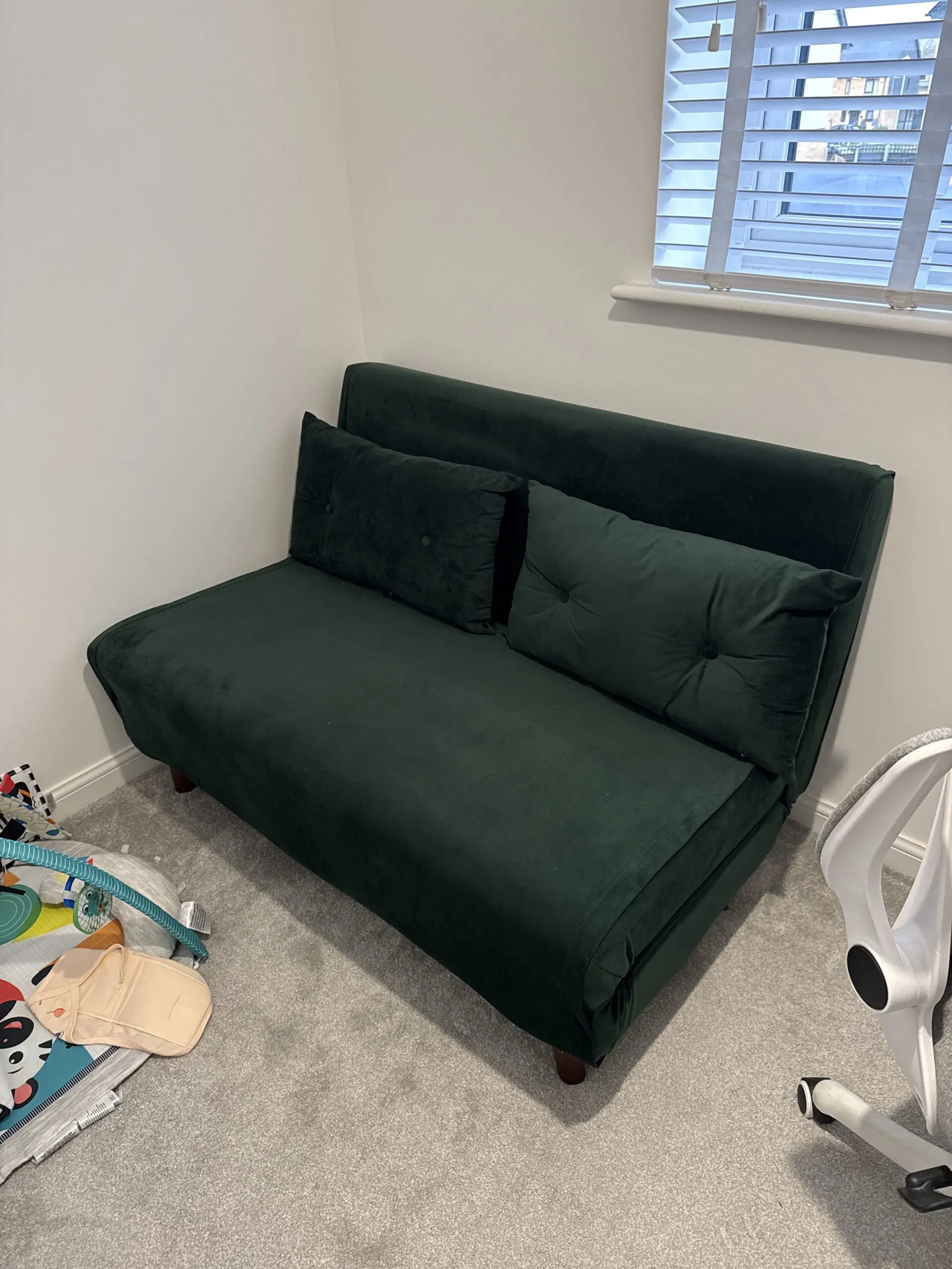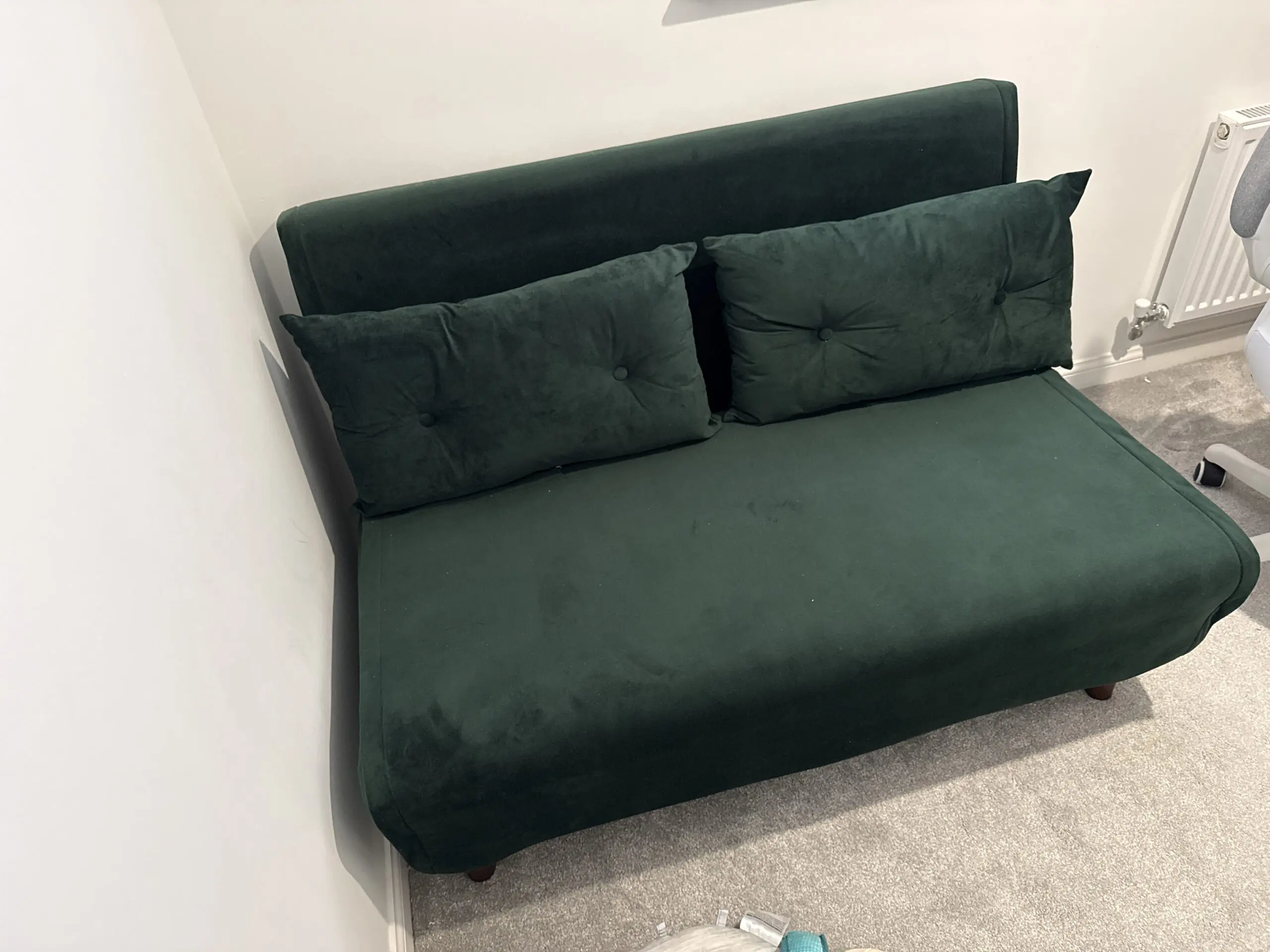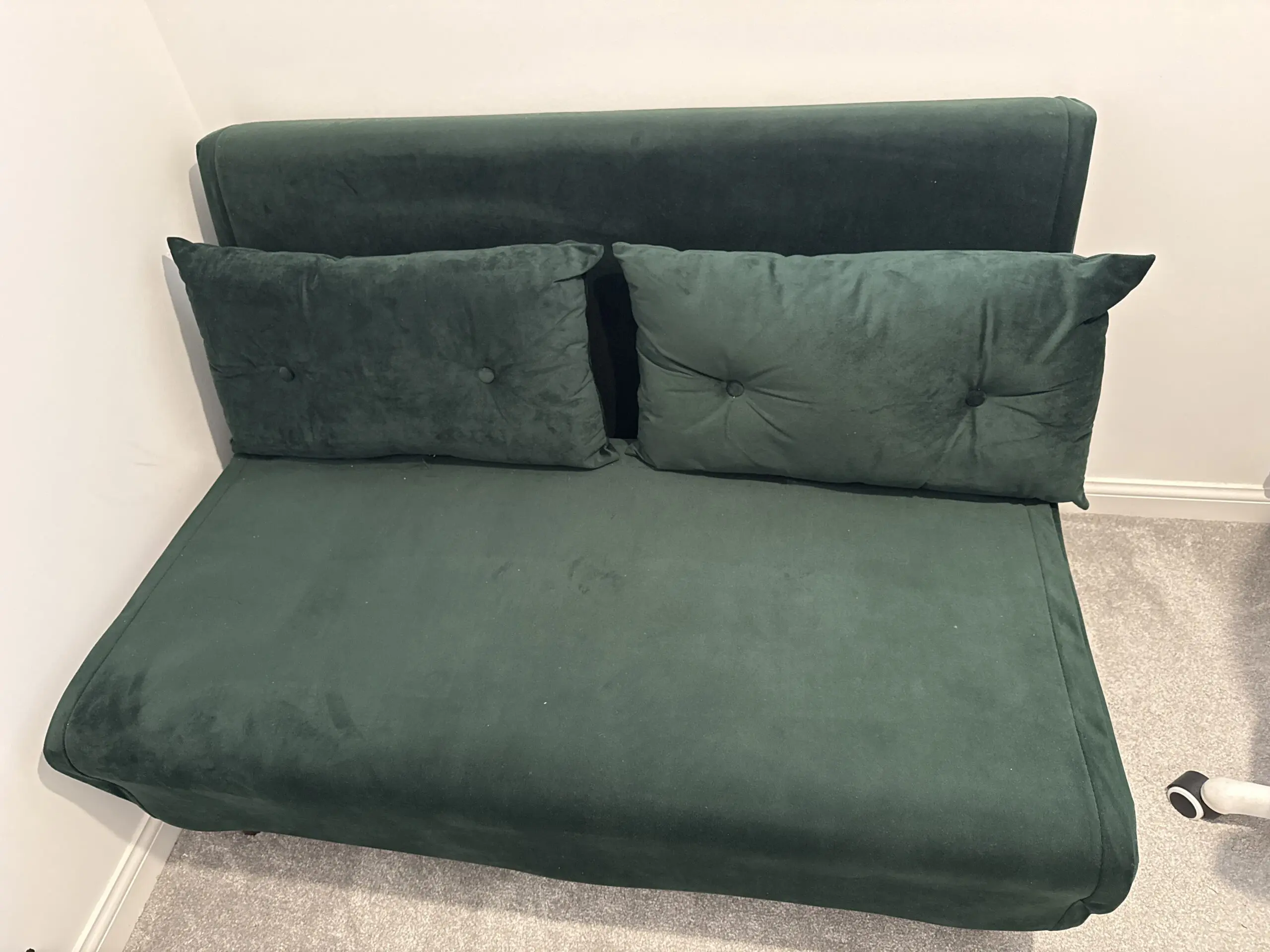 Selling our Daal’s 2 Seater Small Double Folding Sofa Bed in beautiful pine green velvet.
