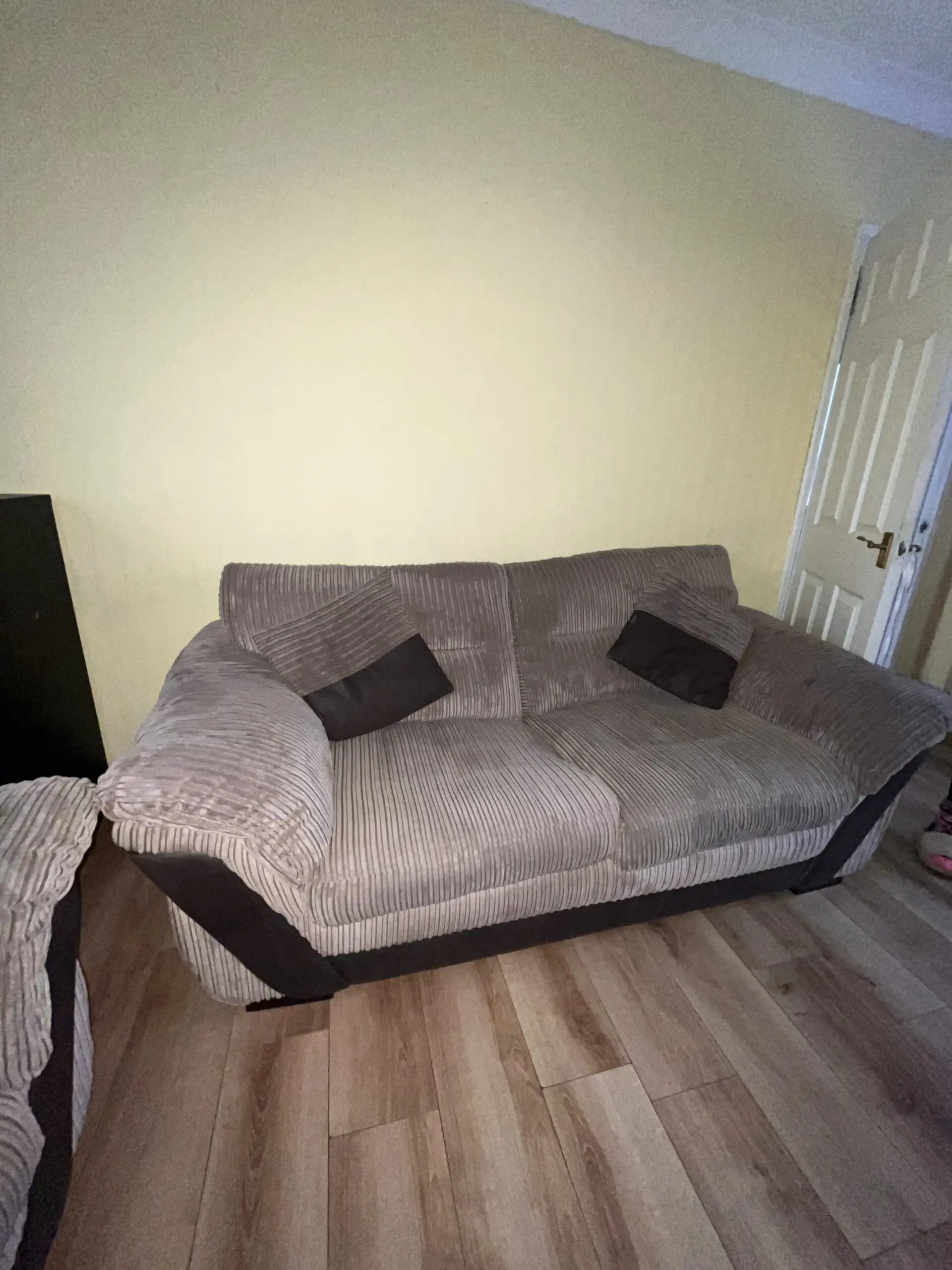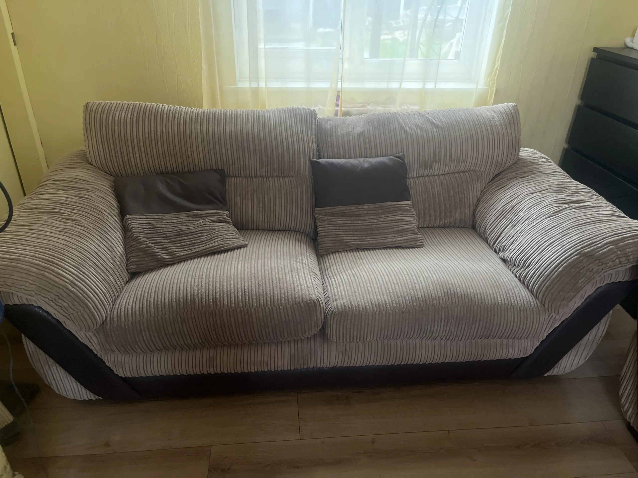 Over 2 years old now. Cushions are still plump. Very good condition sofa. Bed is comfy enough too. 2 matching pillows are included.