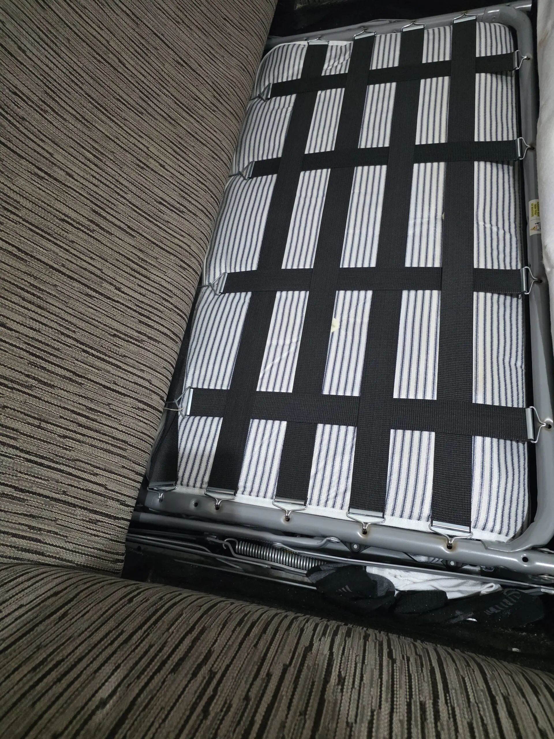 Item has minimal stains, fully functional, no rips,tear and no damage or repair, cushions & mattress are in good condition, item has been rarely used.