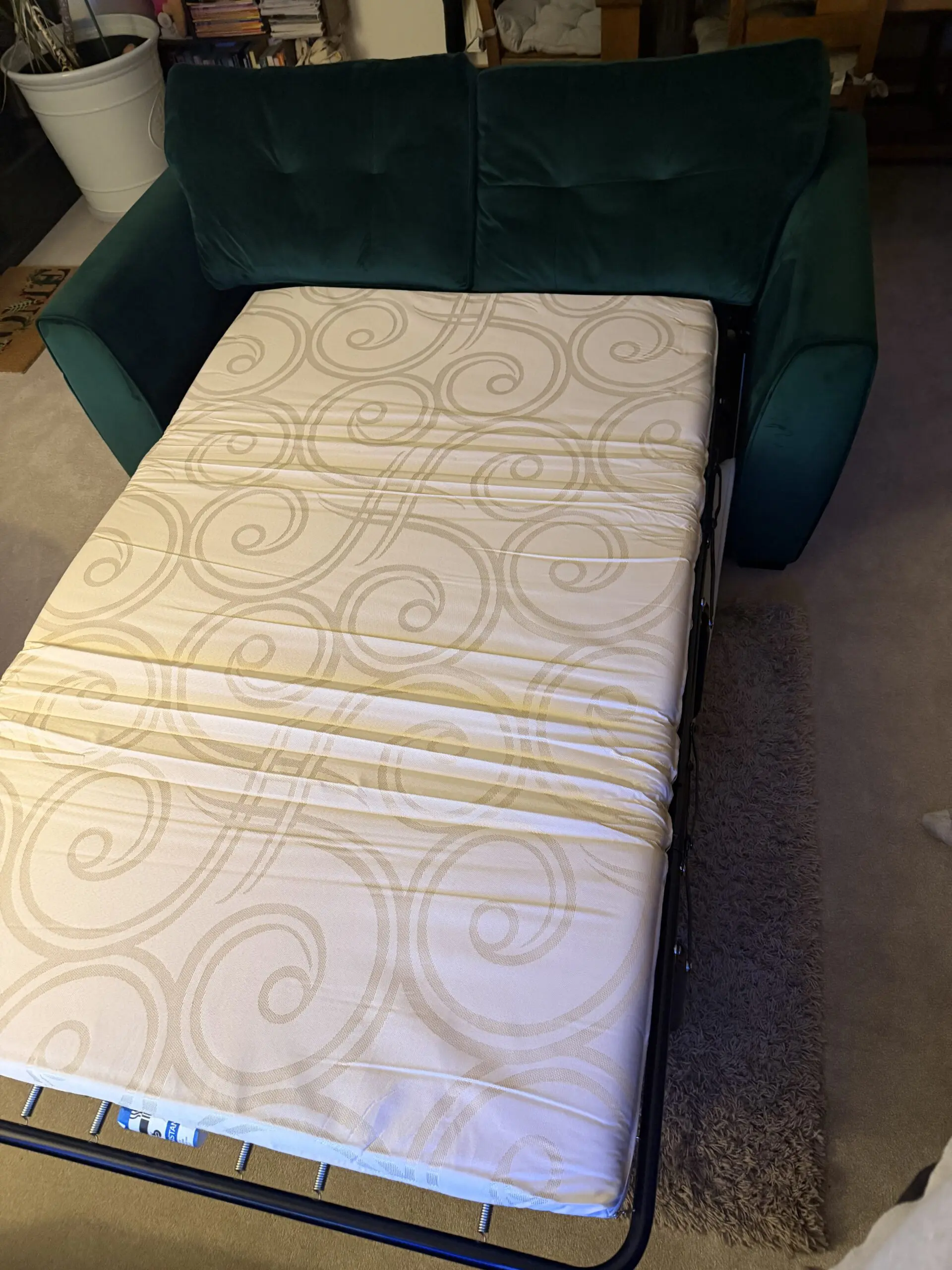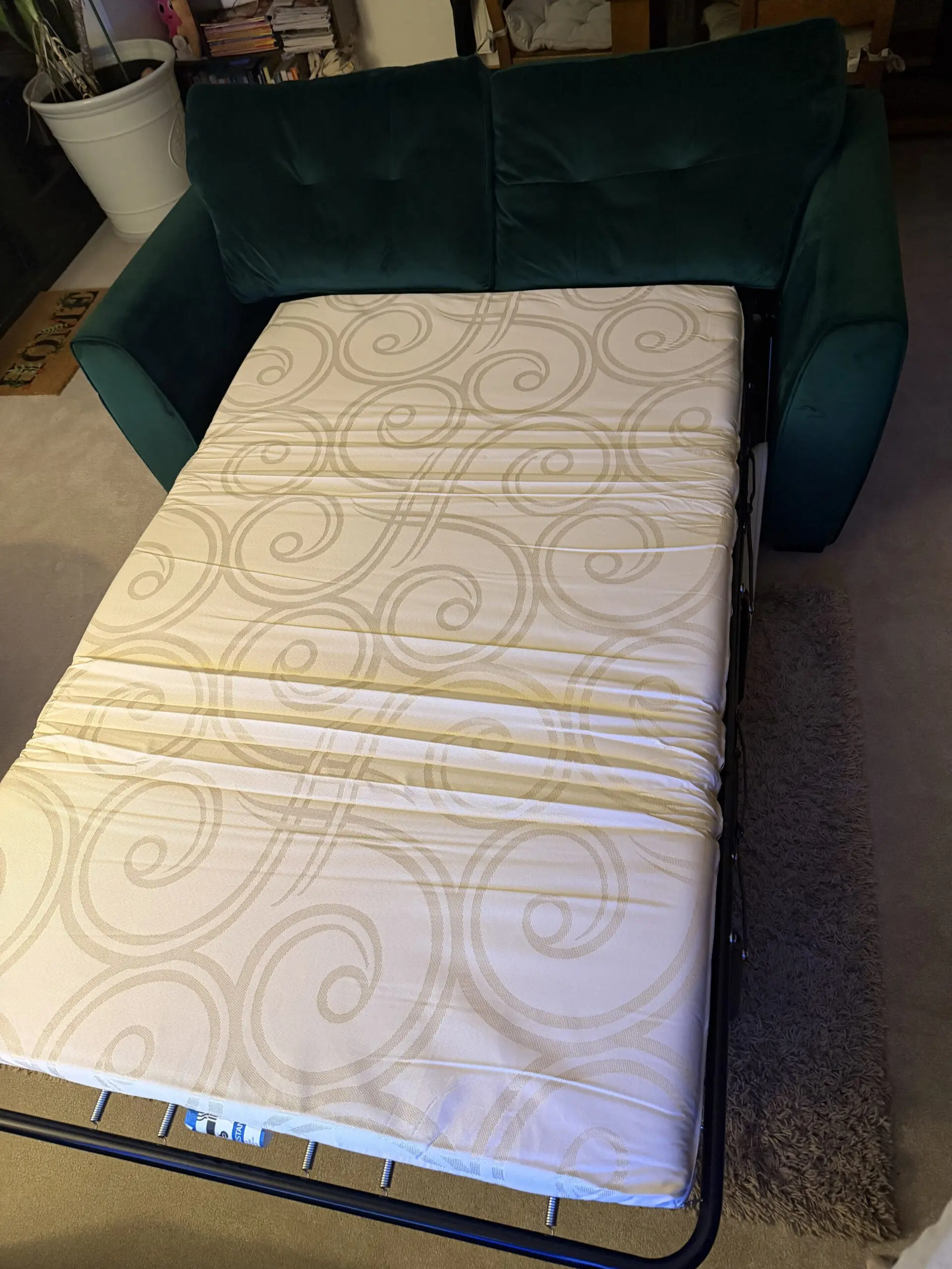 Less than a year old. In perfect condition. Sofa bed in perfect condition never used.