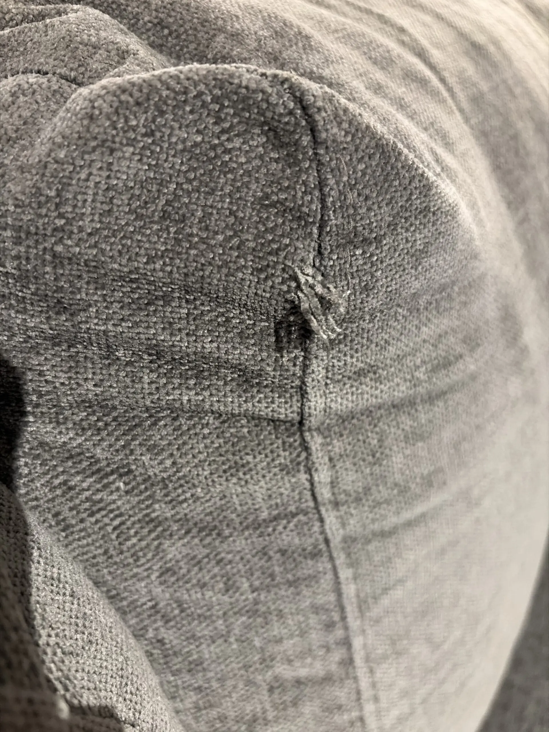 Immaculate Condition! Never used as a bed and has sat in spare room. Pet and smoke free home, has been kept with blanket cover. Slight fray (unnoticeable to cushion) otherwise no other tears, bobbles or marks.
