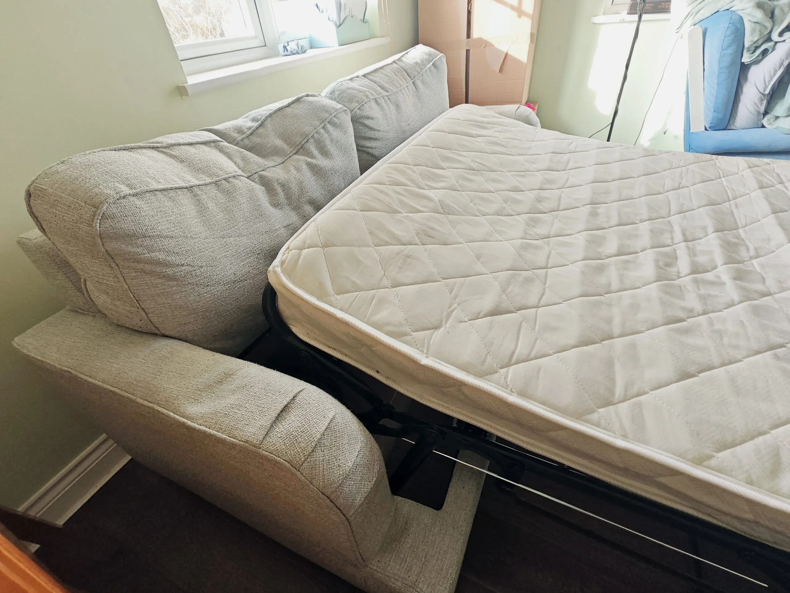 Similar to this one by Dunelm: https://www.dunelm.com/product/beatrice-tonal-textured-weave-3-seater-double-sofa-bed-1000211545?defaultSkuId=30792408