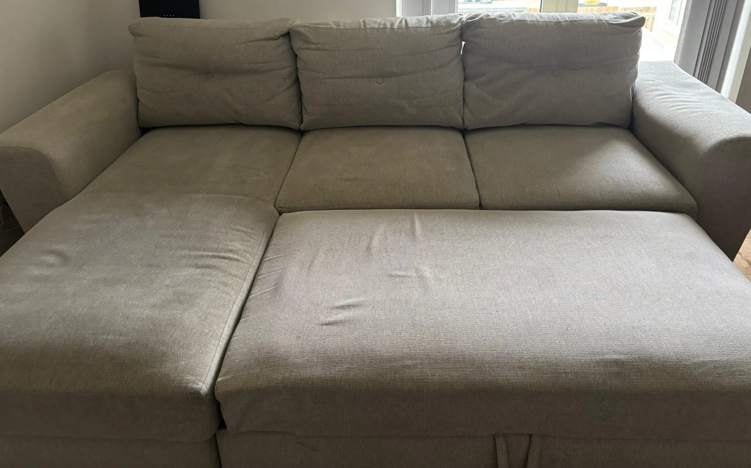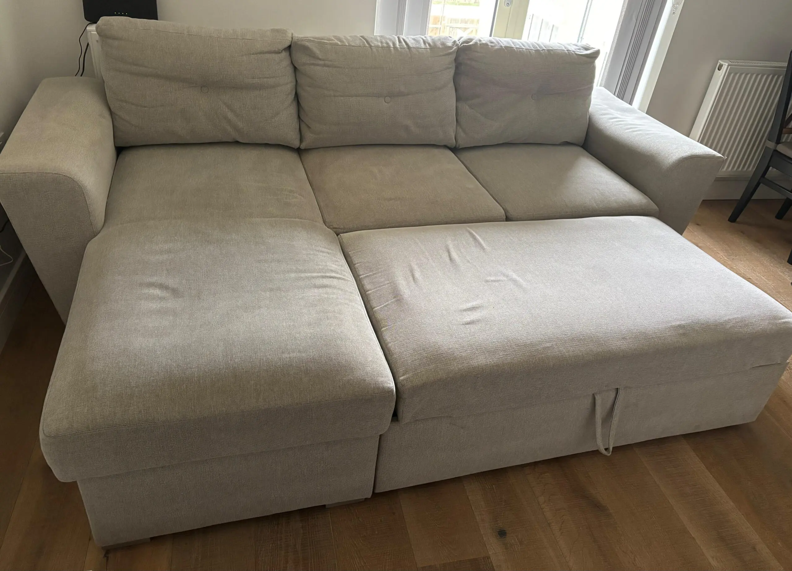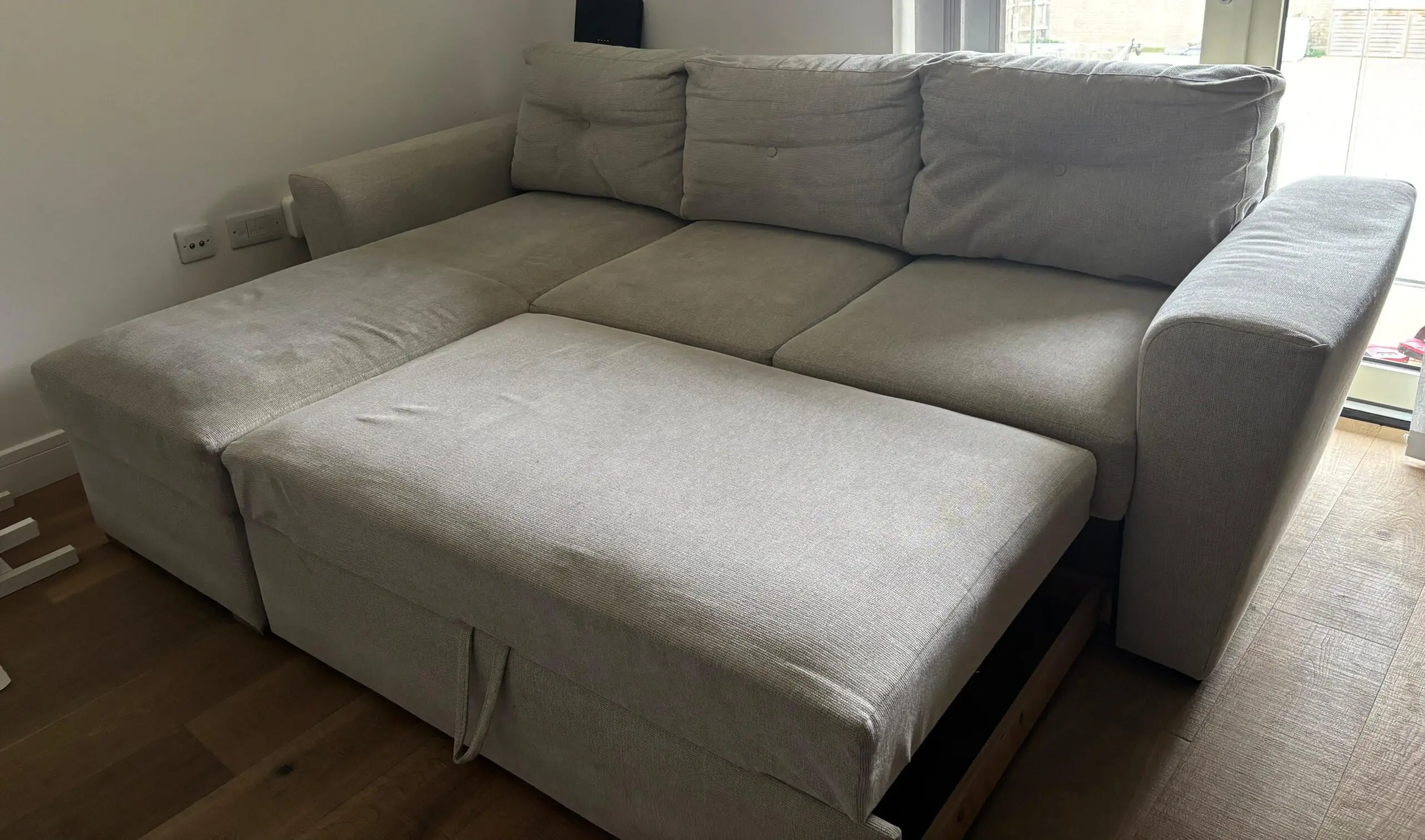 4-year old extendable sofa from JYSK, including storage area. Selling as we are moving out of the UK.