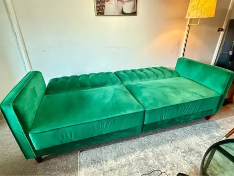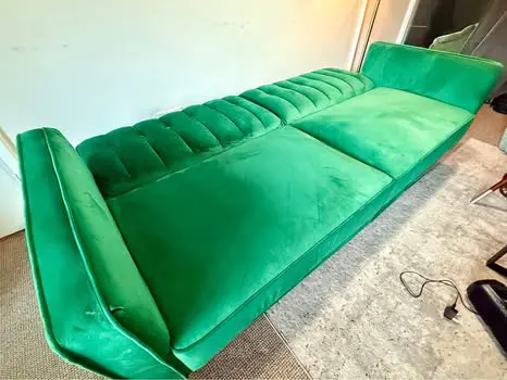 • 4-seater sofa bed chair in lush velvet emerald green with a reversible chaise