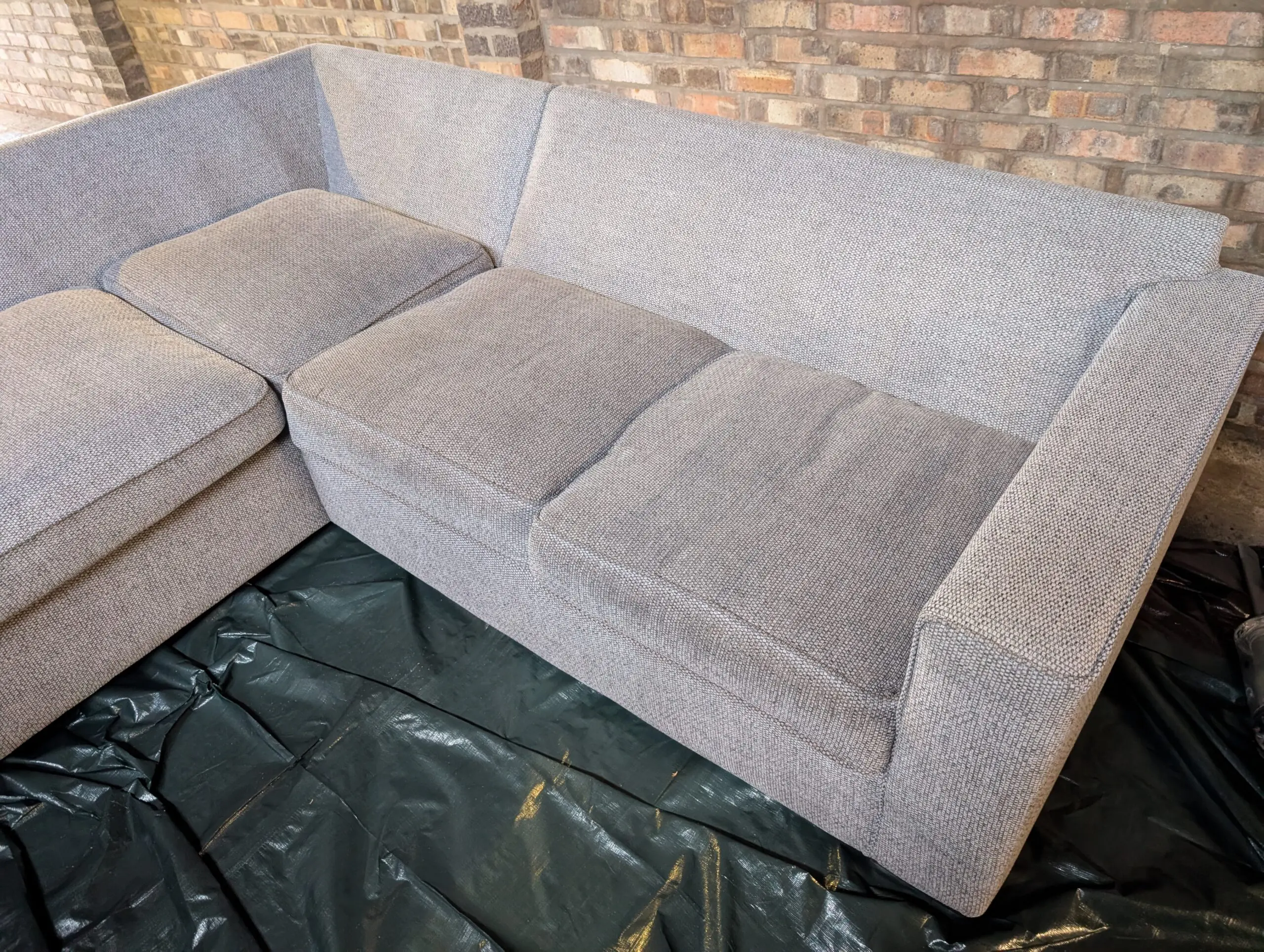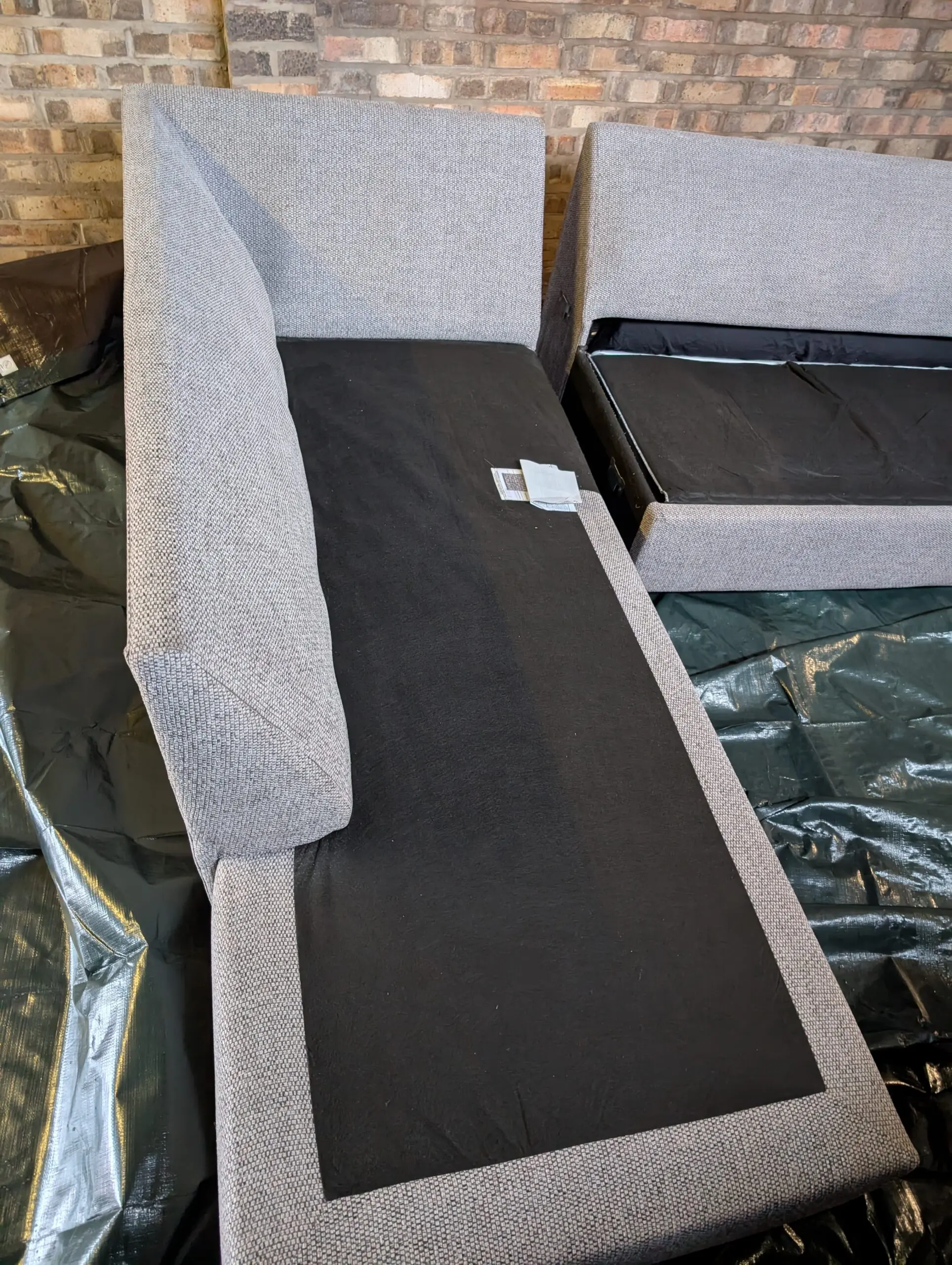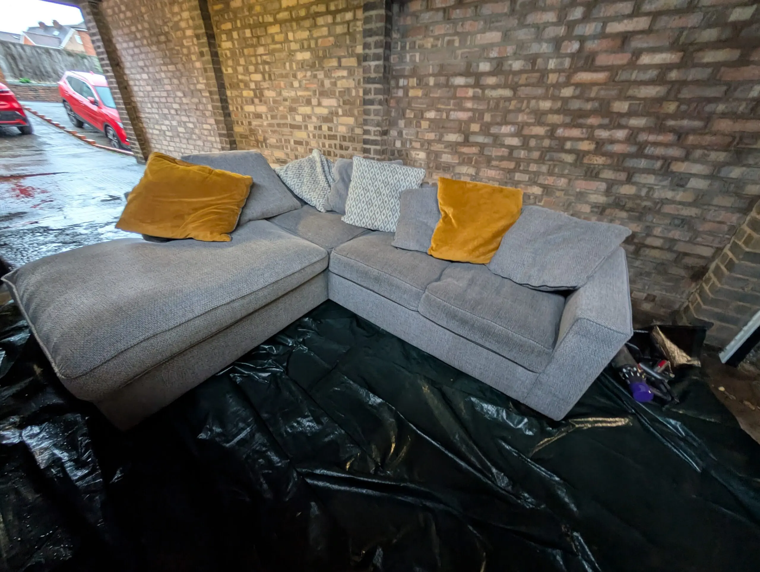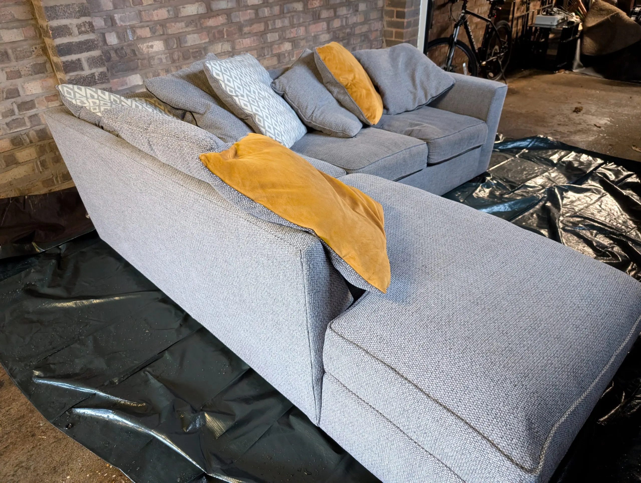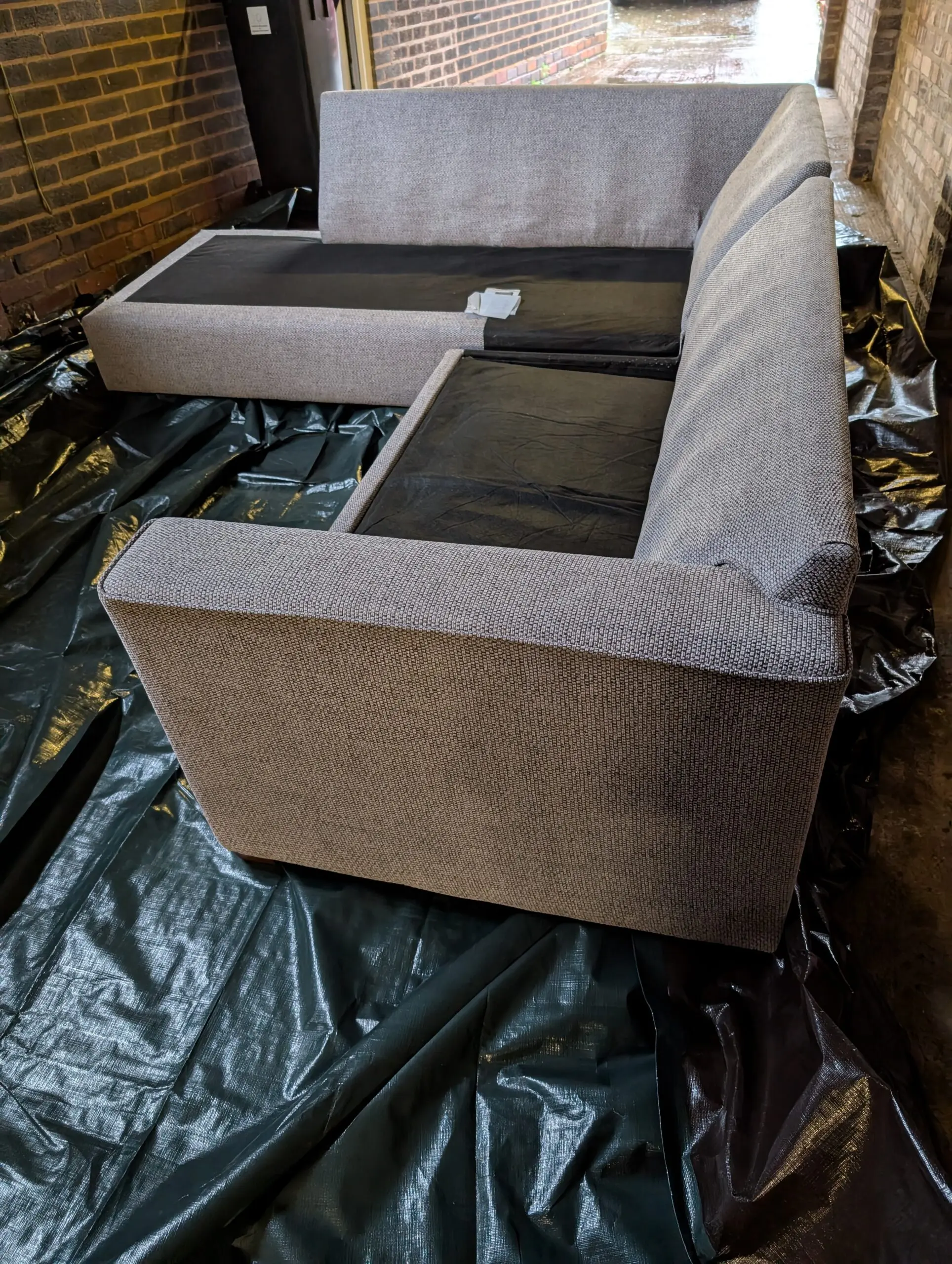 We are only selling this sofa as we’ve recently moved into a new property and it simply doesn’t suit the layout of our lounge. The sofa is currently stored in a climate-controlled garage, covered with tarpaulin.