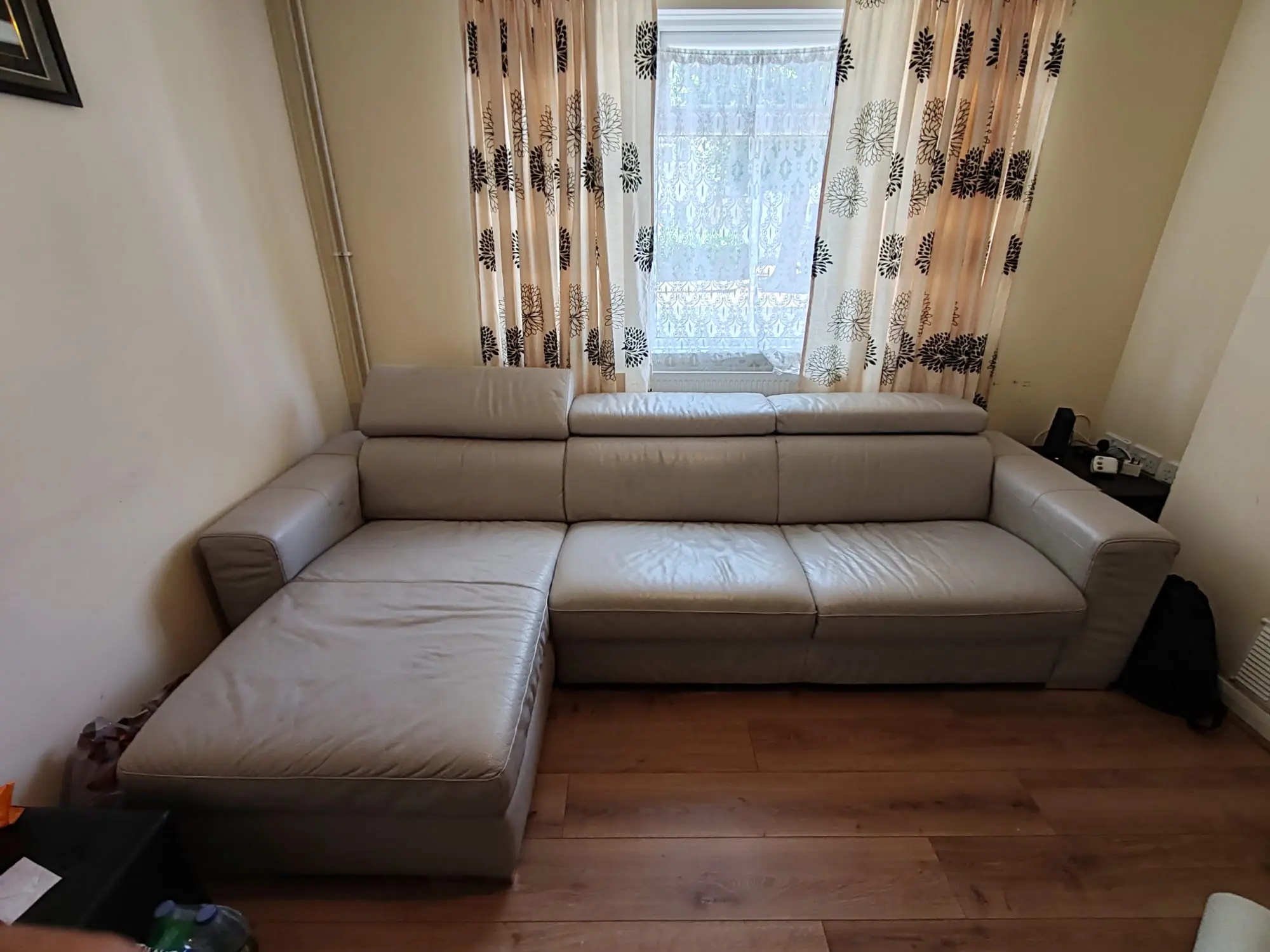 This sofa Bed is in great condition, I love it, the only reason am selling is due to lack of space in my living room. the color is light Grey. its L Shape Sofa, and a double bed
