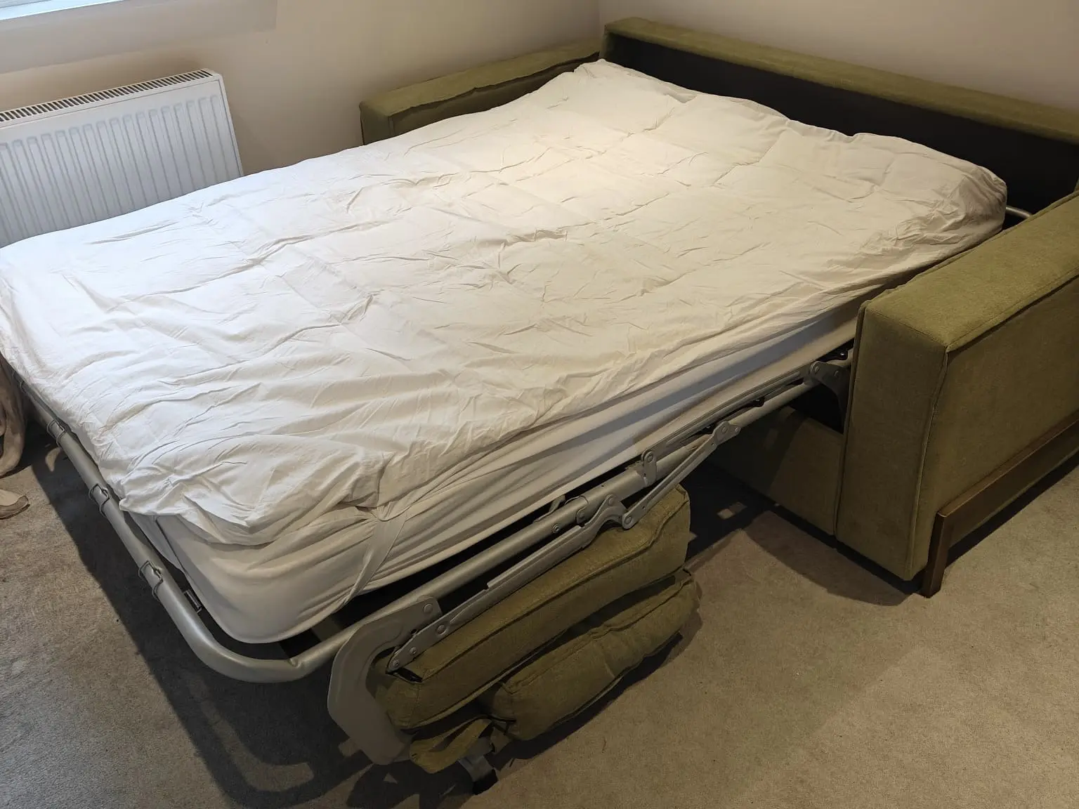 When unfolded as a bed, length is 210cm, width 200cm, height 60cm, mattress thickness is 11cm.