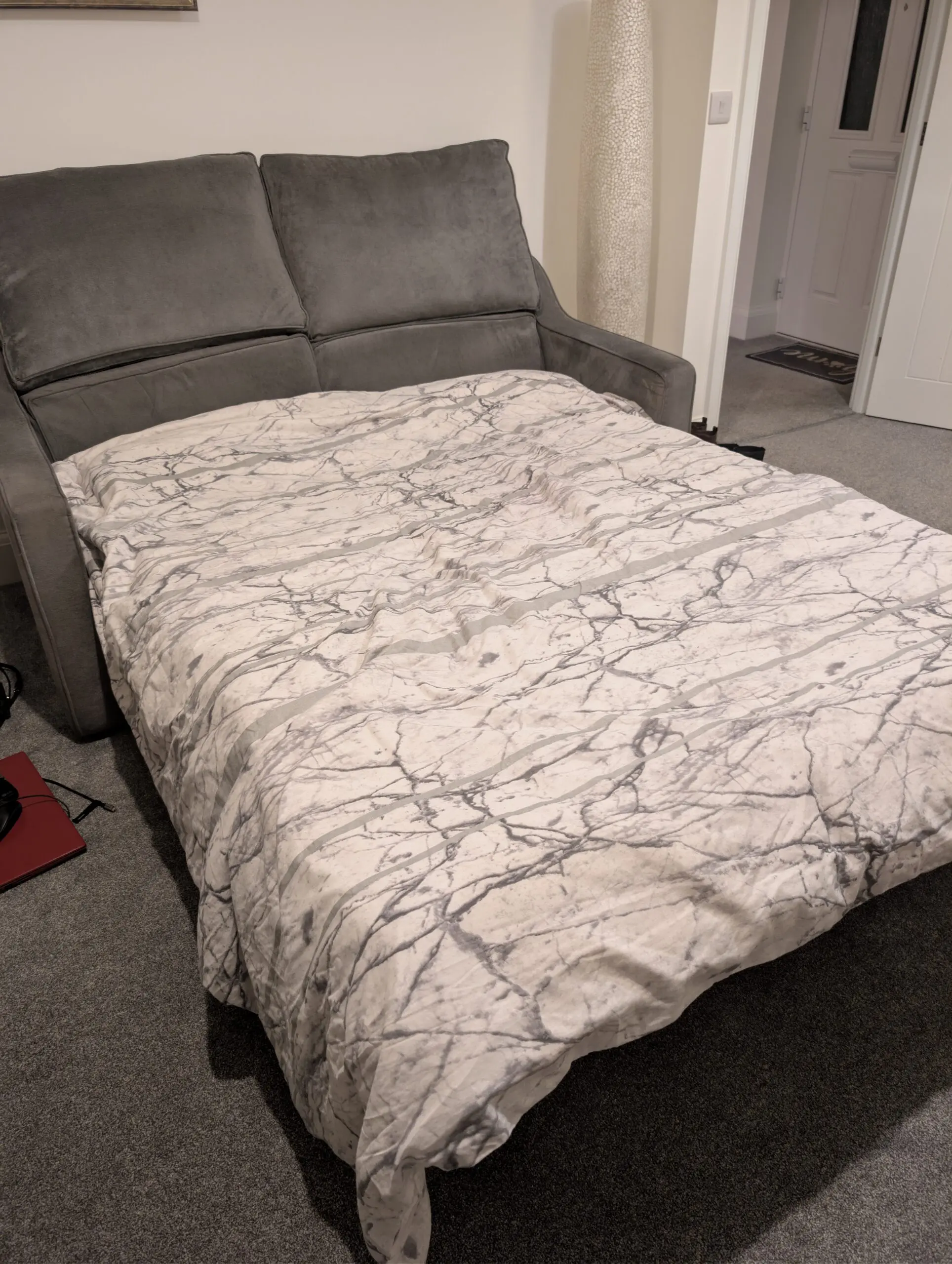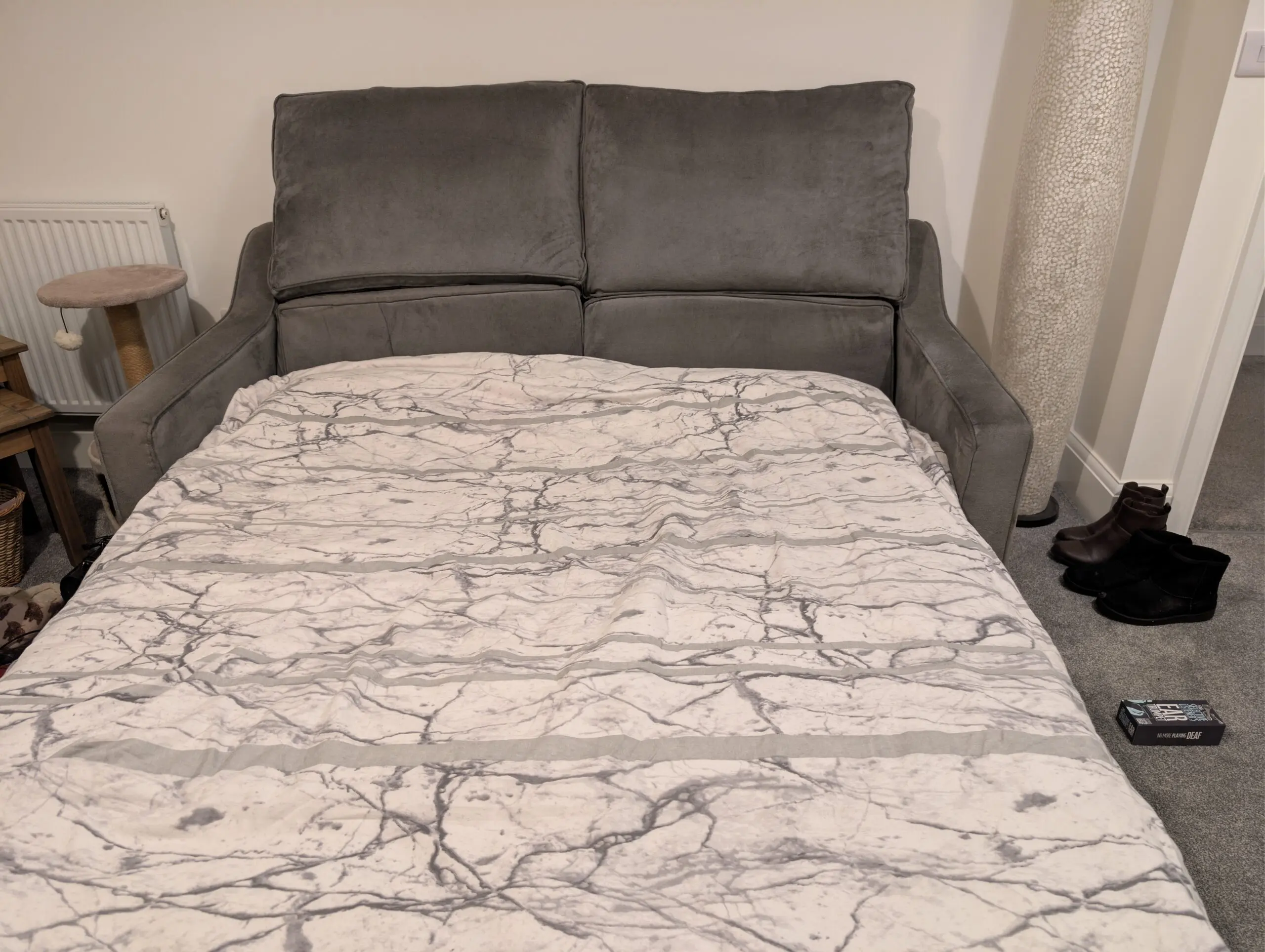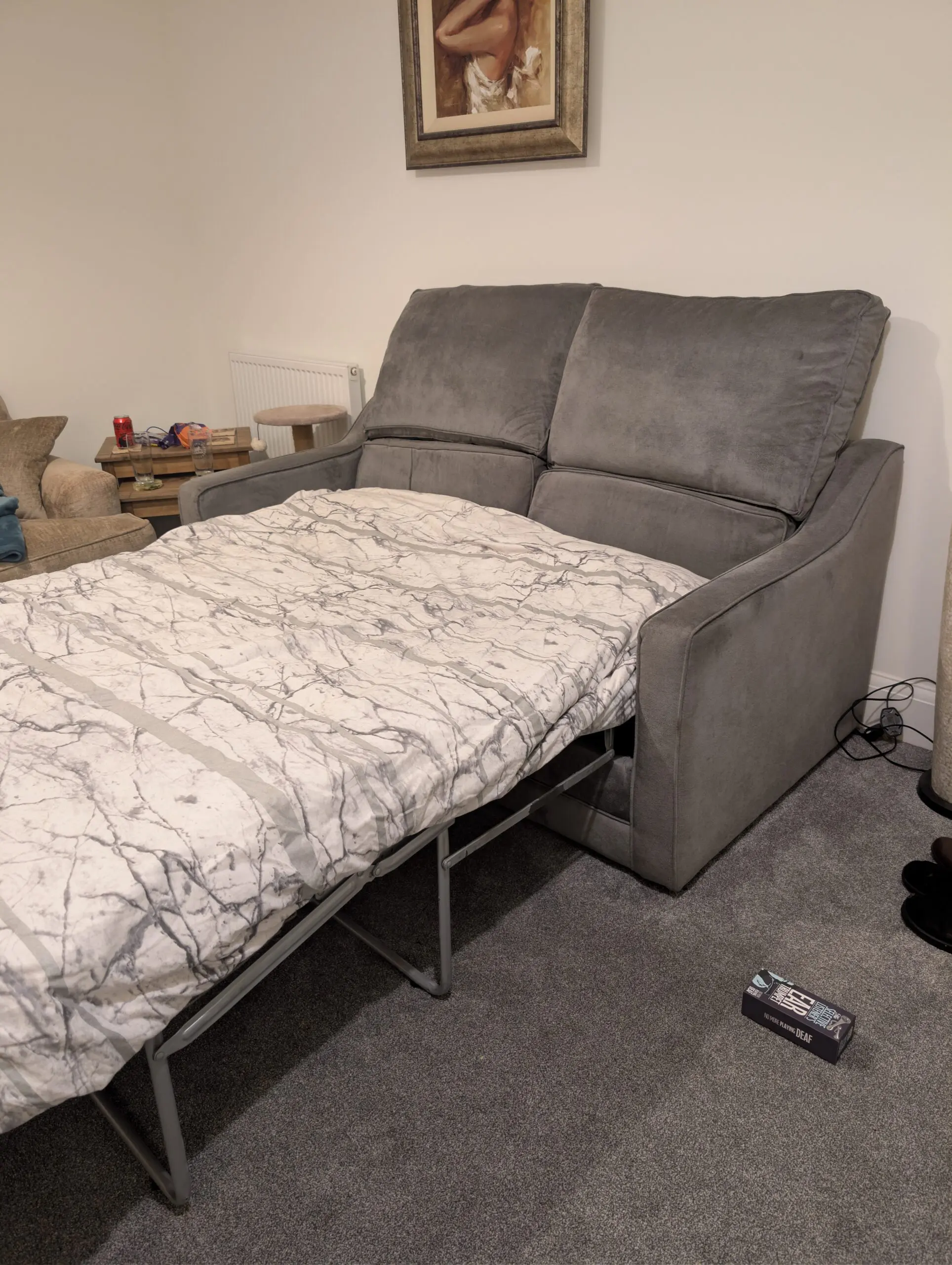 Comfortable pull out sofa bed, unknown brand as bought from an independent furniture store
