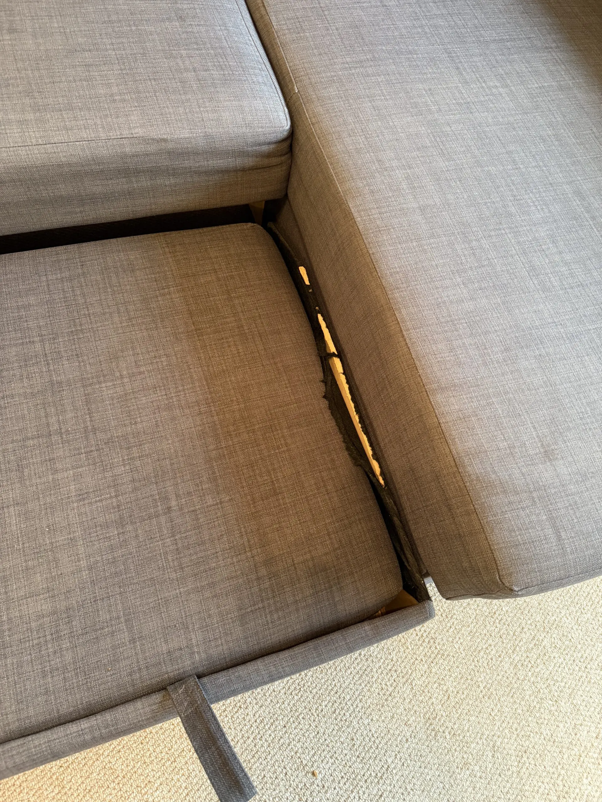 Sofa for sale in very good condition. It has a small tear in one spot, but it’s not visible and doesn’t affect use.
