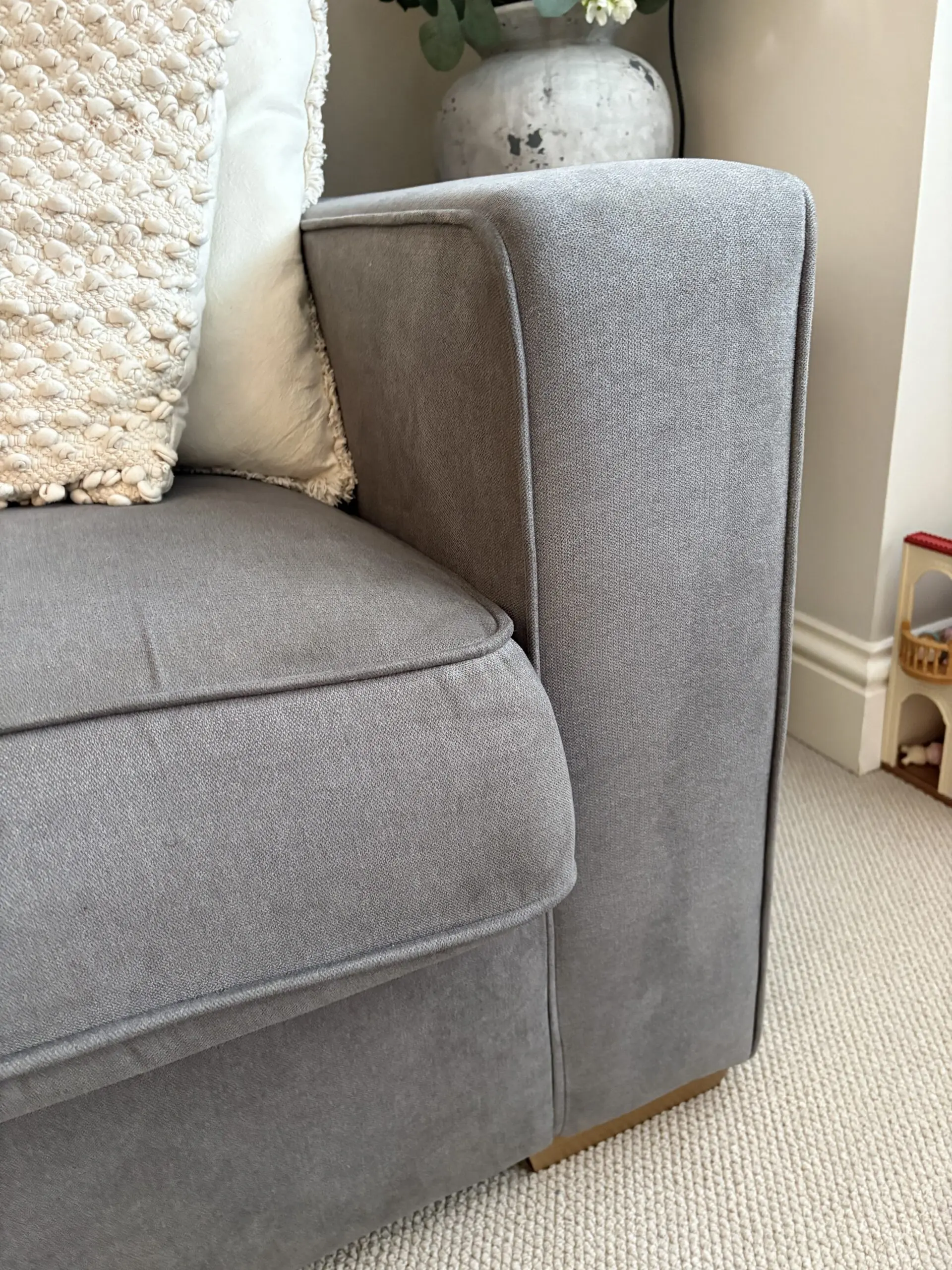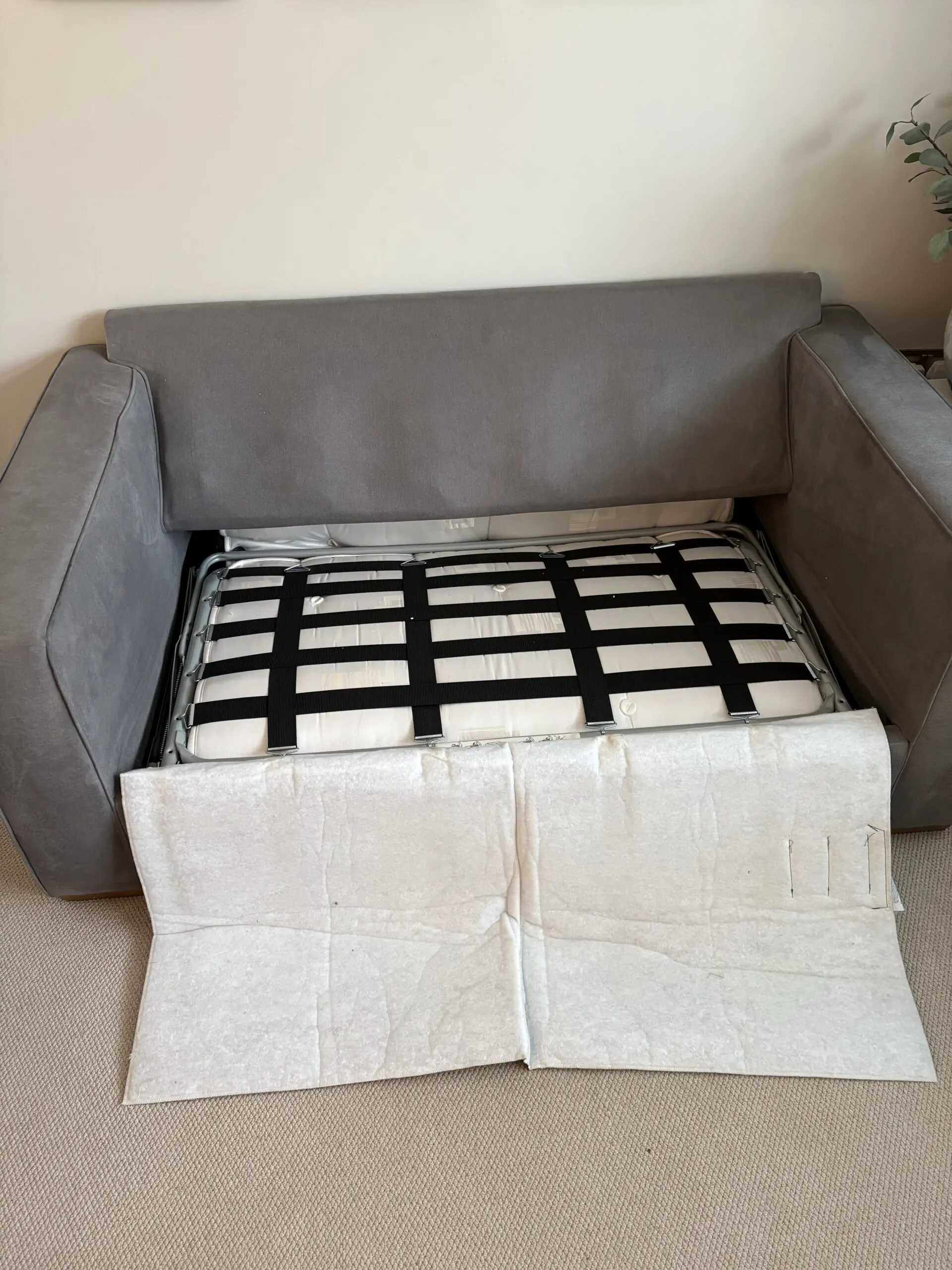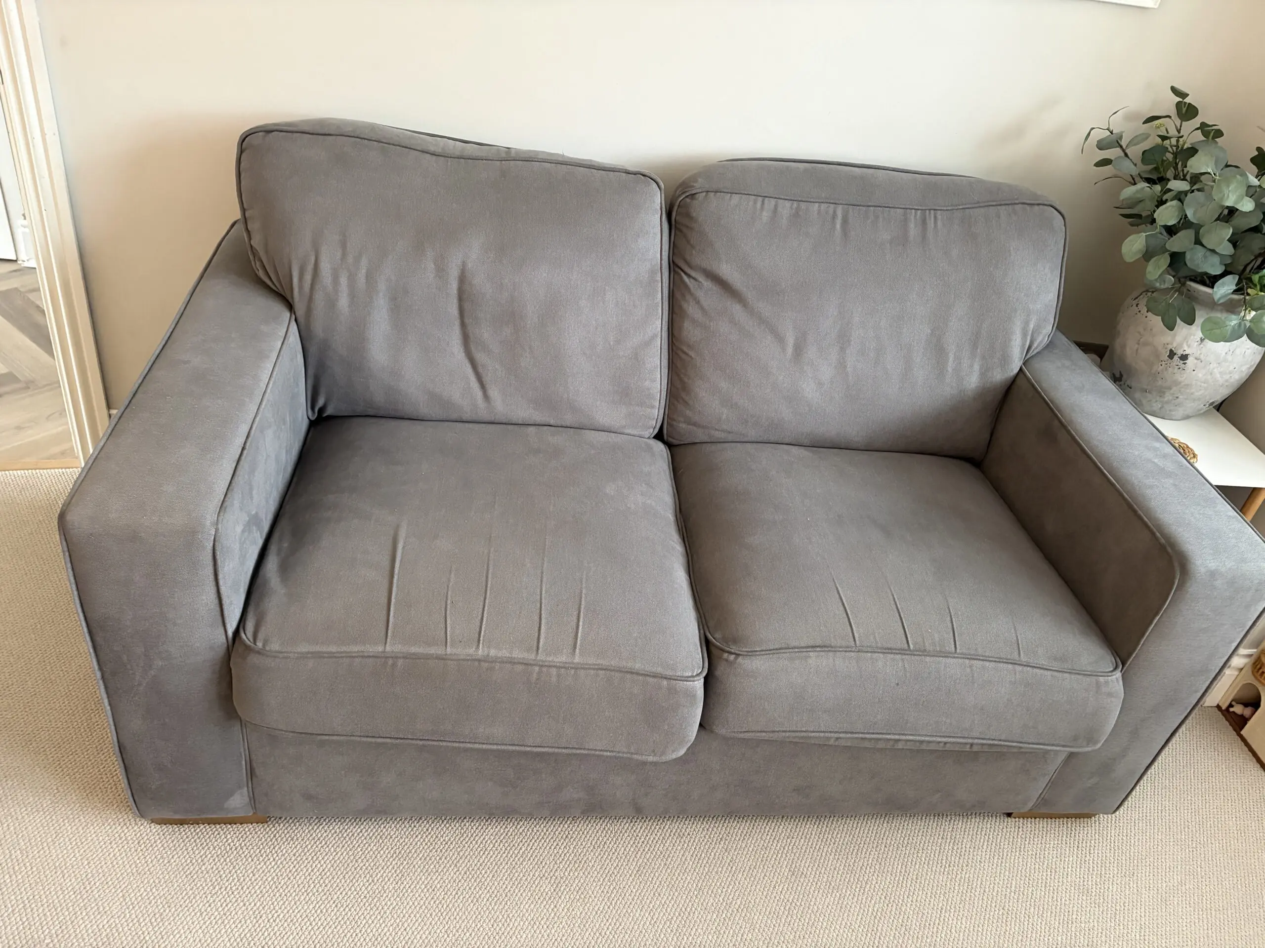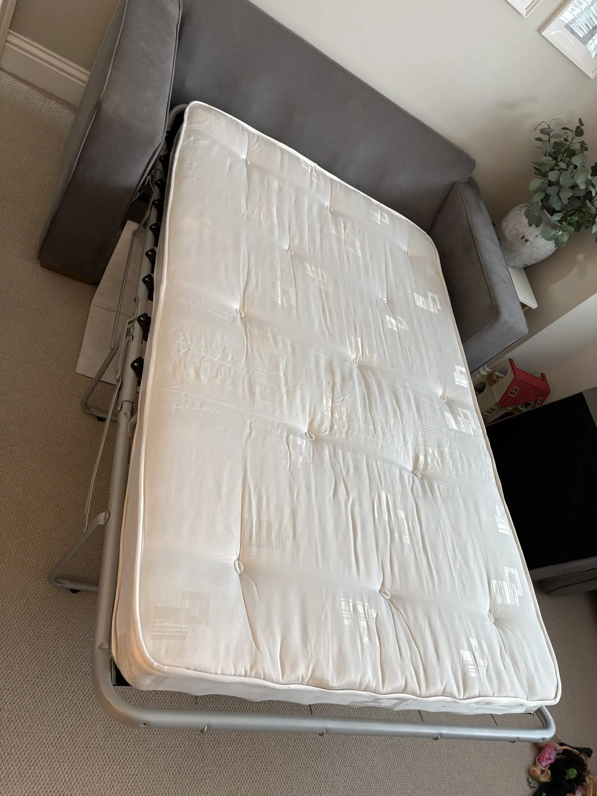 Lovely comfy sofa bed. Mattress is very comfy and only used a handful of times. Has been professionally cleaned. Some normal marks from use.