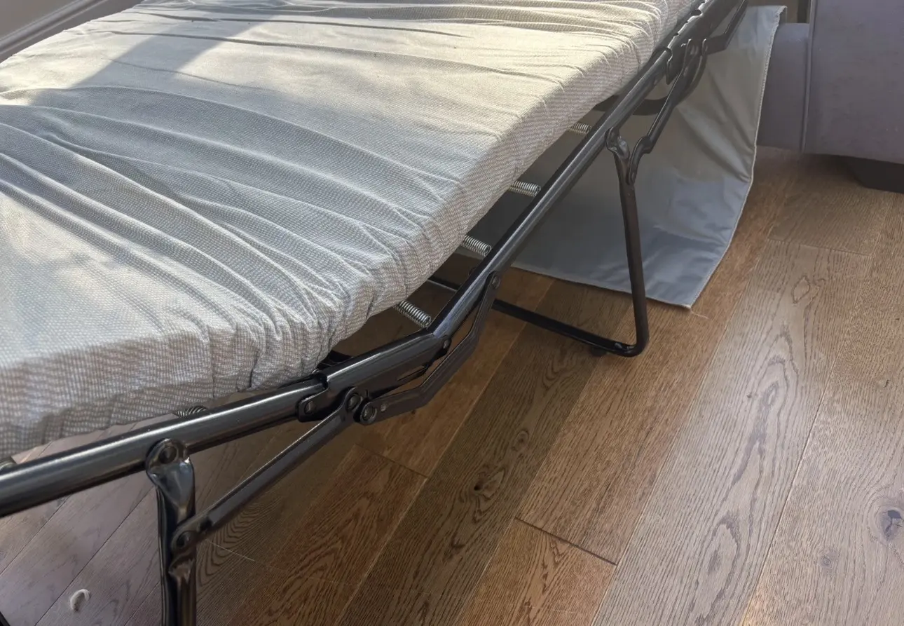 The attached Mattress is a simple thin one – as can be seen from the pictures, but as would be expected for a sofa bed mattress: this can be padded up with layers if necessary.