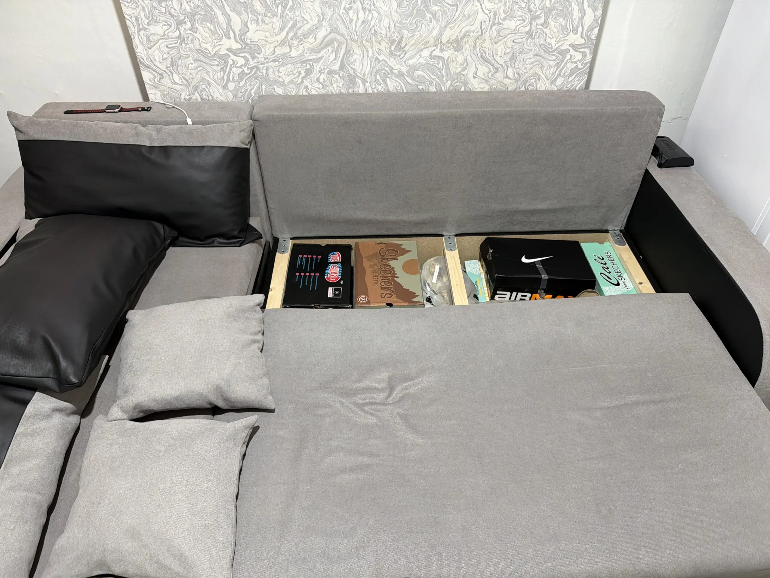 I am selling 1 year used sofa cum bed it has also storage inside it.