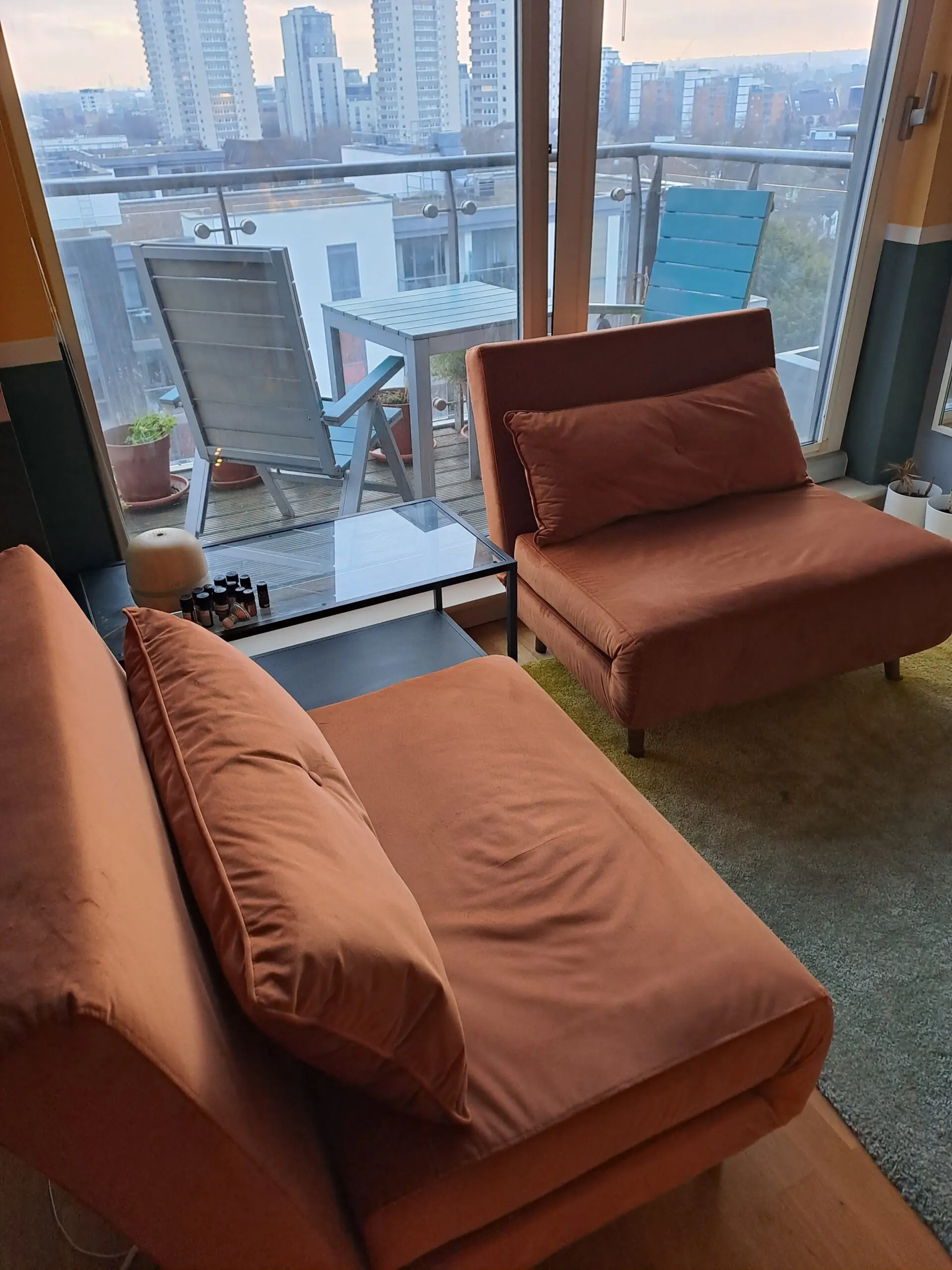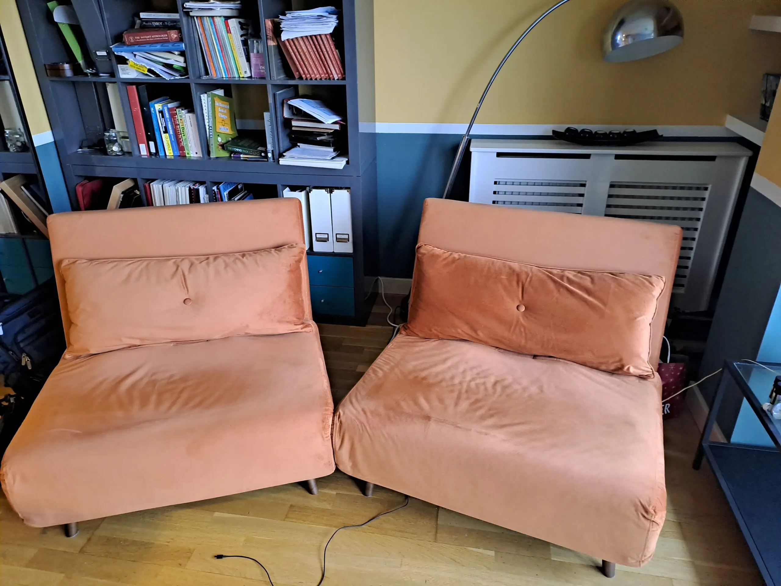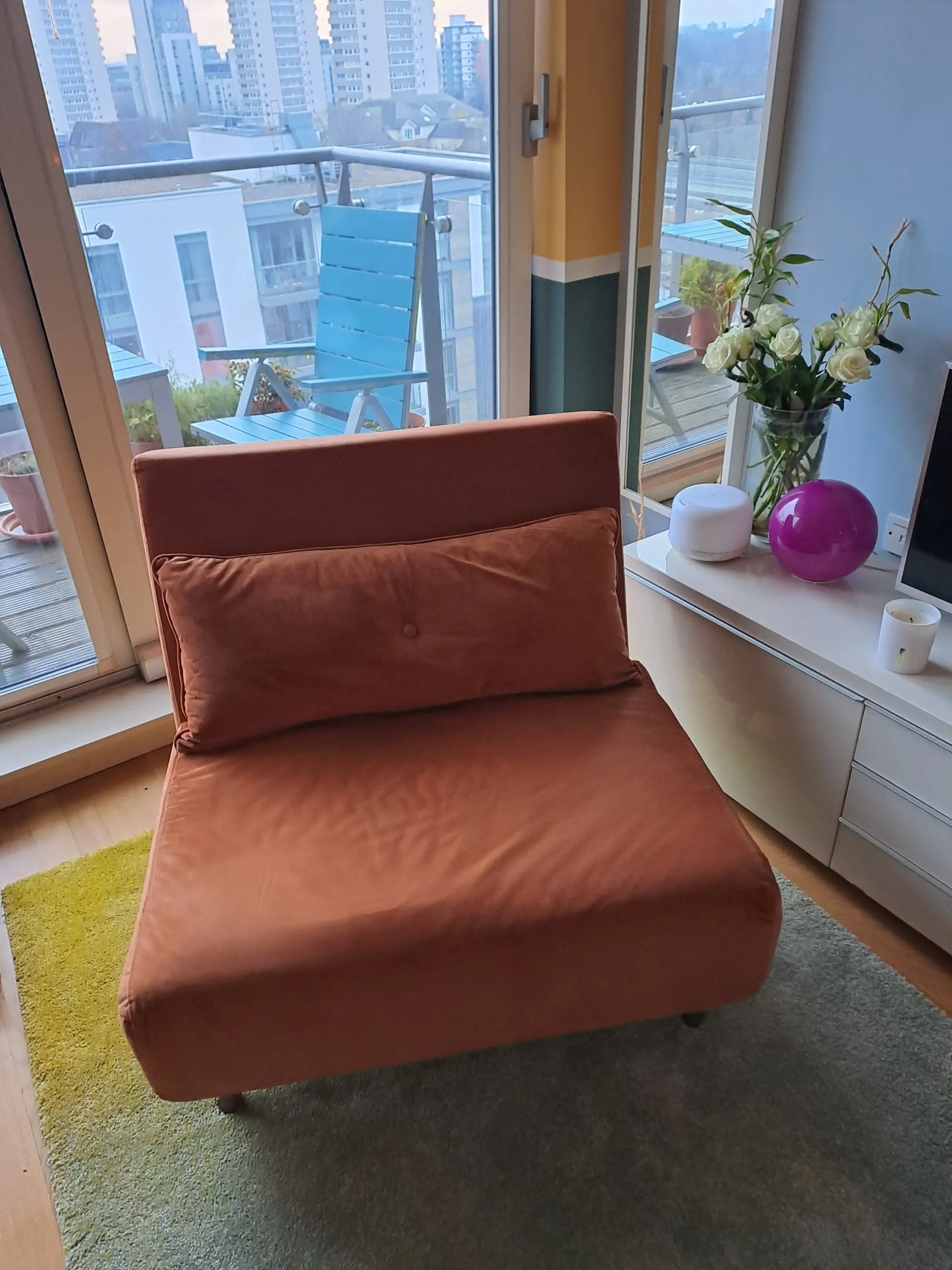 2 chairbed Habitat Roma – orange with cushions in good conditions