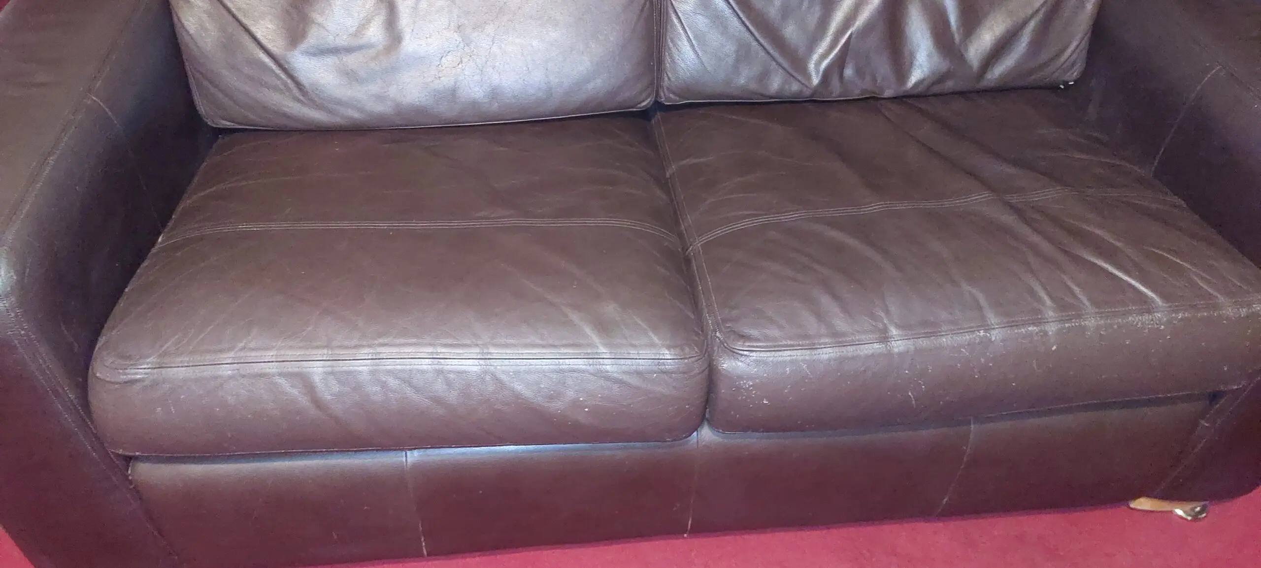 There are a few marks /wear and tear but nothing significantly noticeable. (main defect is on back of sofa small tear last image). previous two images from the underside only of cushion) slight wear in other areas but hardly noticeable as shown in pics and video.