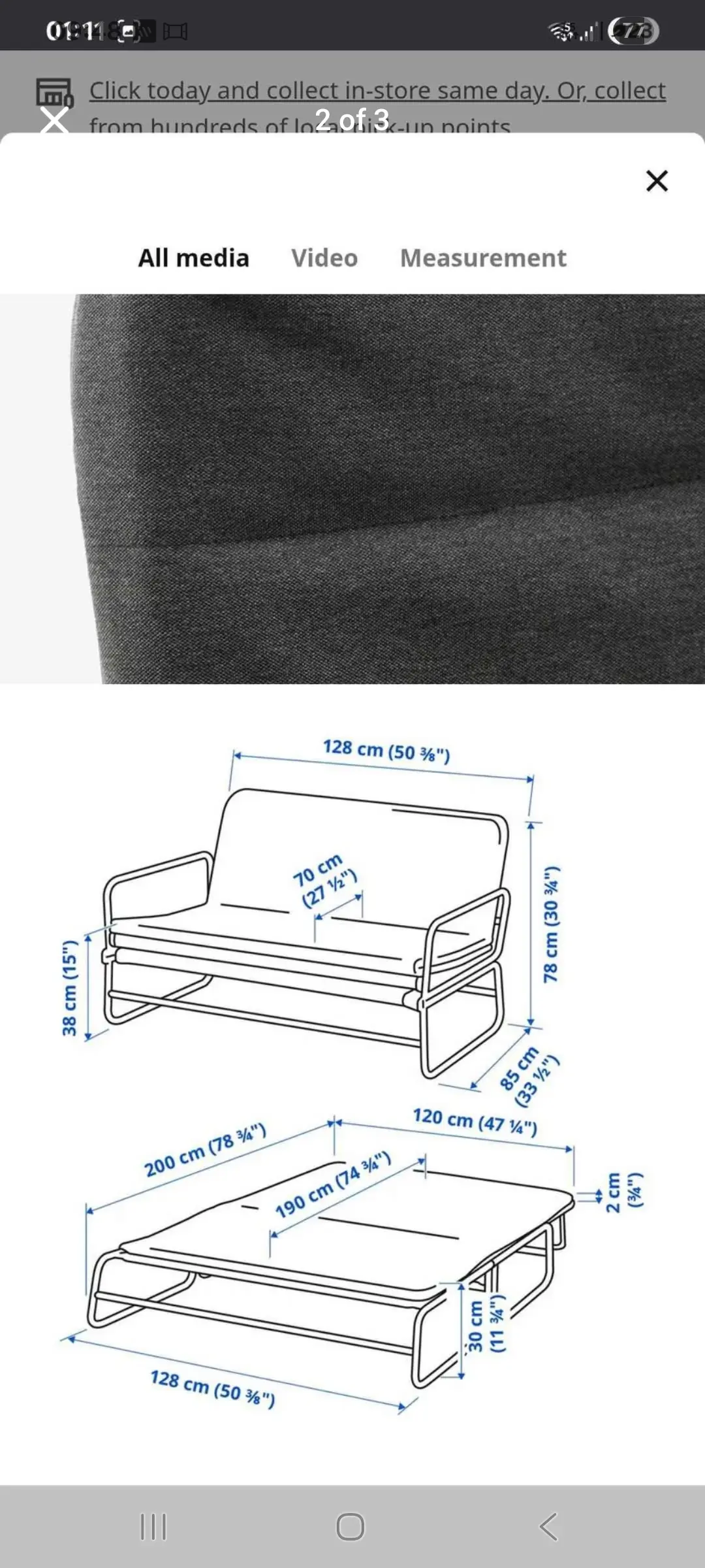 Very good condition sofa bed used only for few days . It is a popular sofa bed and can be used in garden or anywhere else outside , multifunctional very sturdy and strong.