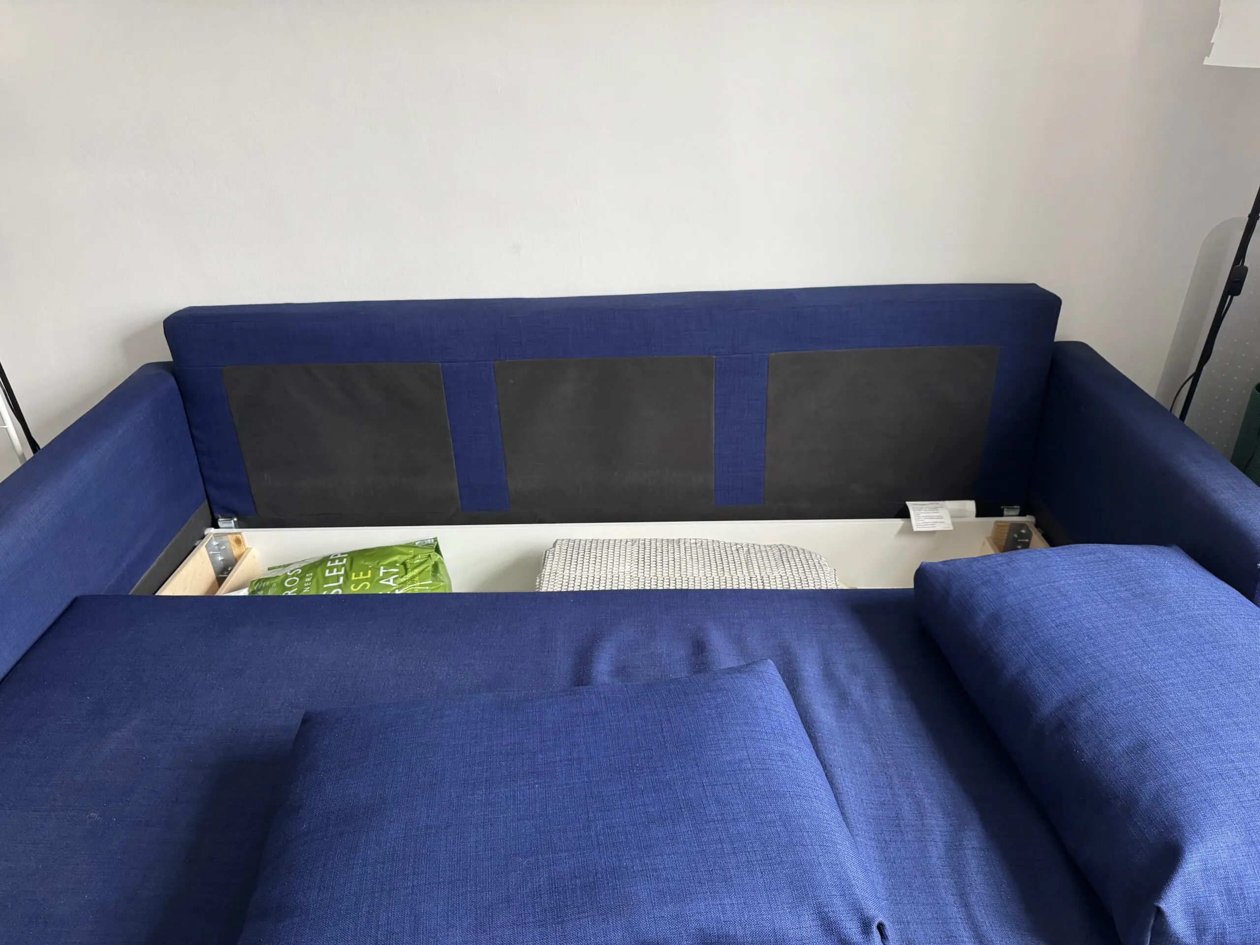 It’s a 1 year old sofa bed with storage. 3 seater which opens out into a double bed and it’s super comfortable. The only reason I am selling it is because I’m moving back home. I am still using the sofa bed and am very sad to part with it ! But all good things come to an end!