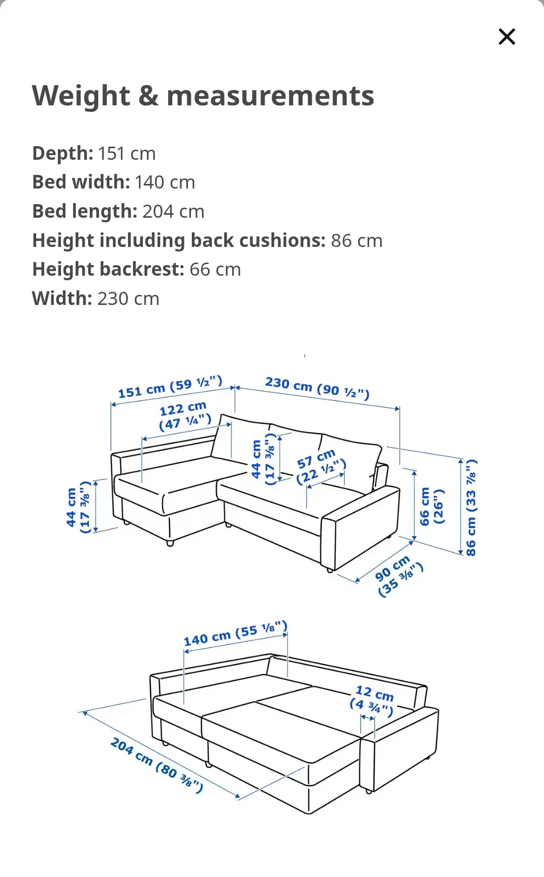 Dimensions can be found in the last photo / ikea website.