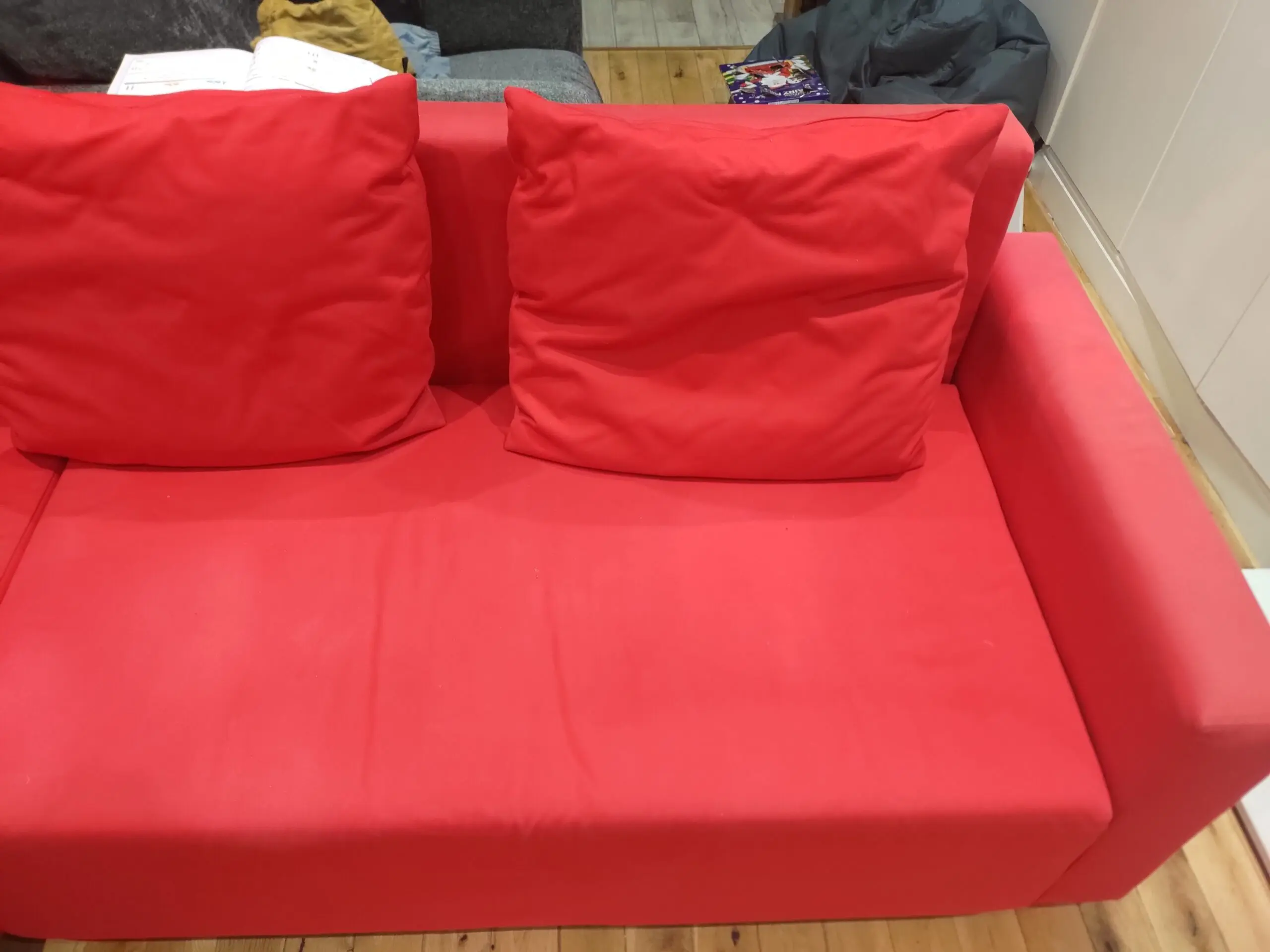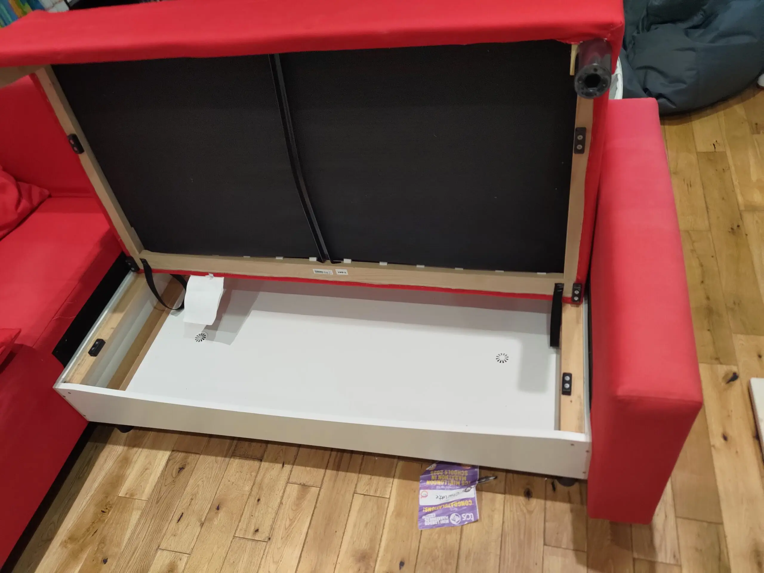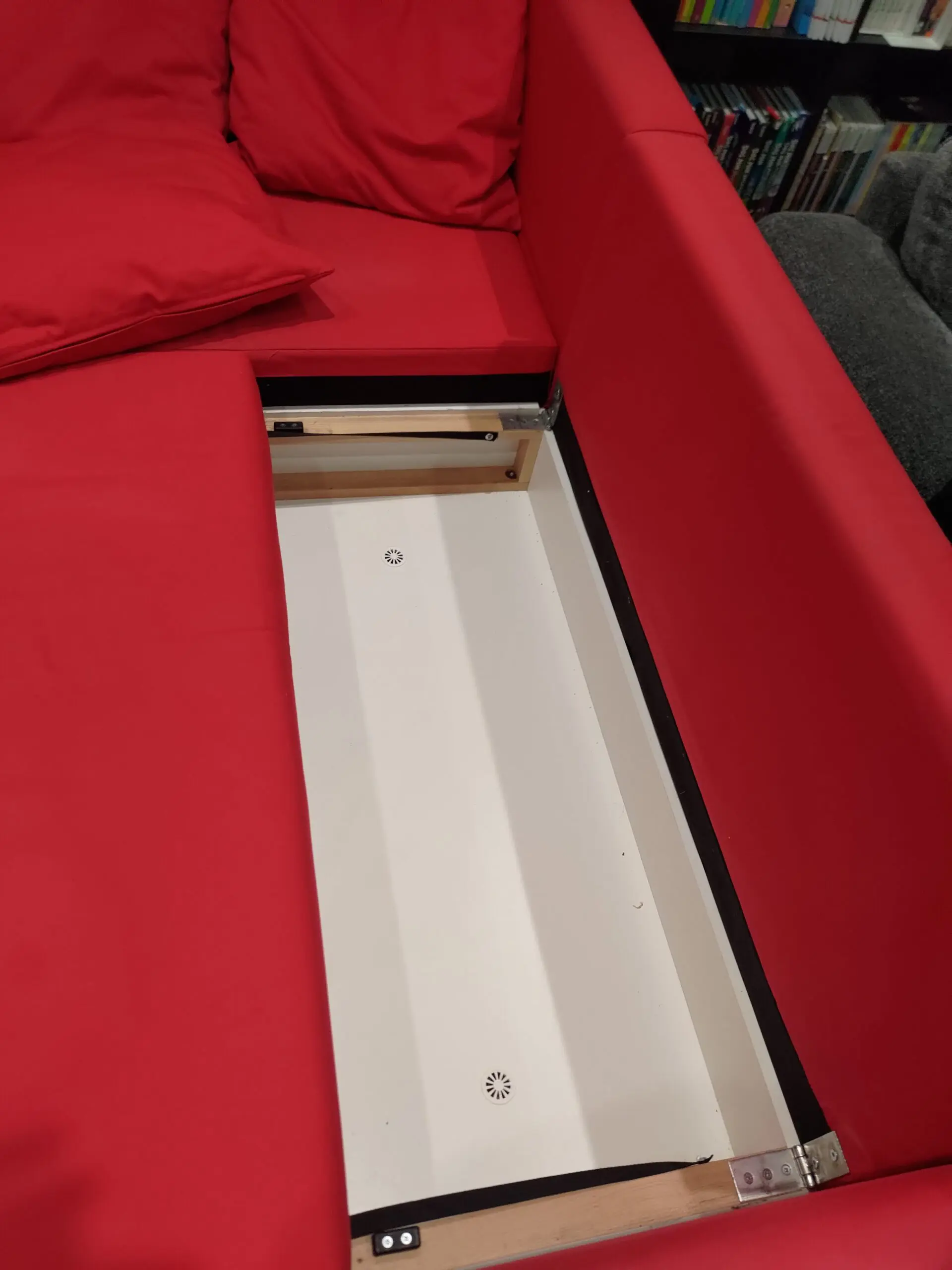 Storage area under the sofa allows keeping the the needs for sleepovers.