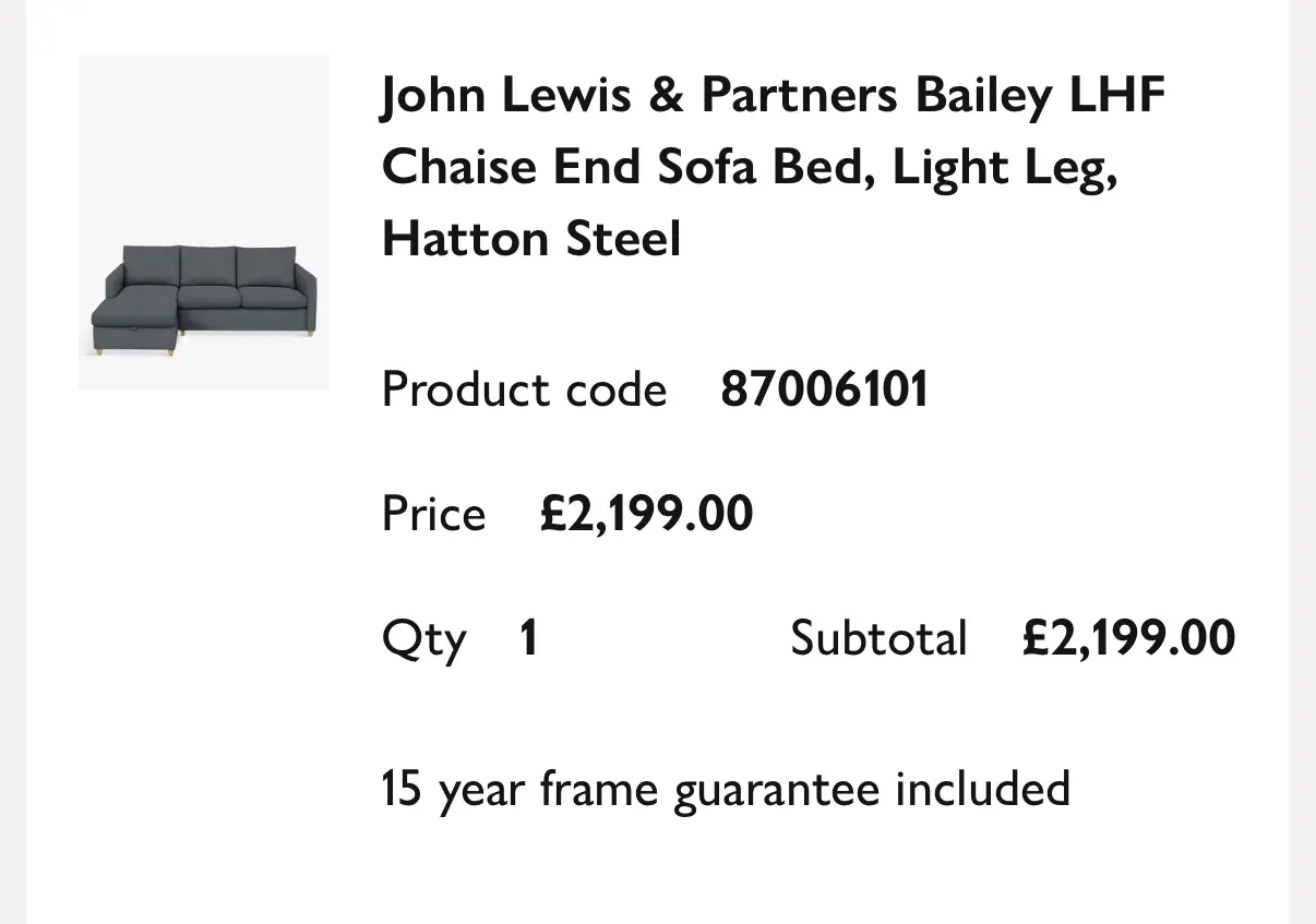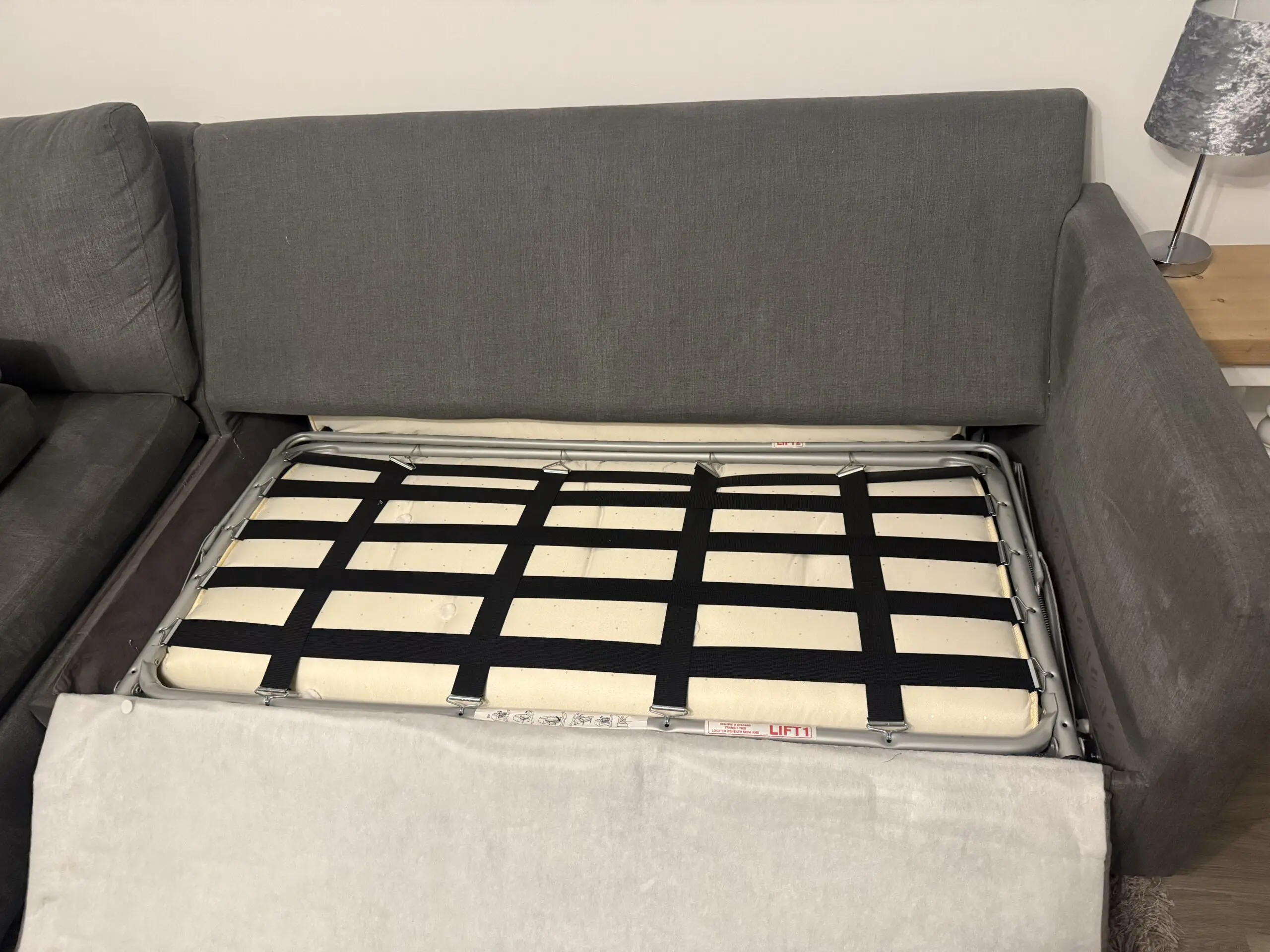 Light use, like new John Lewis 5 seater Bailey sofa with double sofa bed, chaise and under seat storage. Sofa bed only used 4 times – looks brand new.