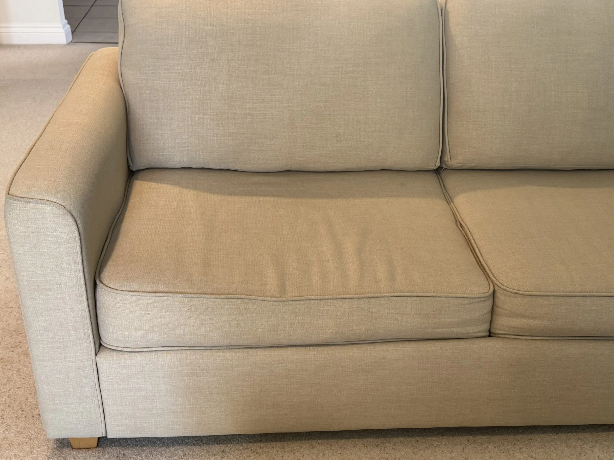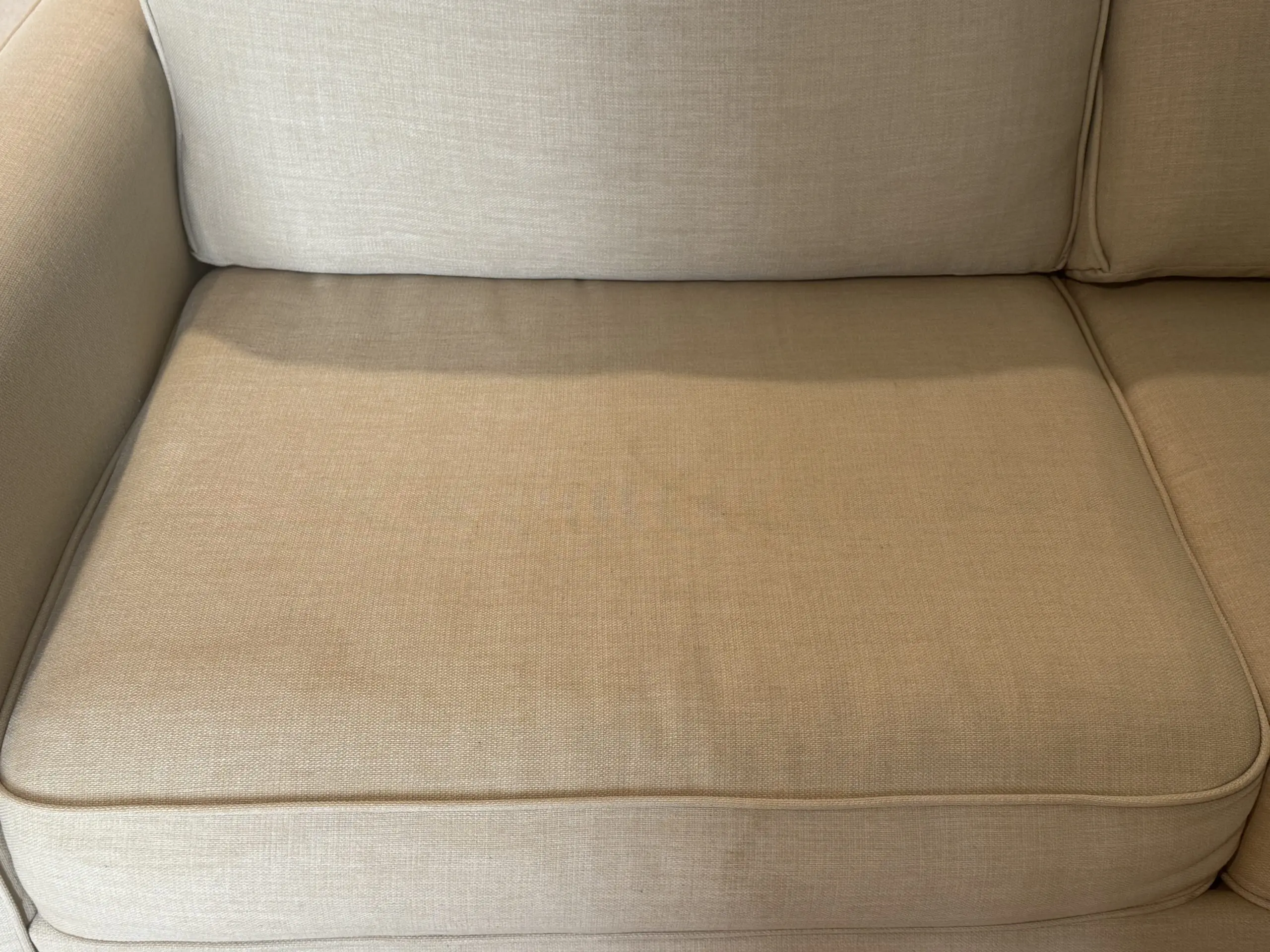 Some slight discolouration on one side of cushion. Washable.