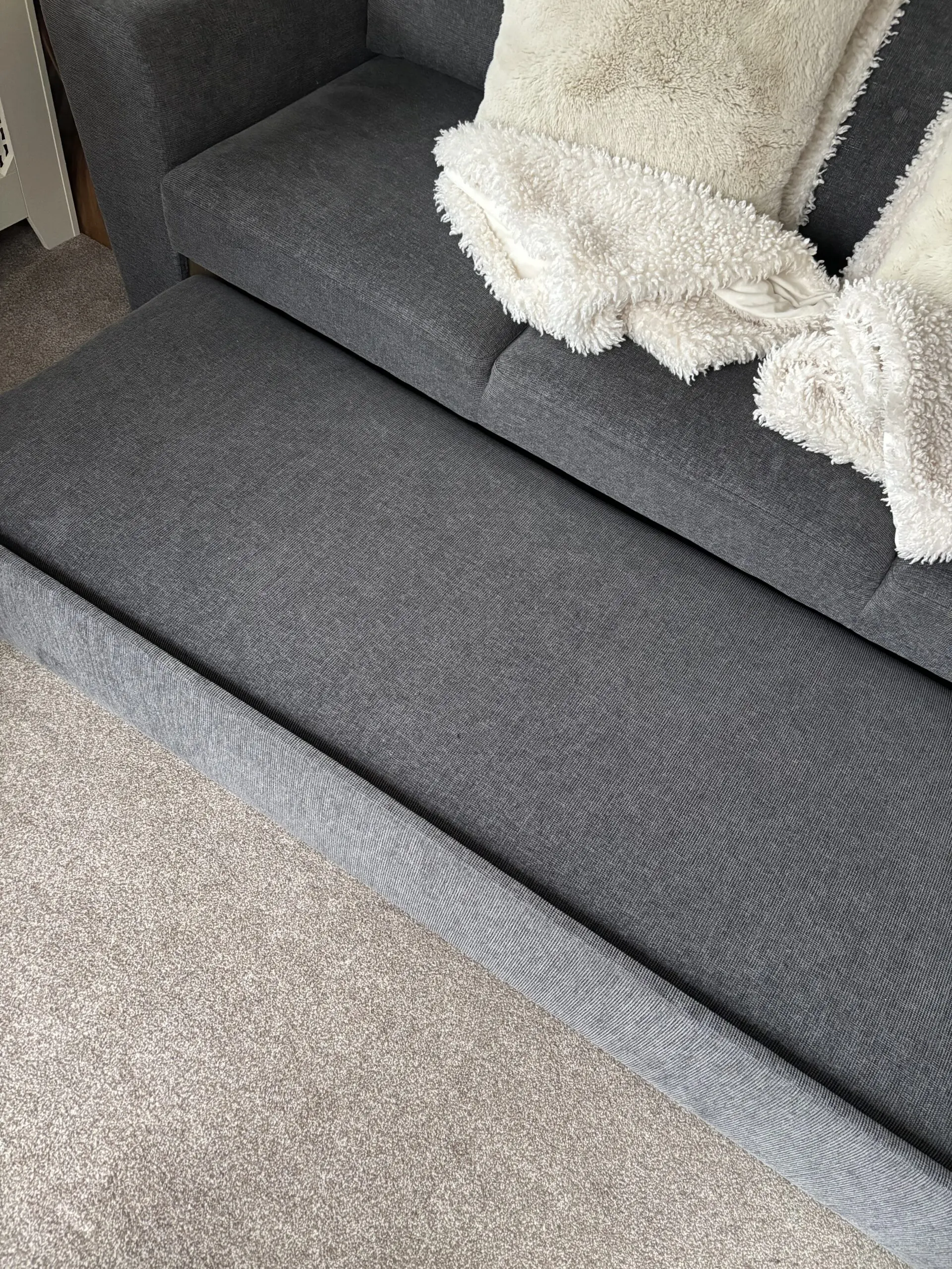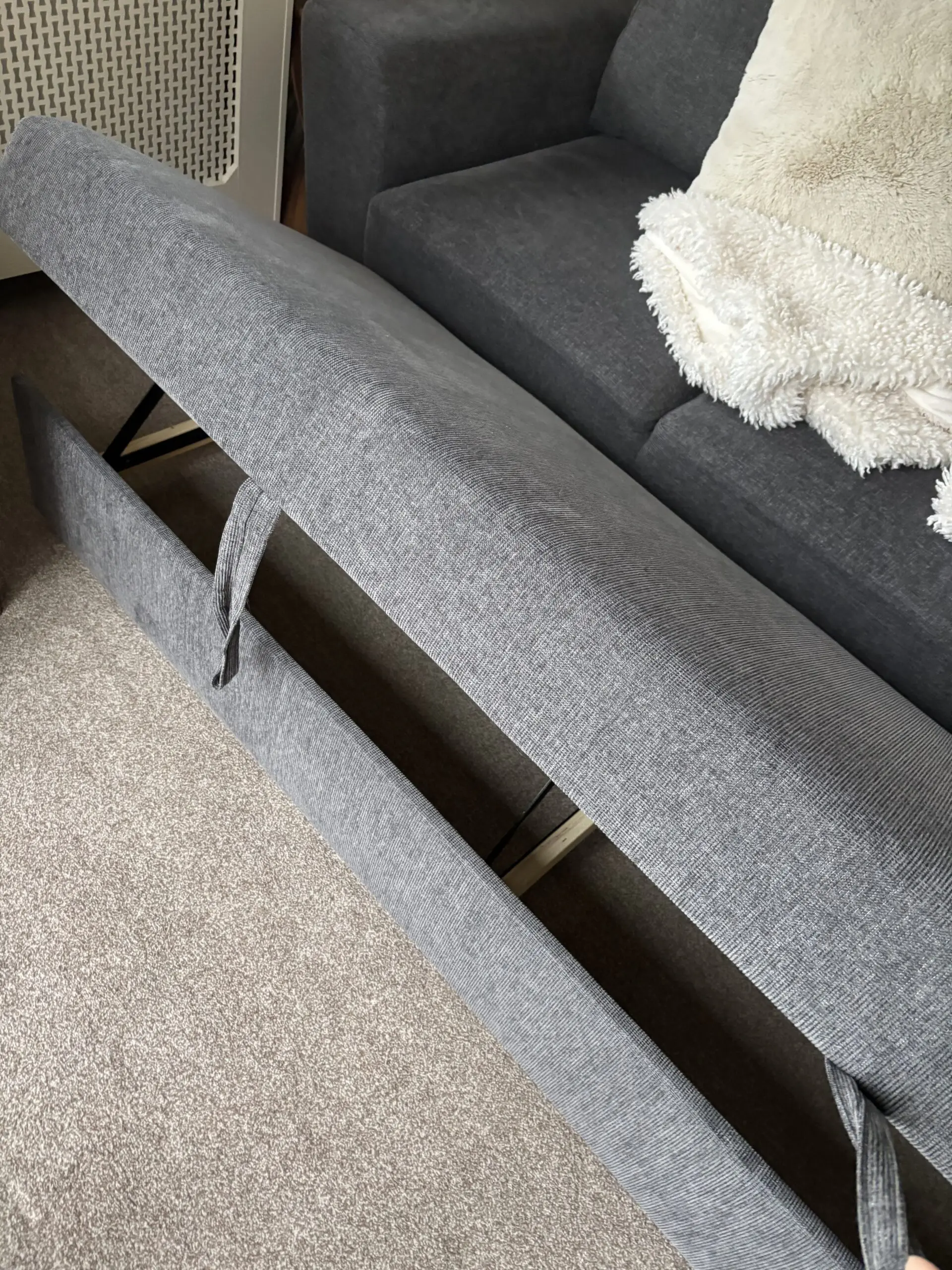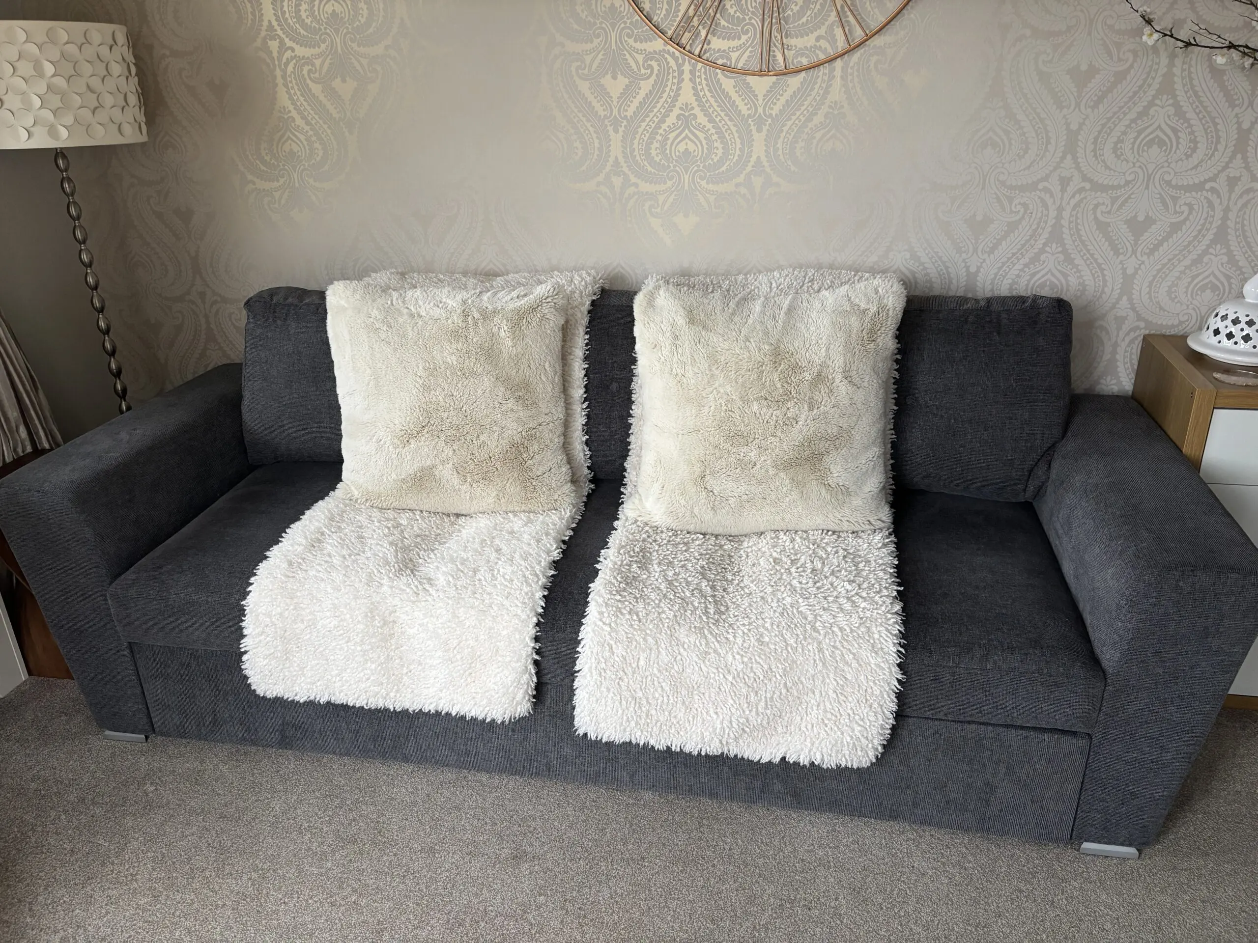 3-seater sofa in fabric. Seat cushion with pocket springs and foam padding. Back cushion in foam. Sleeping area 140×200 cm. W240 x H86 x D88 cm