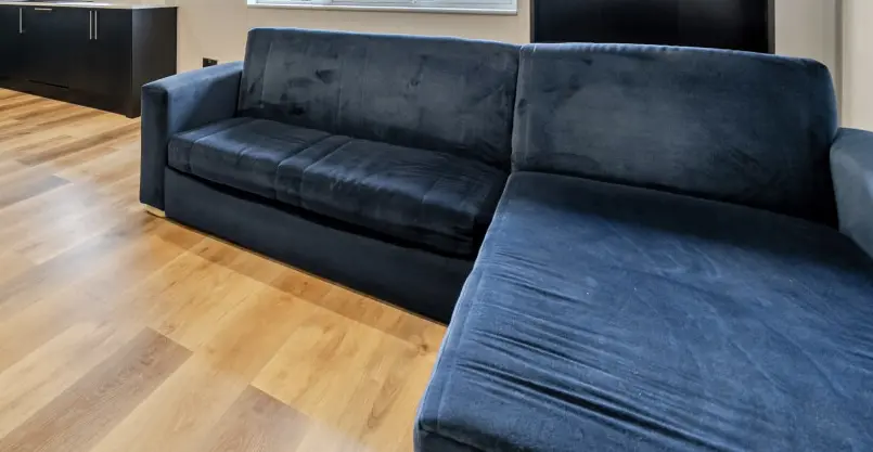 Blue indigo velvet material which is Stain Resistant Cotton Velvet.