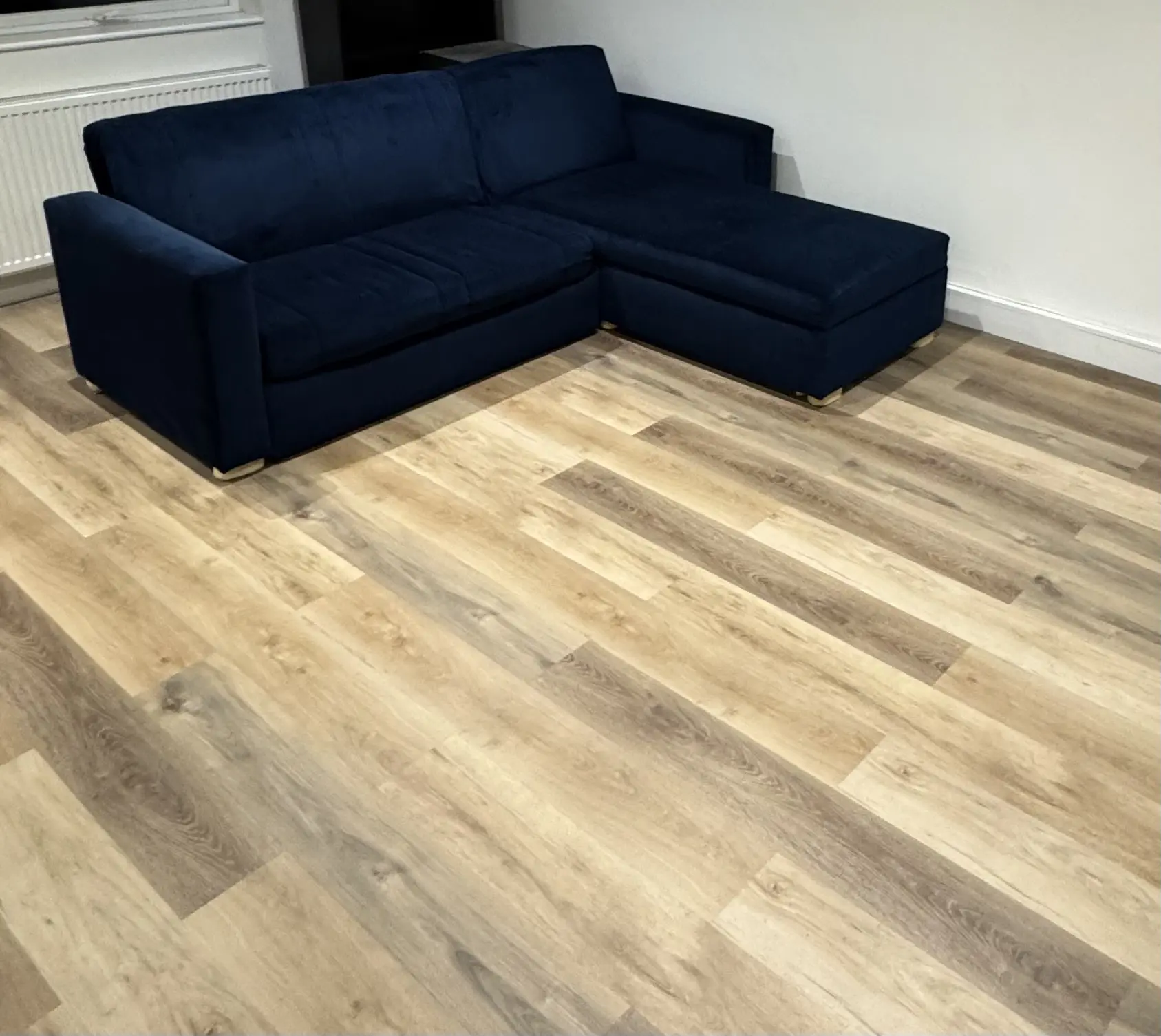 L shaped sofa that is also a sofa bed- the part on the left hand side pulls out into a full sofa bed.