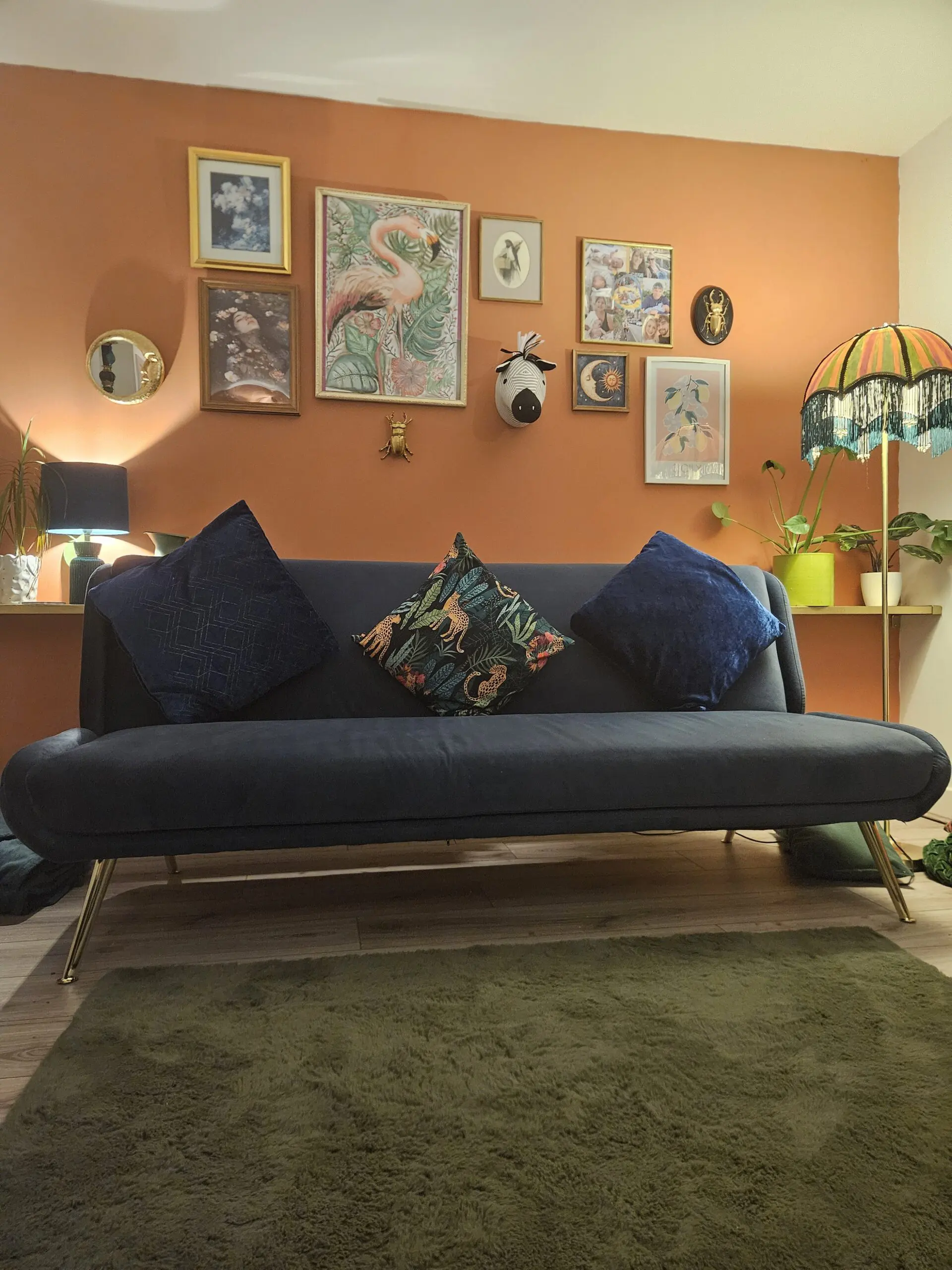 Beautiful modern design with a soft velvet finish and four gold legs. It easily converts in to a double bed, make it ideal for guests, small spaces, or a stylish living room setup.