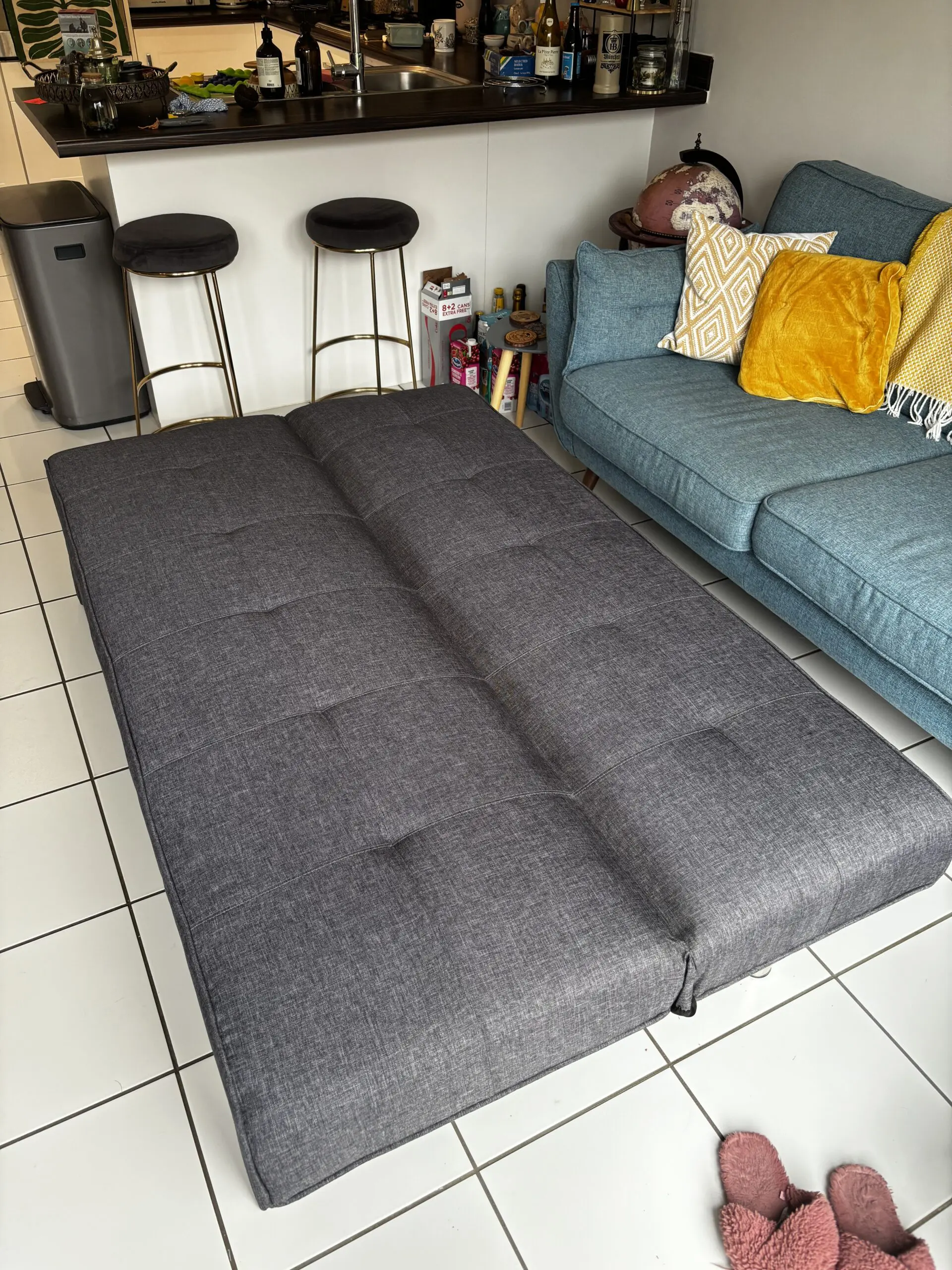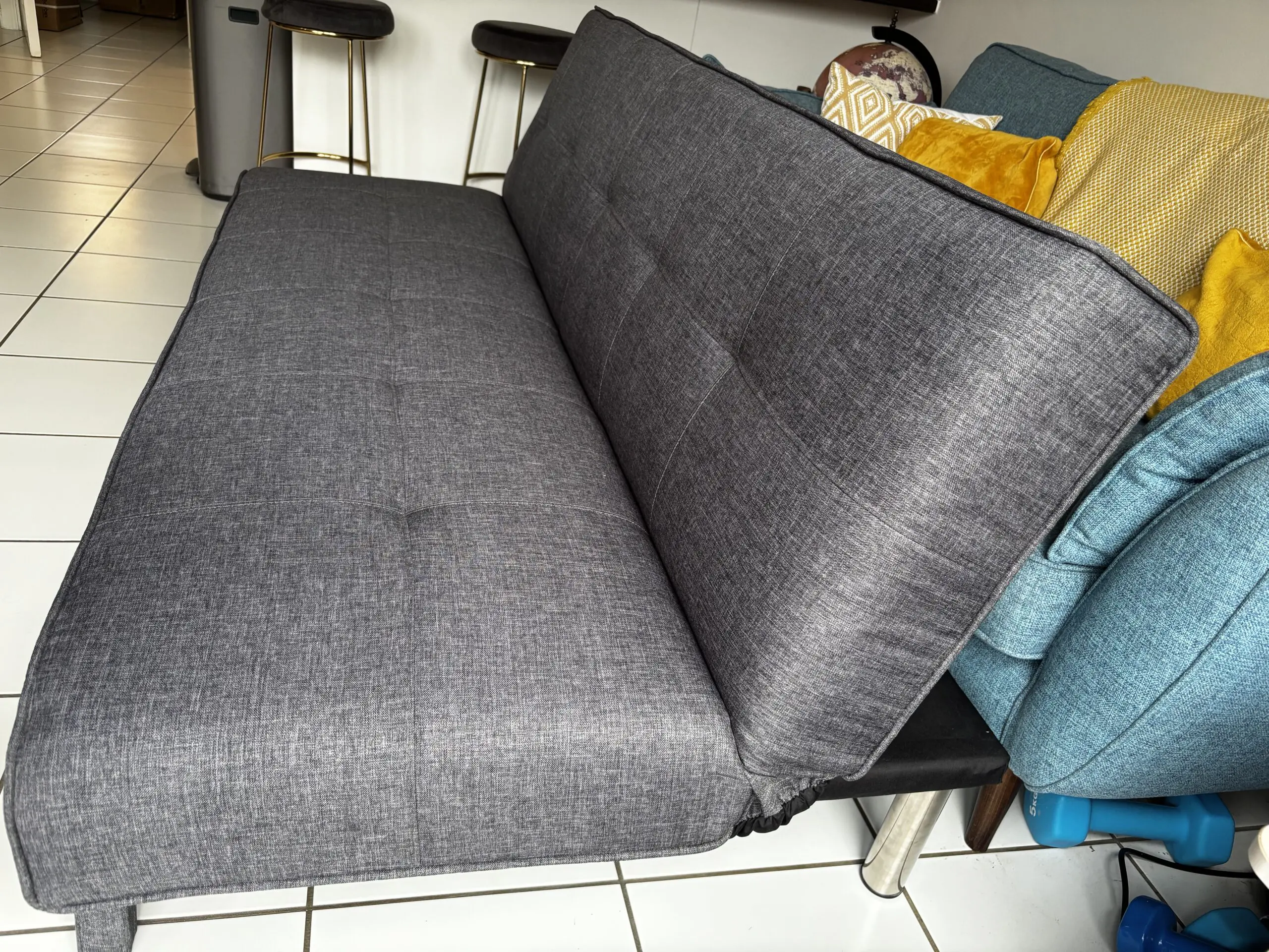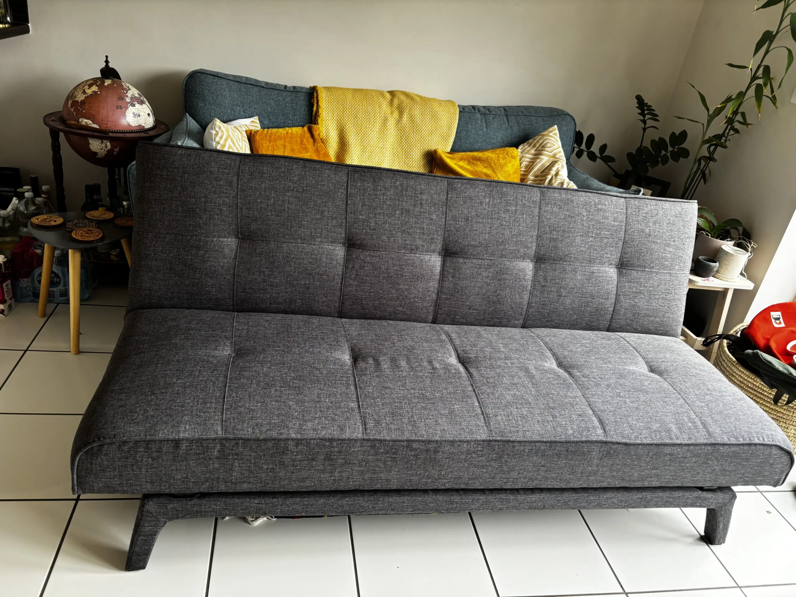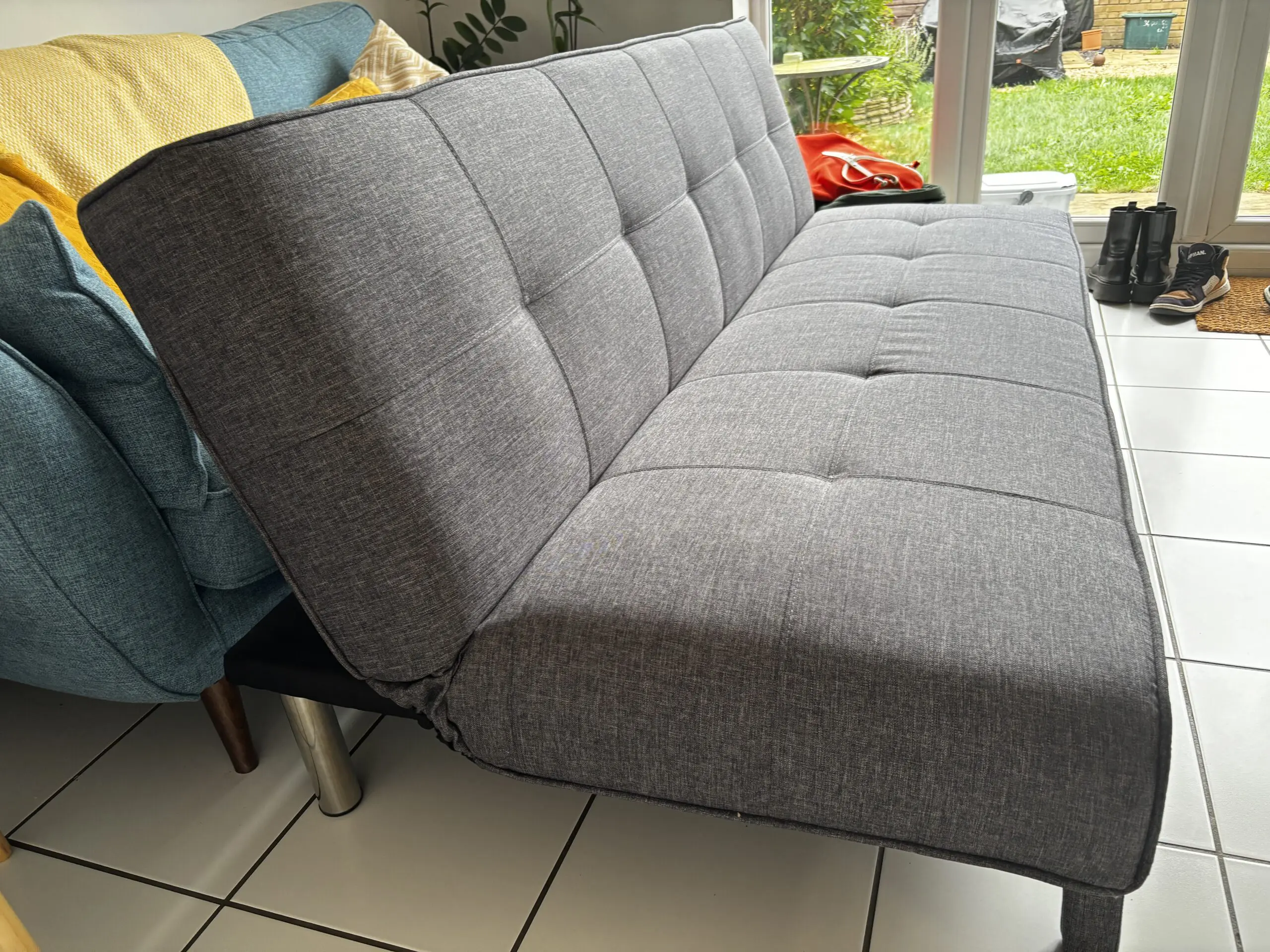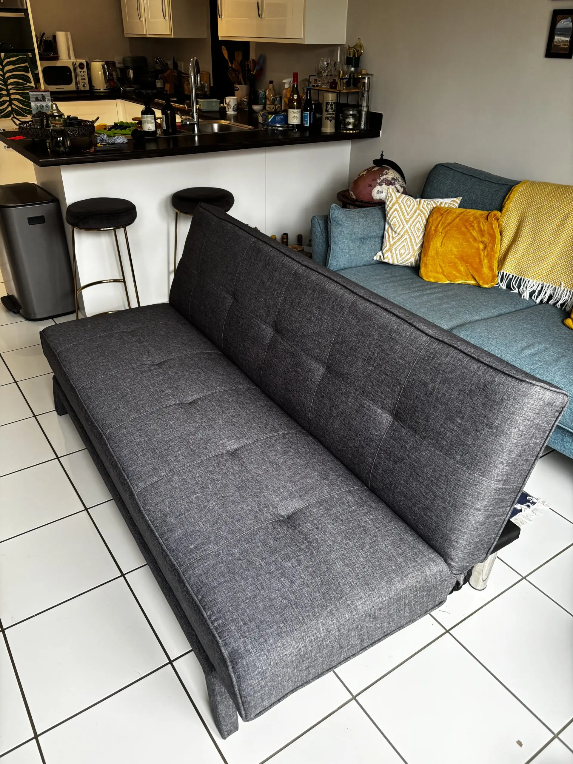 Made graphite grey sofa bed. It is a two seater sofa when not folded out or a double sofa bed. It is in excellent condition and has barely been used either as a sofa or a bed!