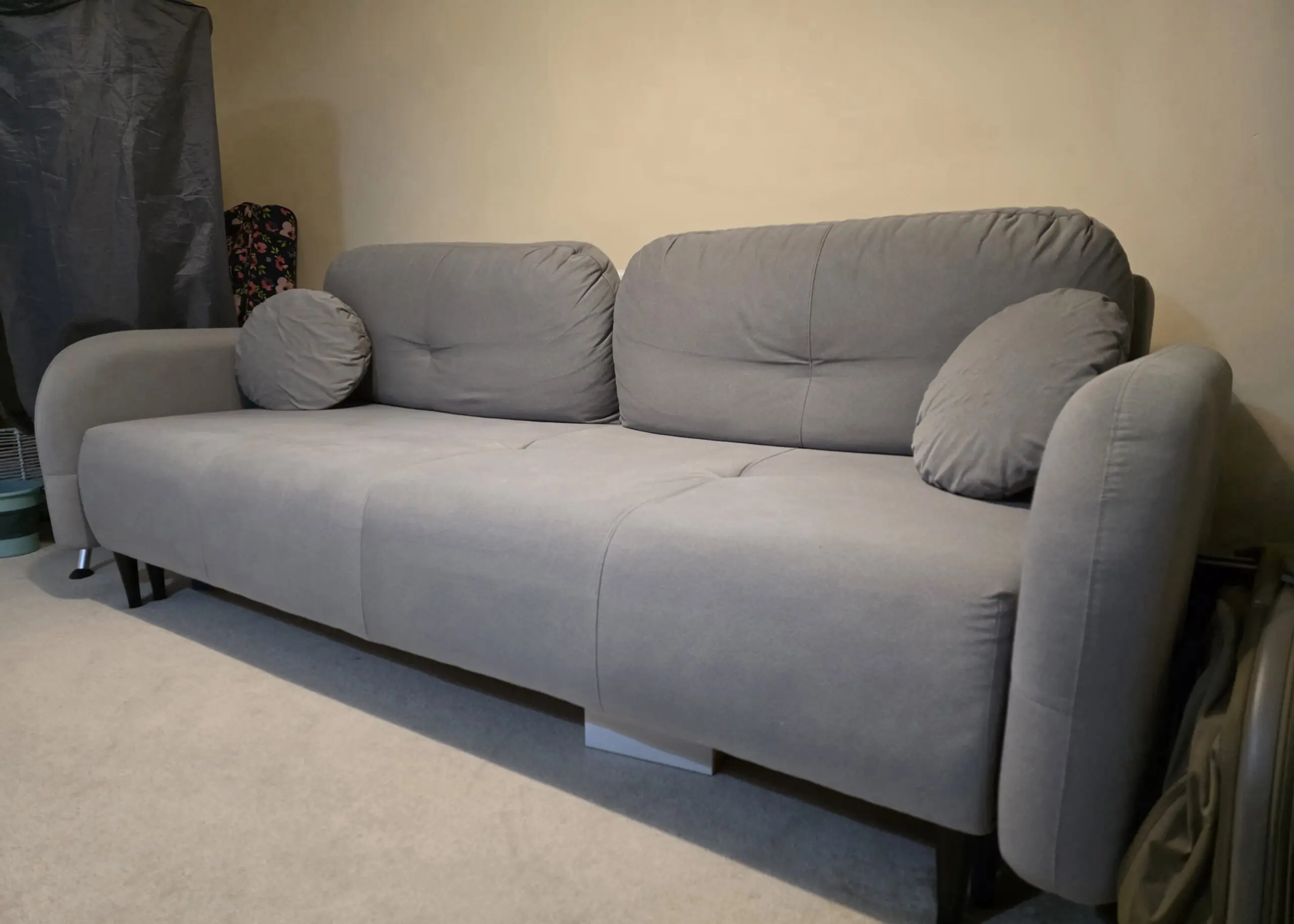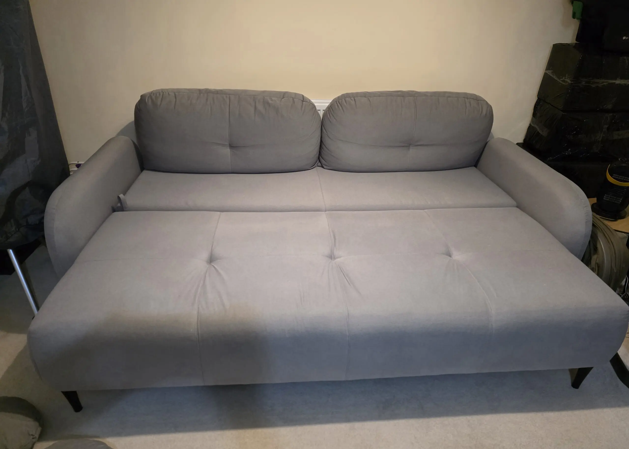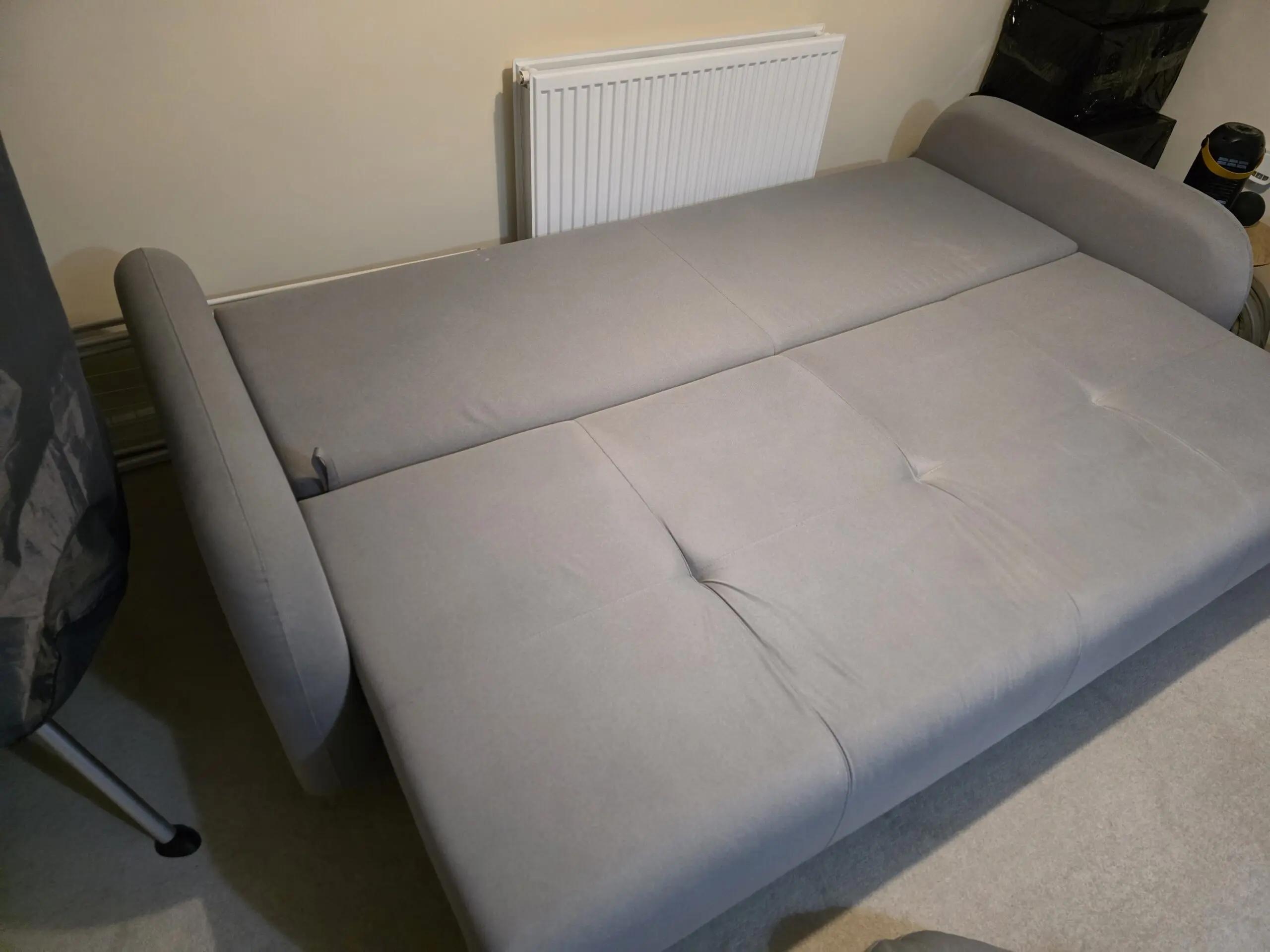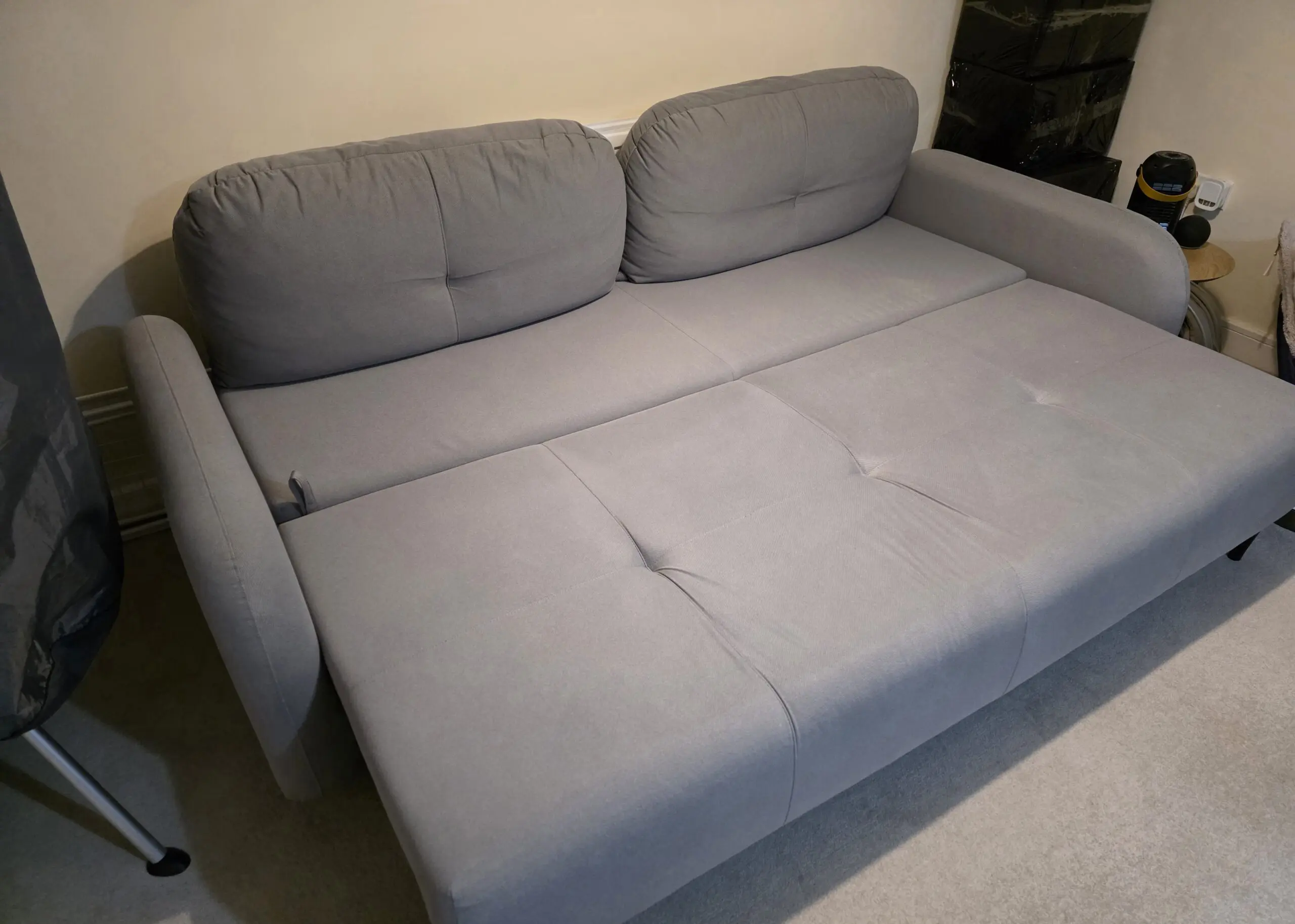 It’s a great piece if you need extra sleeping space without losing your living room. The sofa folds out smoothly into a full sleeping area, and there’s storage underneath for bedding. The cushions are still firm and comfortable, and the fabric is in very good condition.