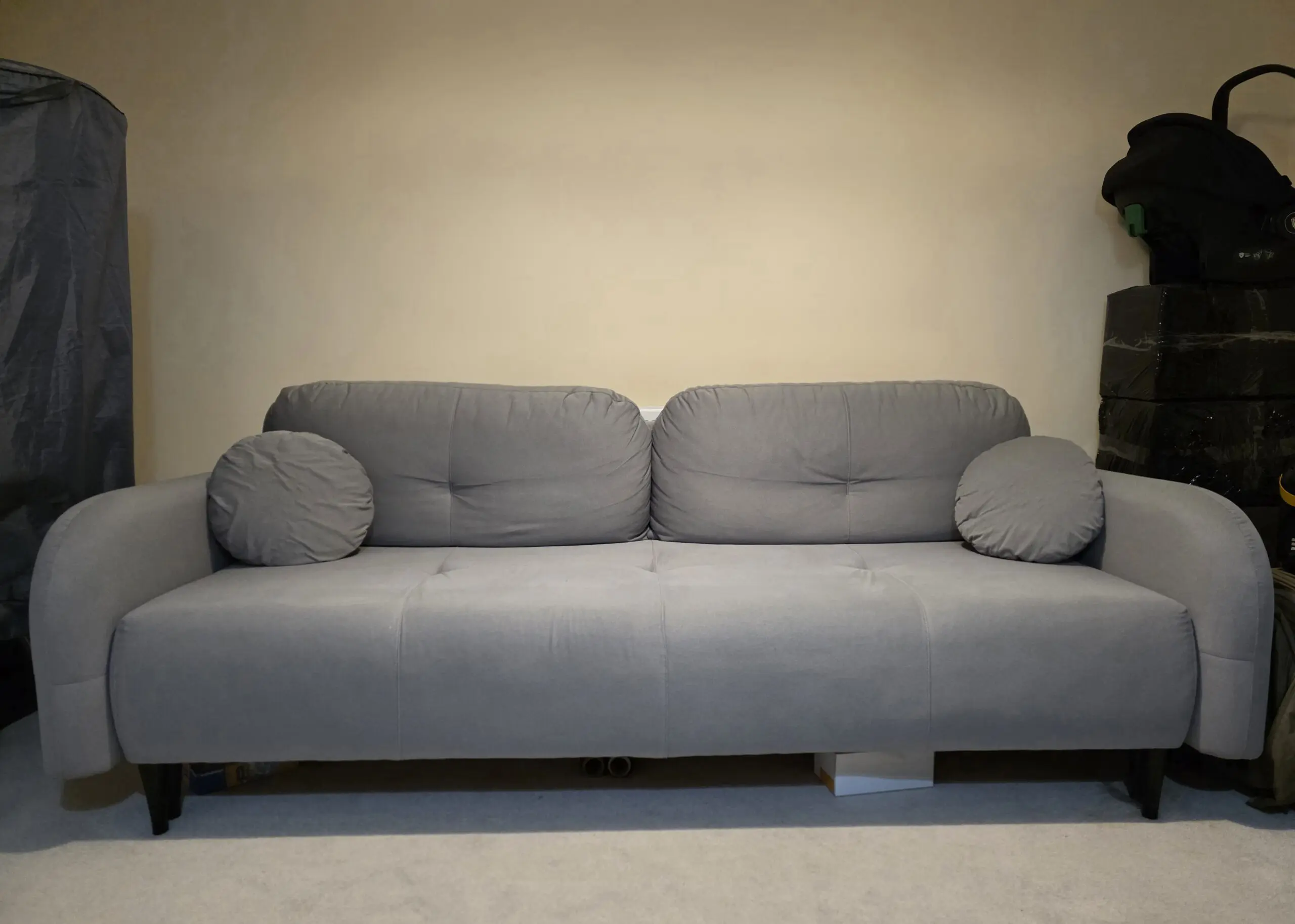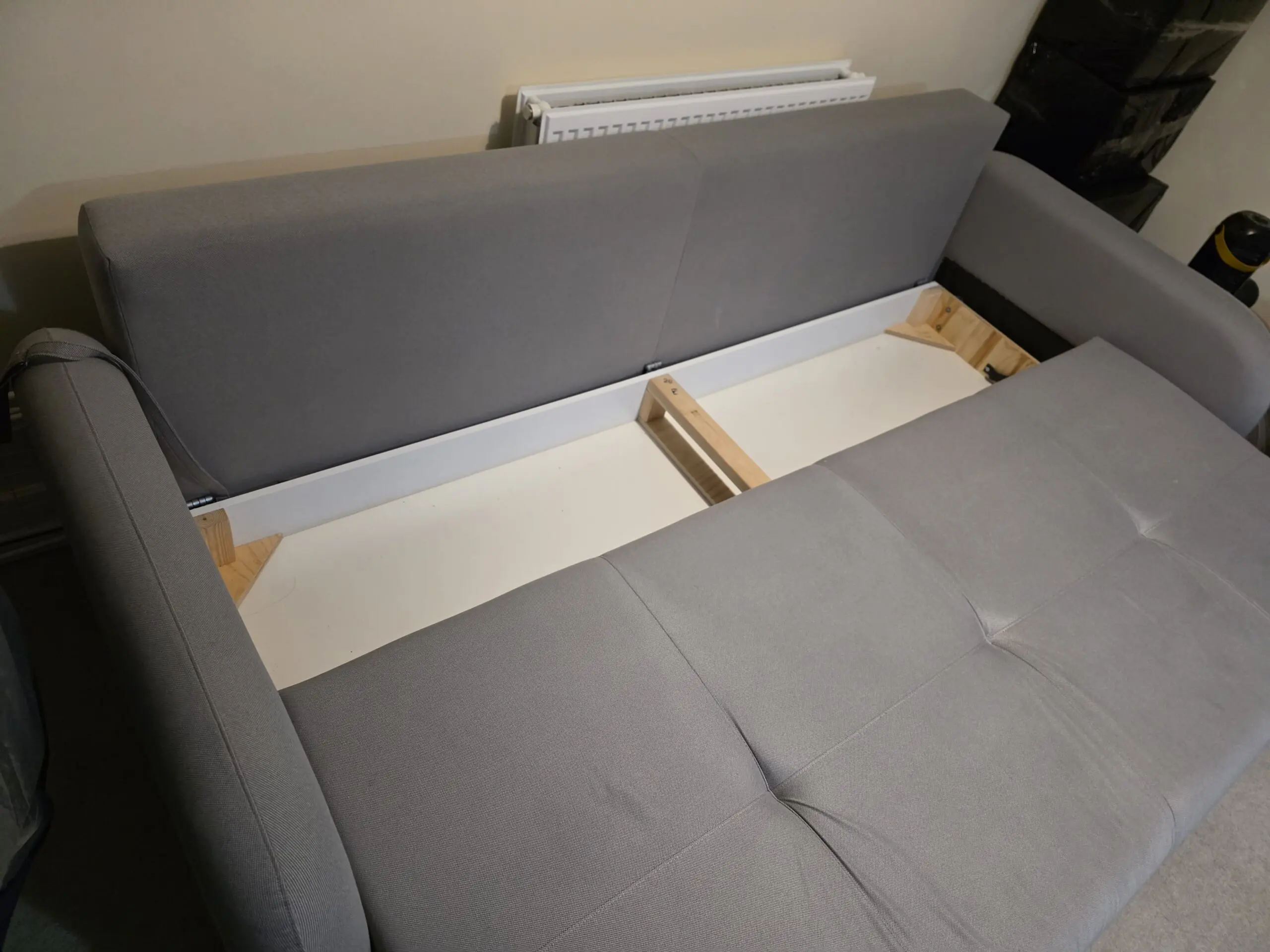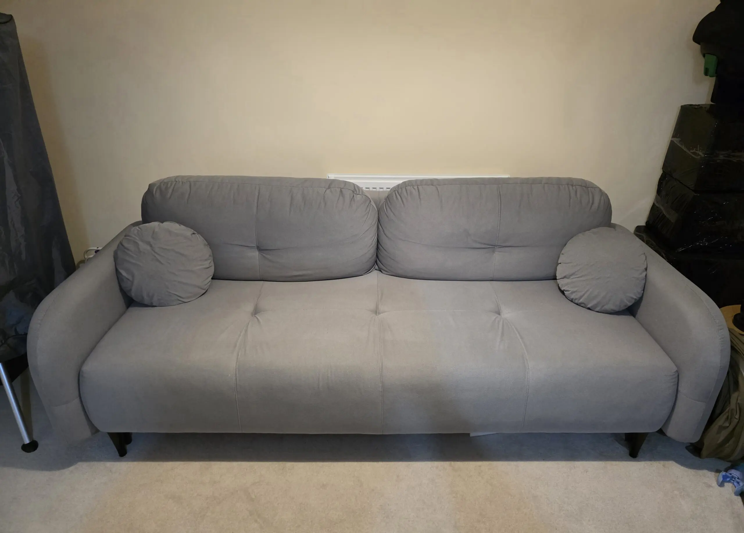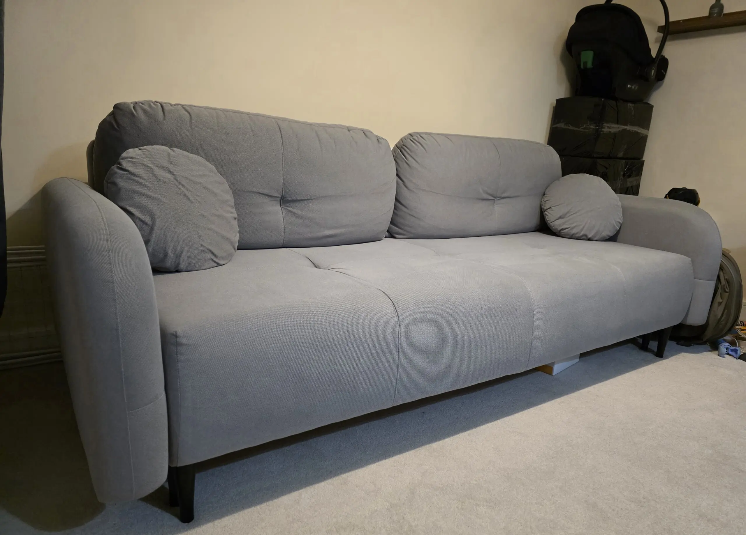 It’s a great piece if you need extra sleeping space without losing your living room. The sofa folds out smoothly into a full sleeping area, and there’s storage underneath for bedding. The cushions are still firm and comfortable, and the fabric is in very good condition.