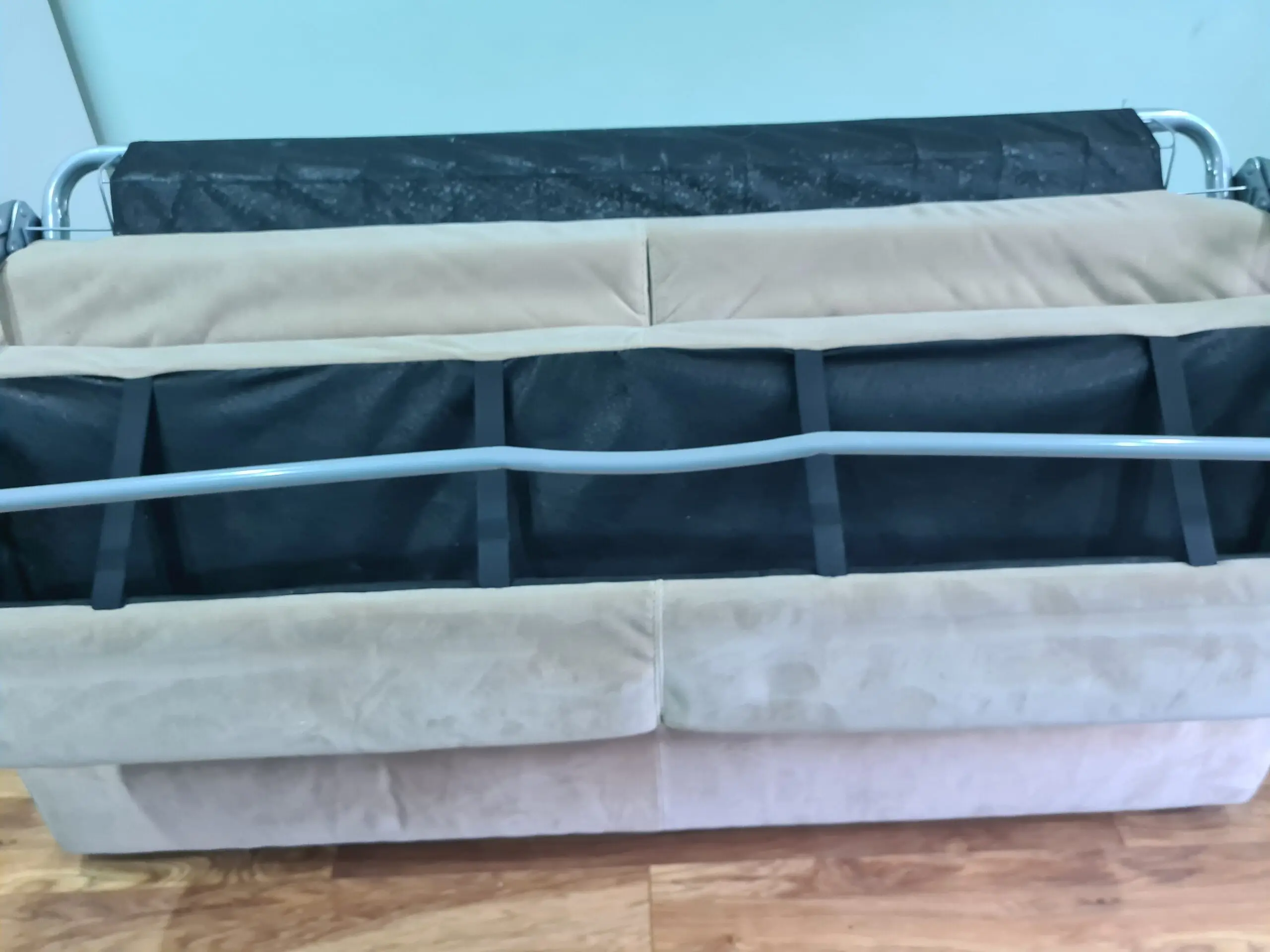 When opened – Length 205cm and width 190cm when open. Double bed size 140cm mattress