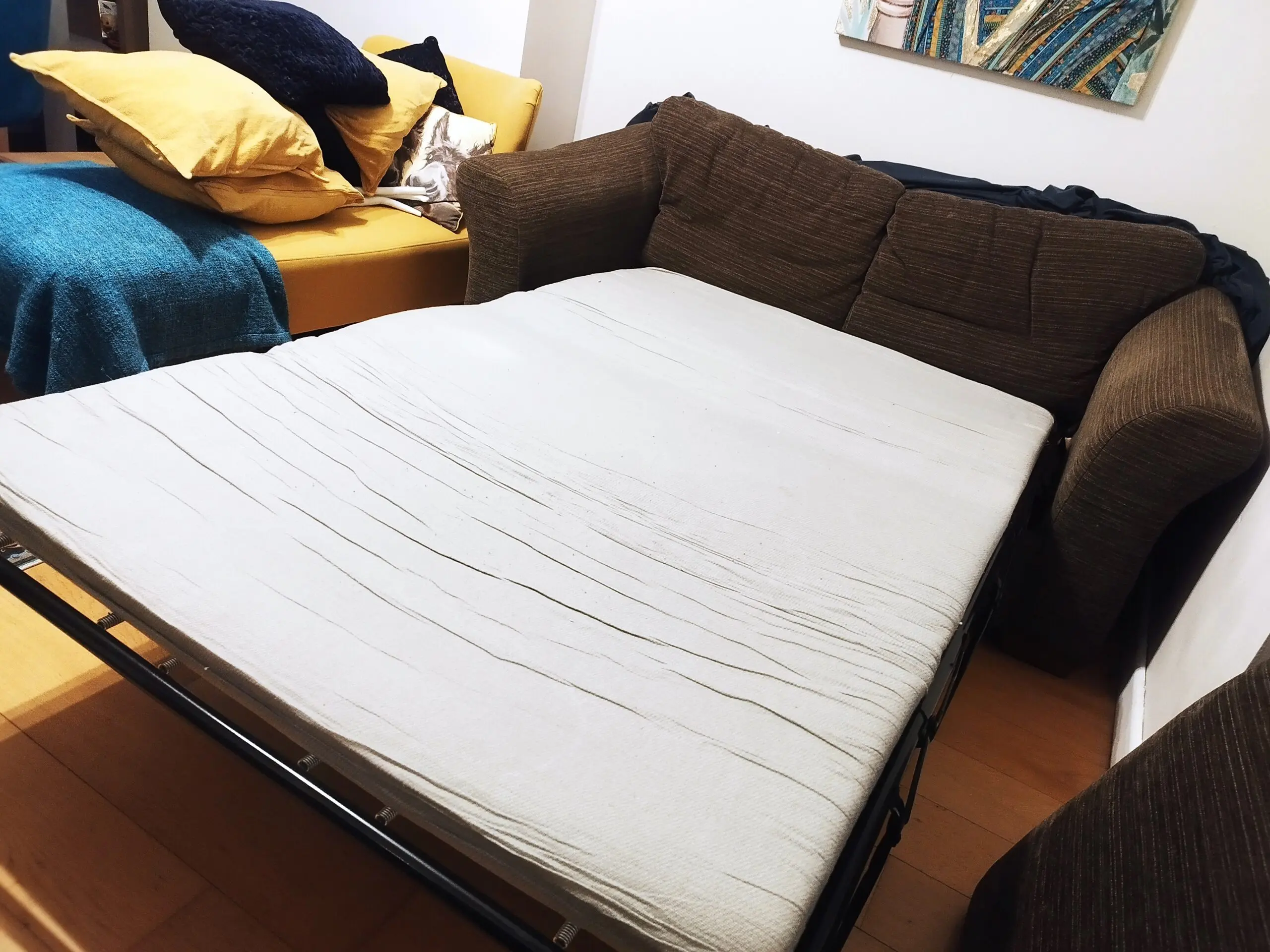 Can come with a blue sofa cover and pillows (three yellow and two blue) included in the price.