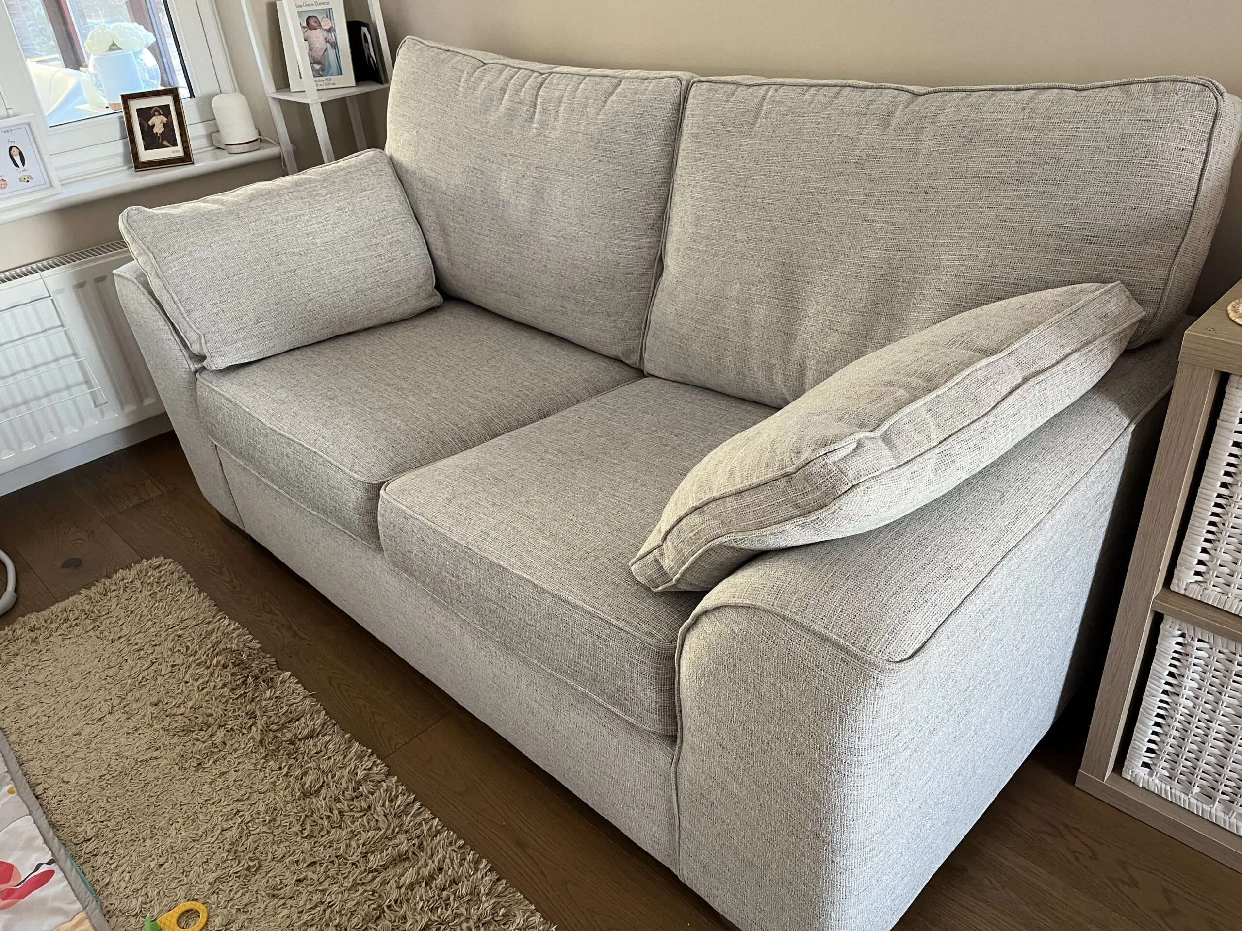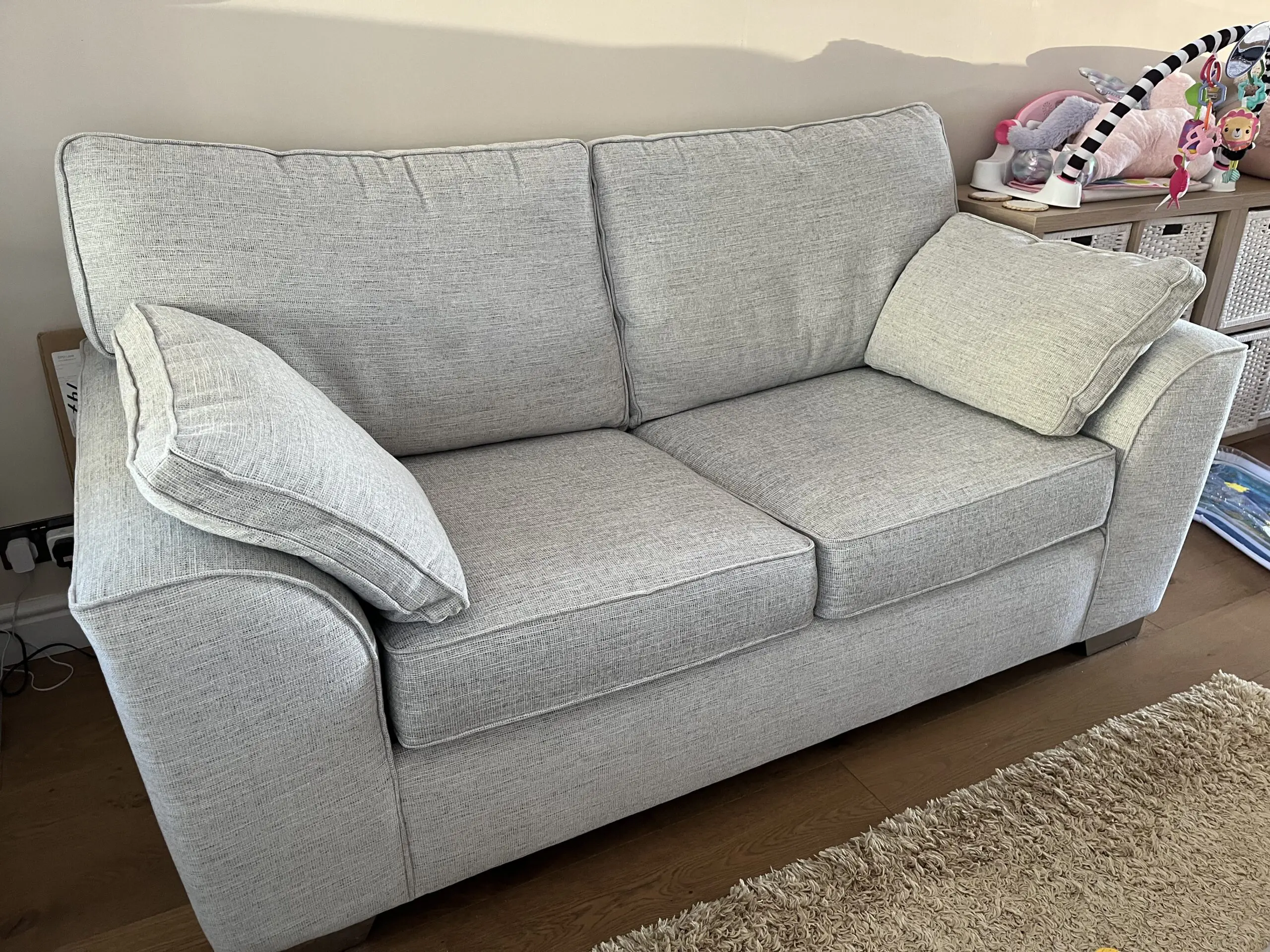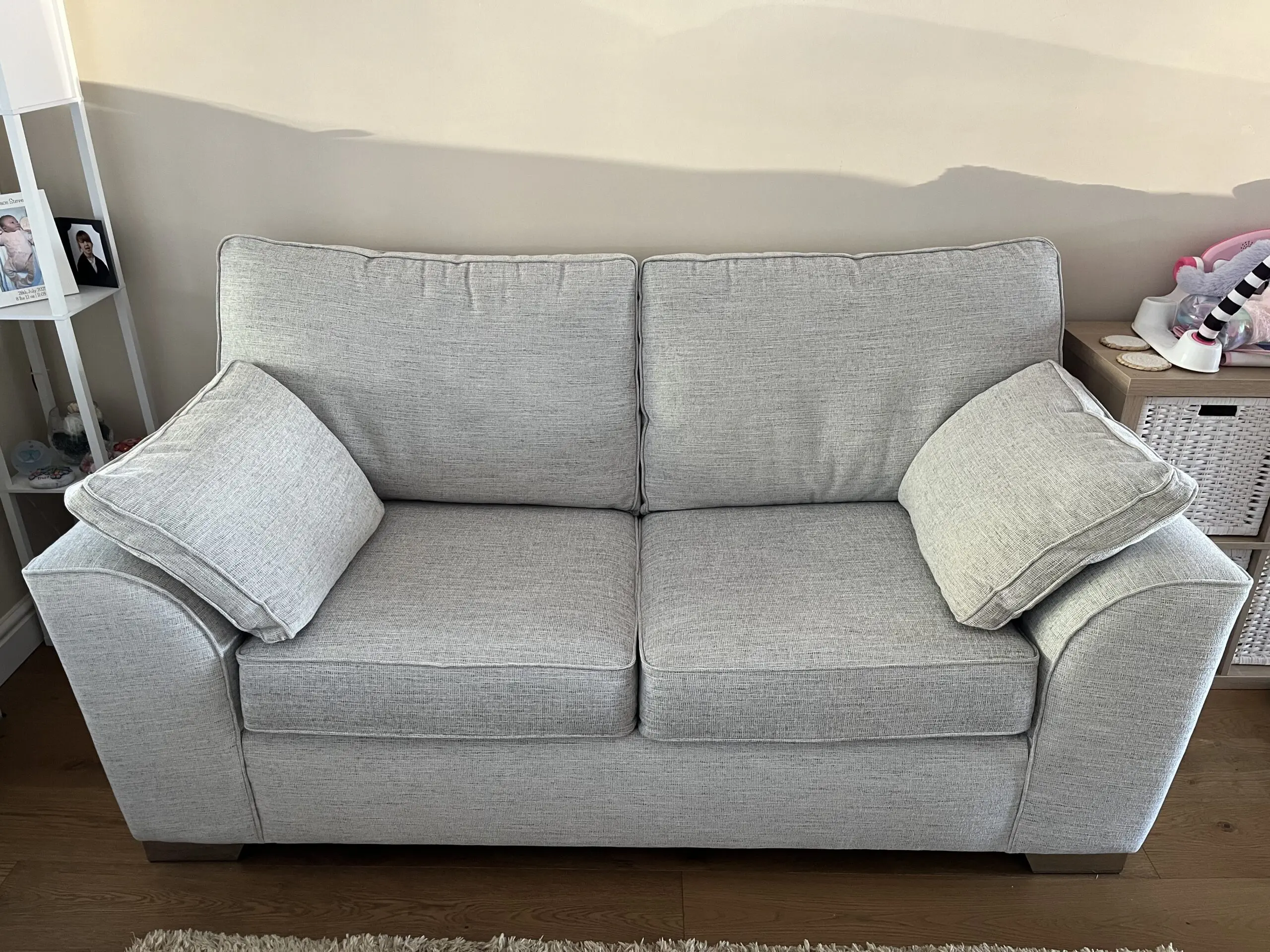 Sofa and sofa bed in perfect condition. Sofa located in spare room and sofa bed only used once. We do have a small hypoallergenic, non molting cavapoo dog, but the sofa has always been covered with blankets, so the dog has not come into direct contact with the sofa. We also have a Stamford corner sofa set in the same colour that will shortly be listed for sale.
