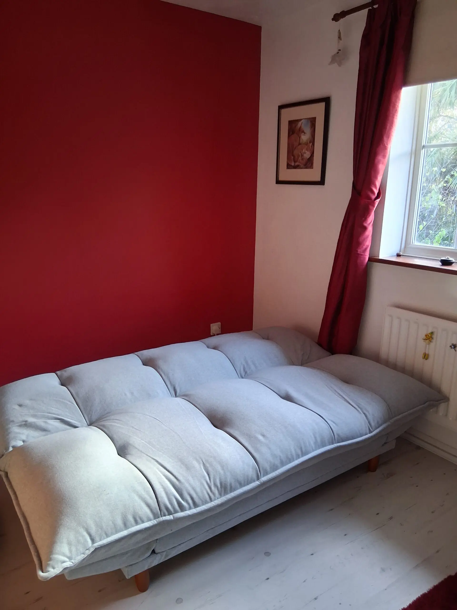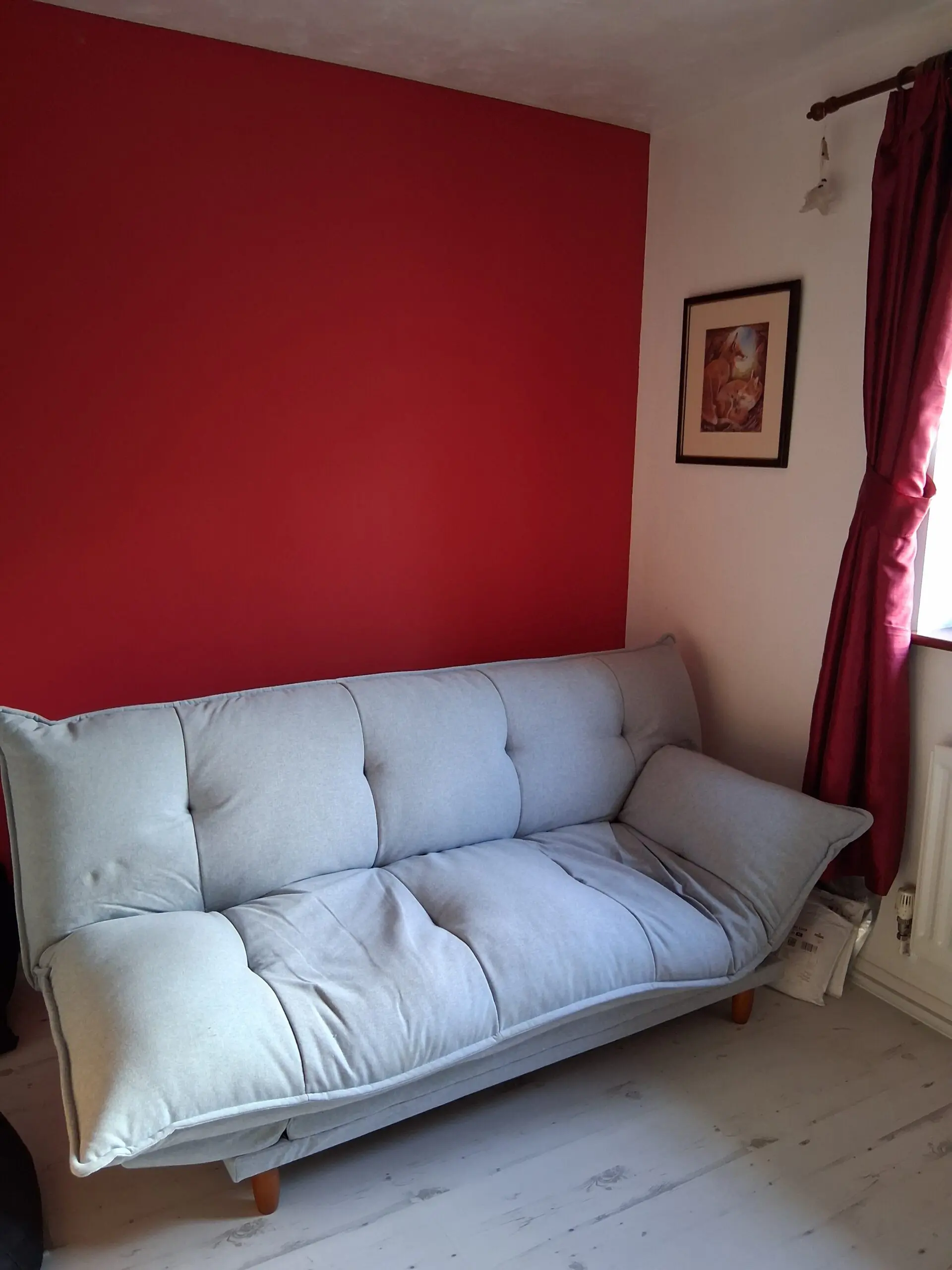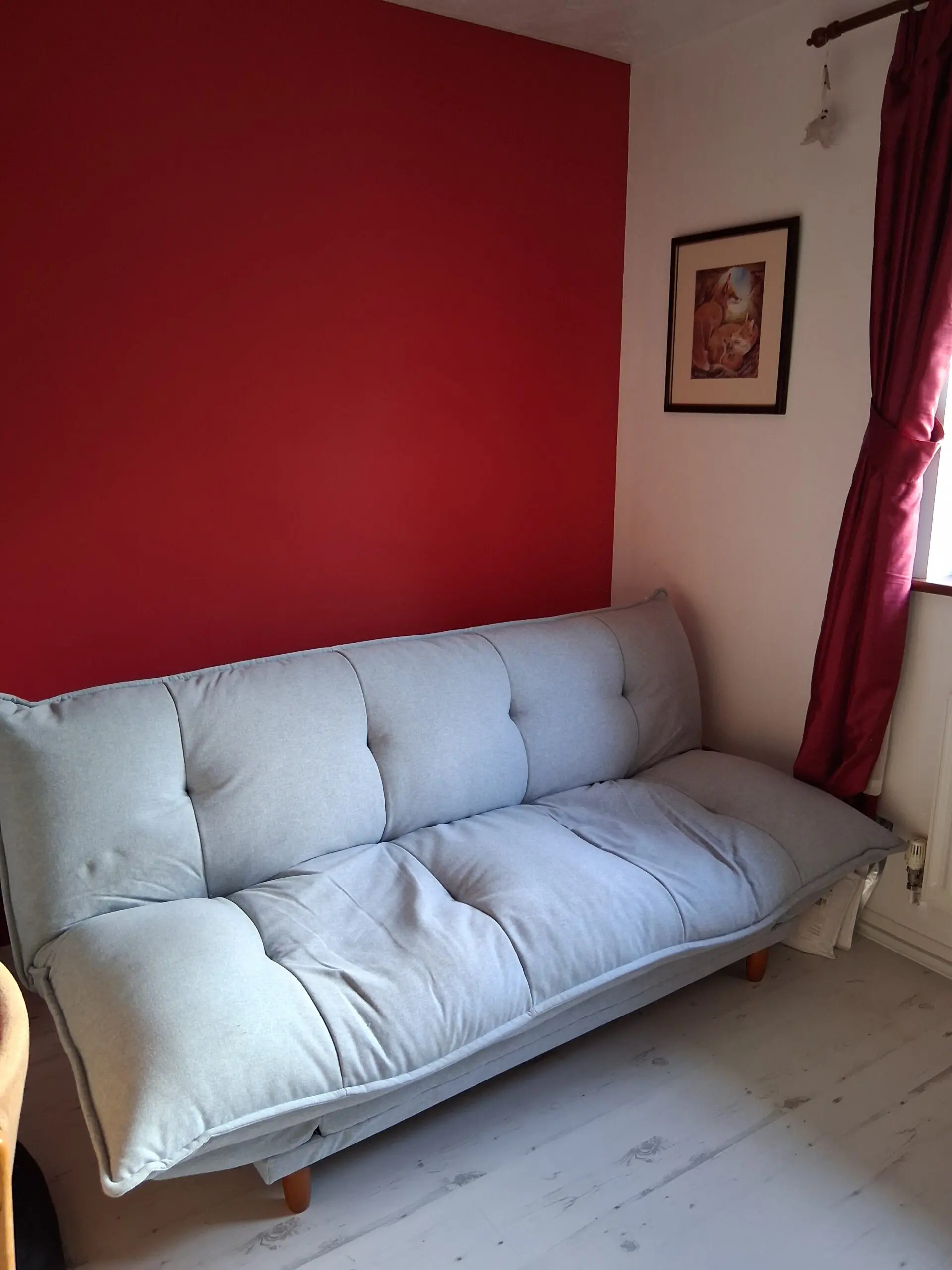 Double Sofa bed, bought from the Range about 6 years ago. Used mostly as a couch, can be completely flat as a 3 seater couch or 2 seater with armrests. Some creasing when armrest is used.